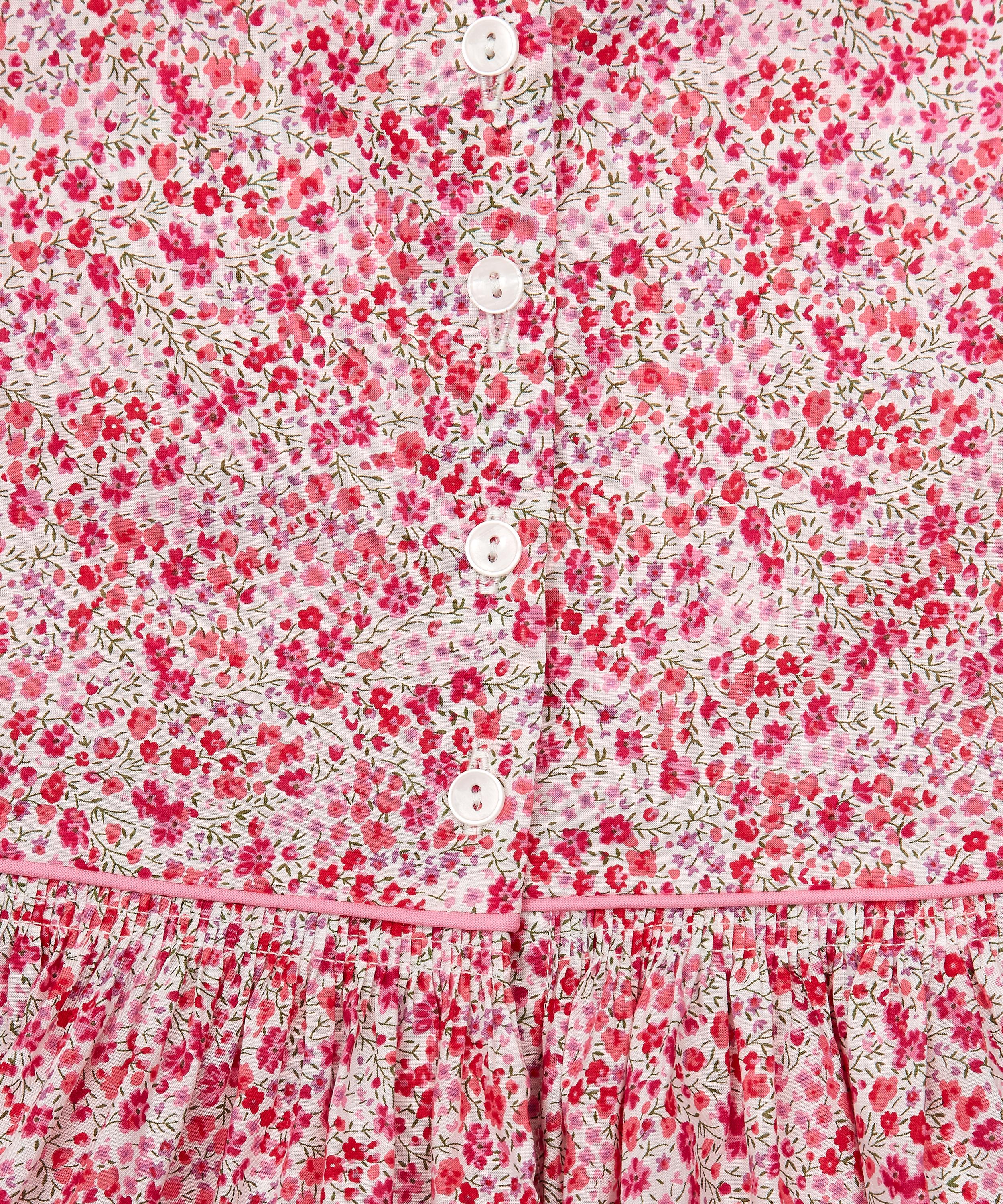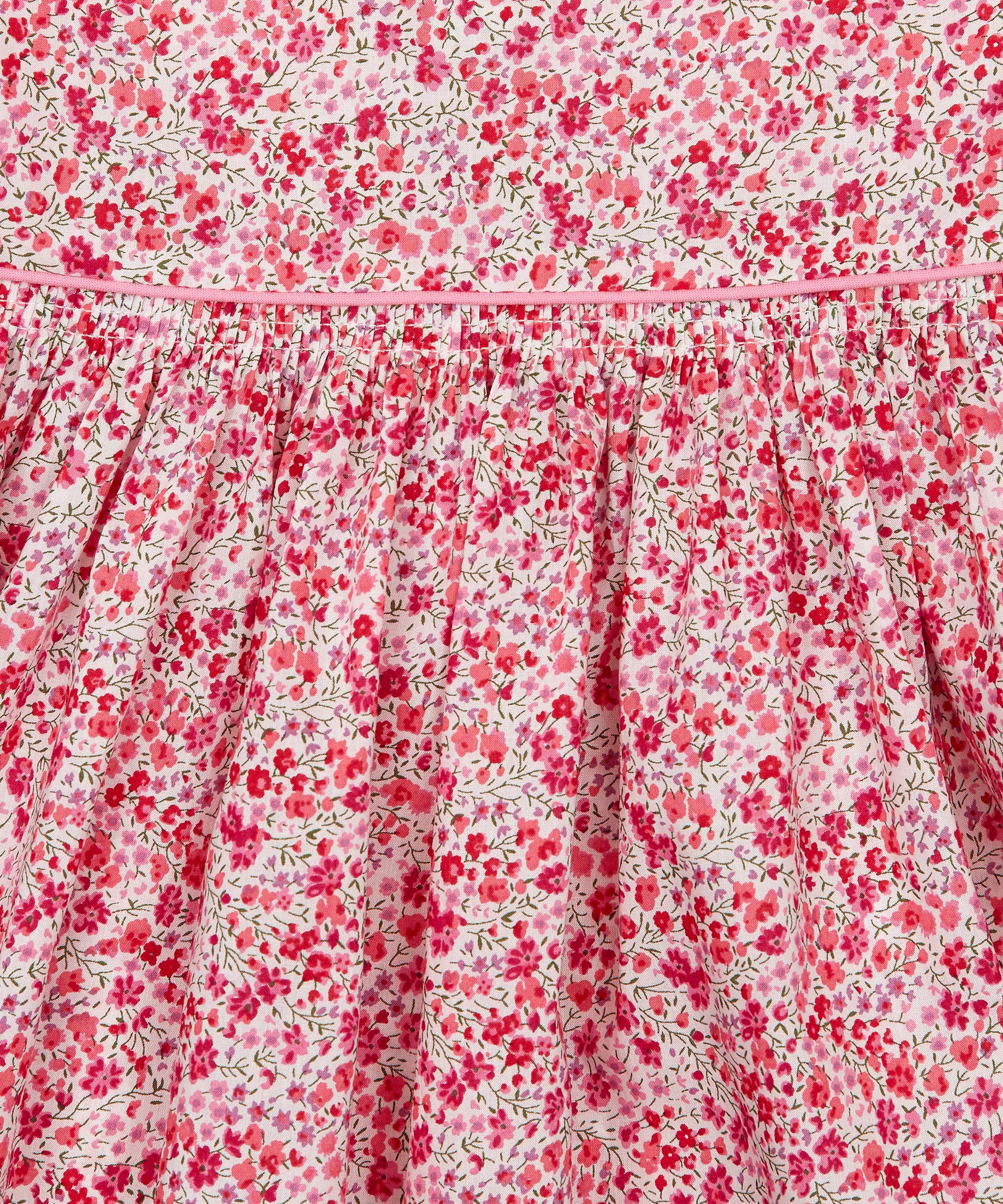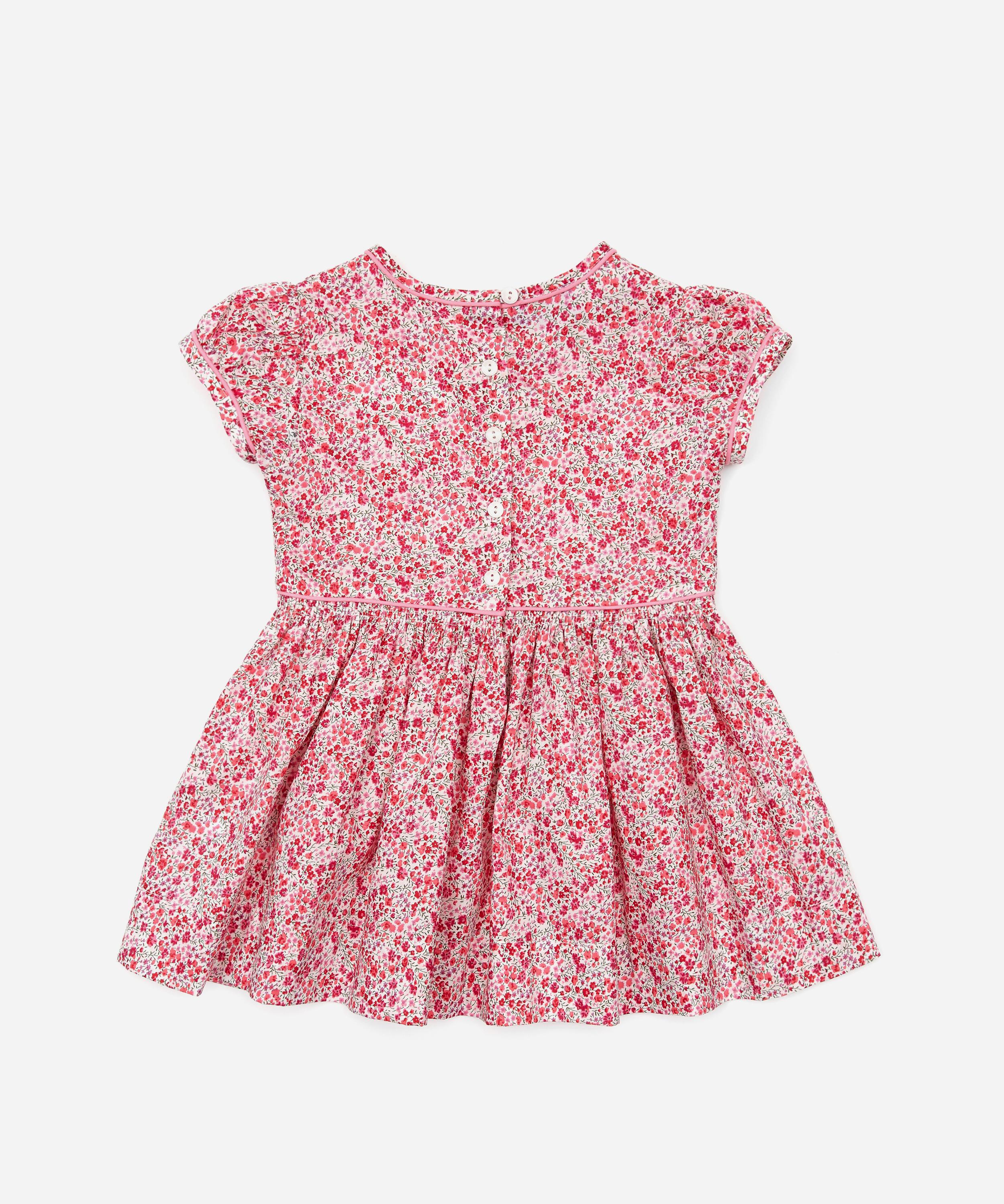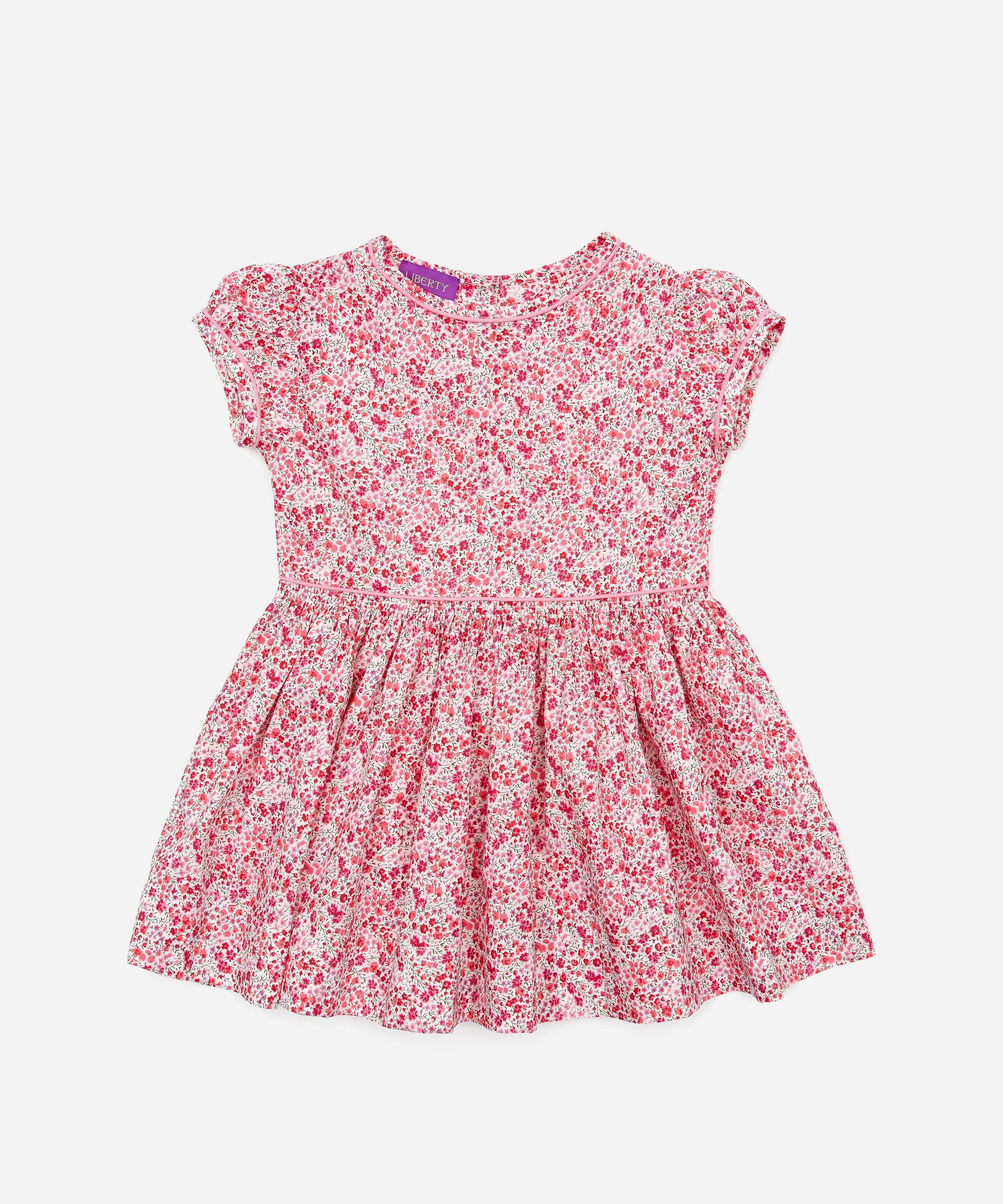 - Liberty print dress; ribbed cuffs, neck and hem with intricate stitching detail