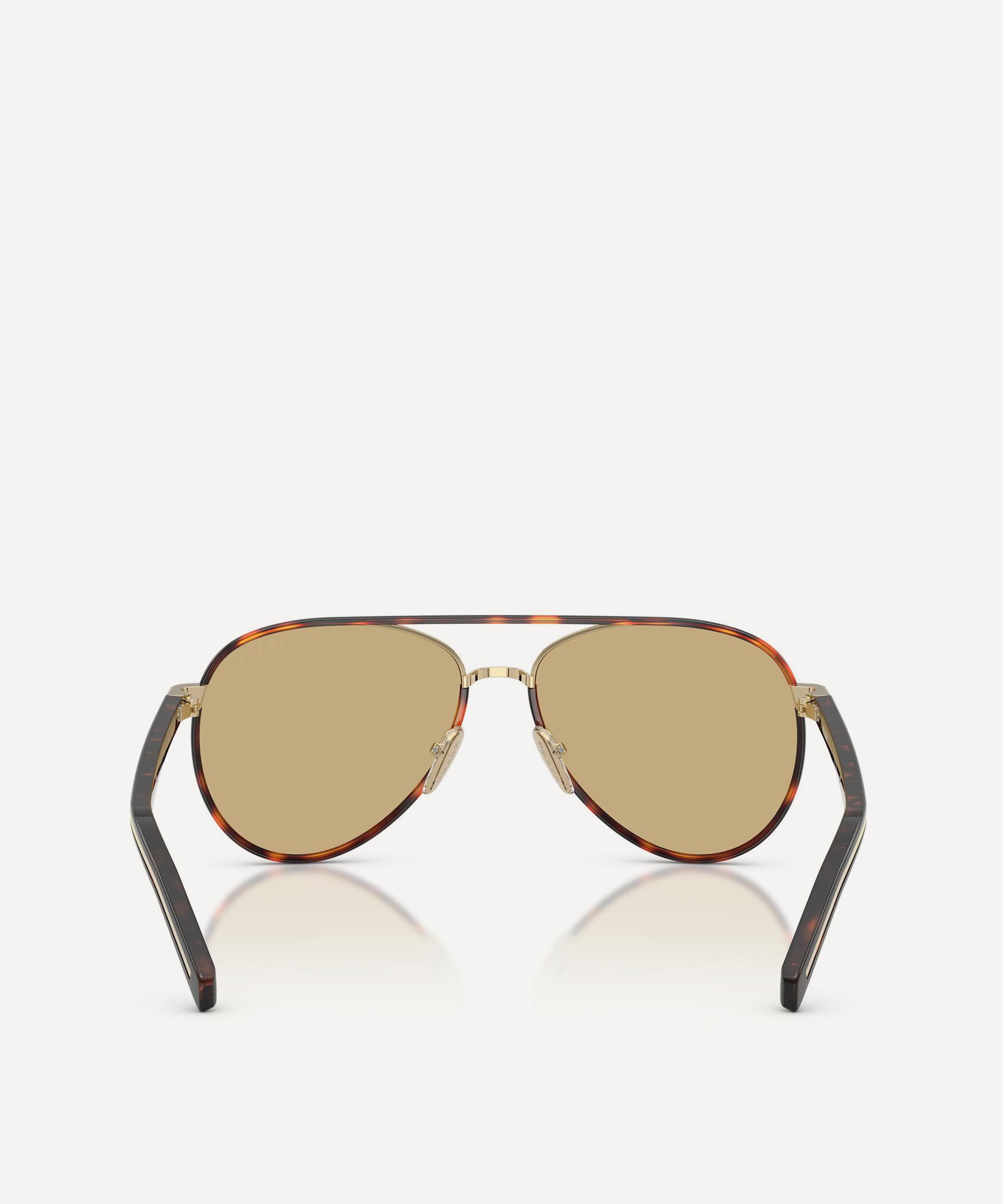 Invigorate any attire with Prada’s pilot sunglasses for a highly contemporary flair. Expertly crafted from gold-tone metal and premium acetate in a tortoise colourway, this stylish pair feature a sleek silhouette with adjustable nose pads and brown-tinted lenses to give you a clearer view on sunny days whilst protecting your eyes from UV light. Finished with a subtle brand logo at the temple for a punctuating finish, throw them on whenever you need a statement boost.