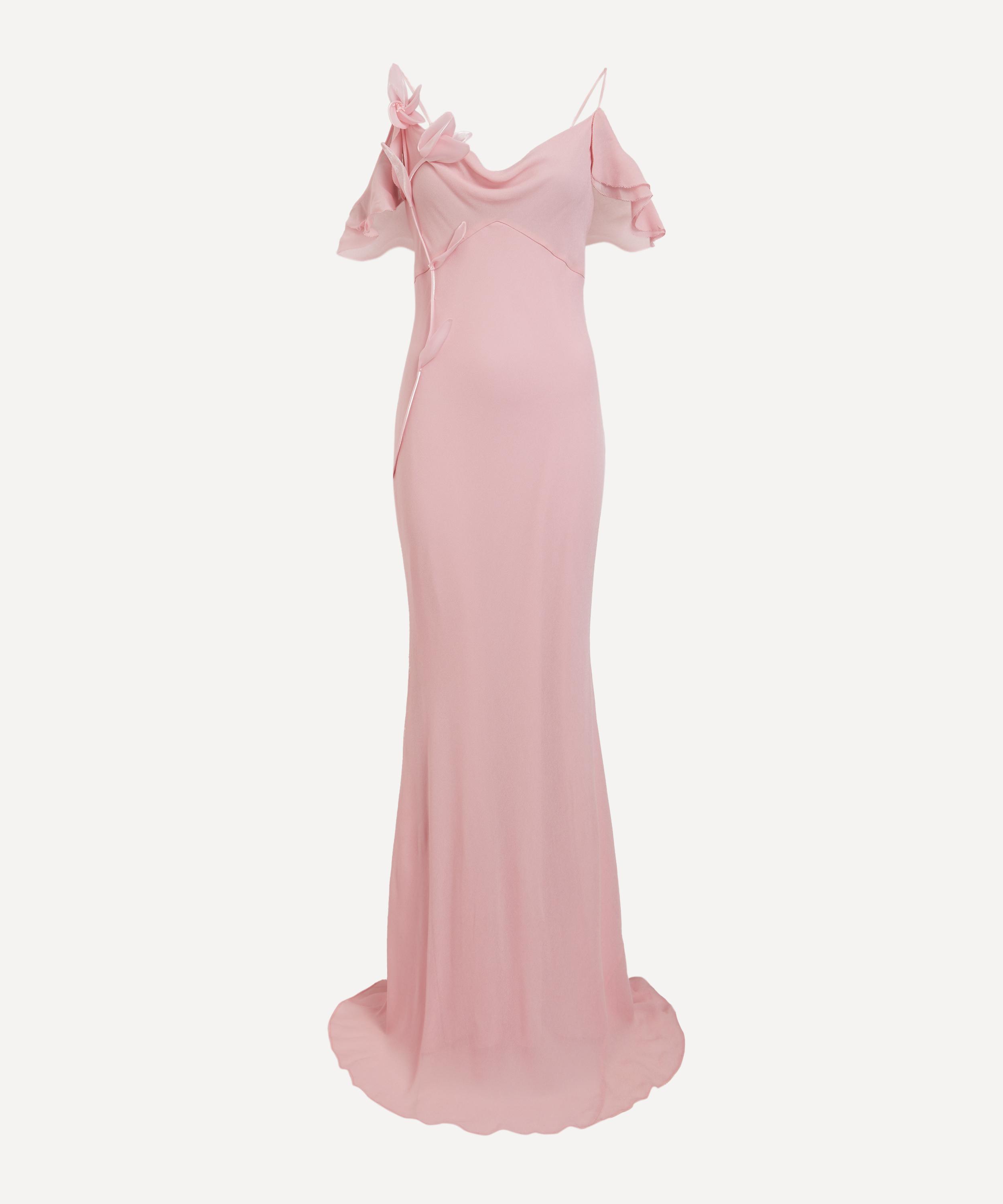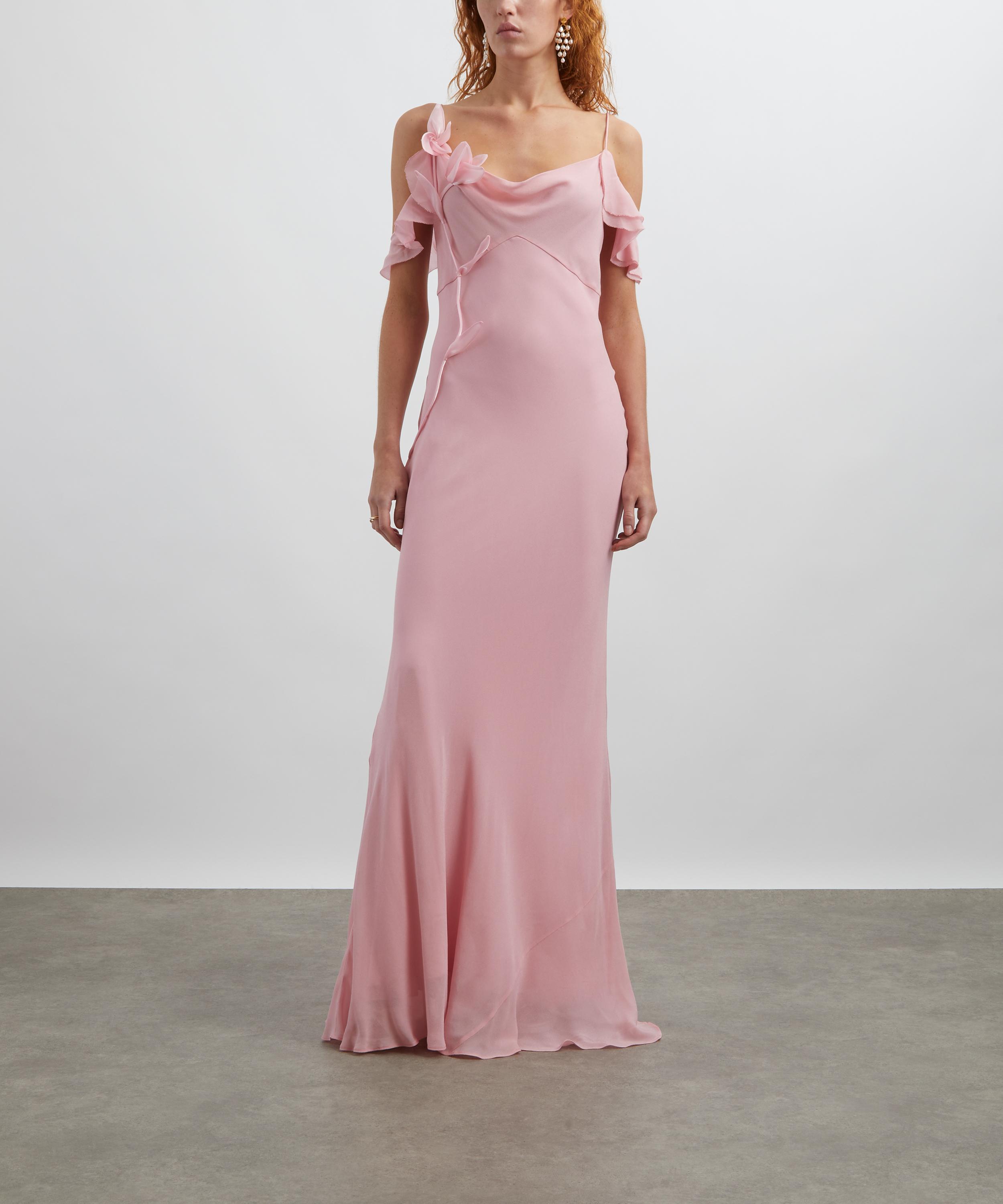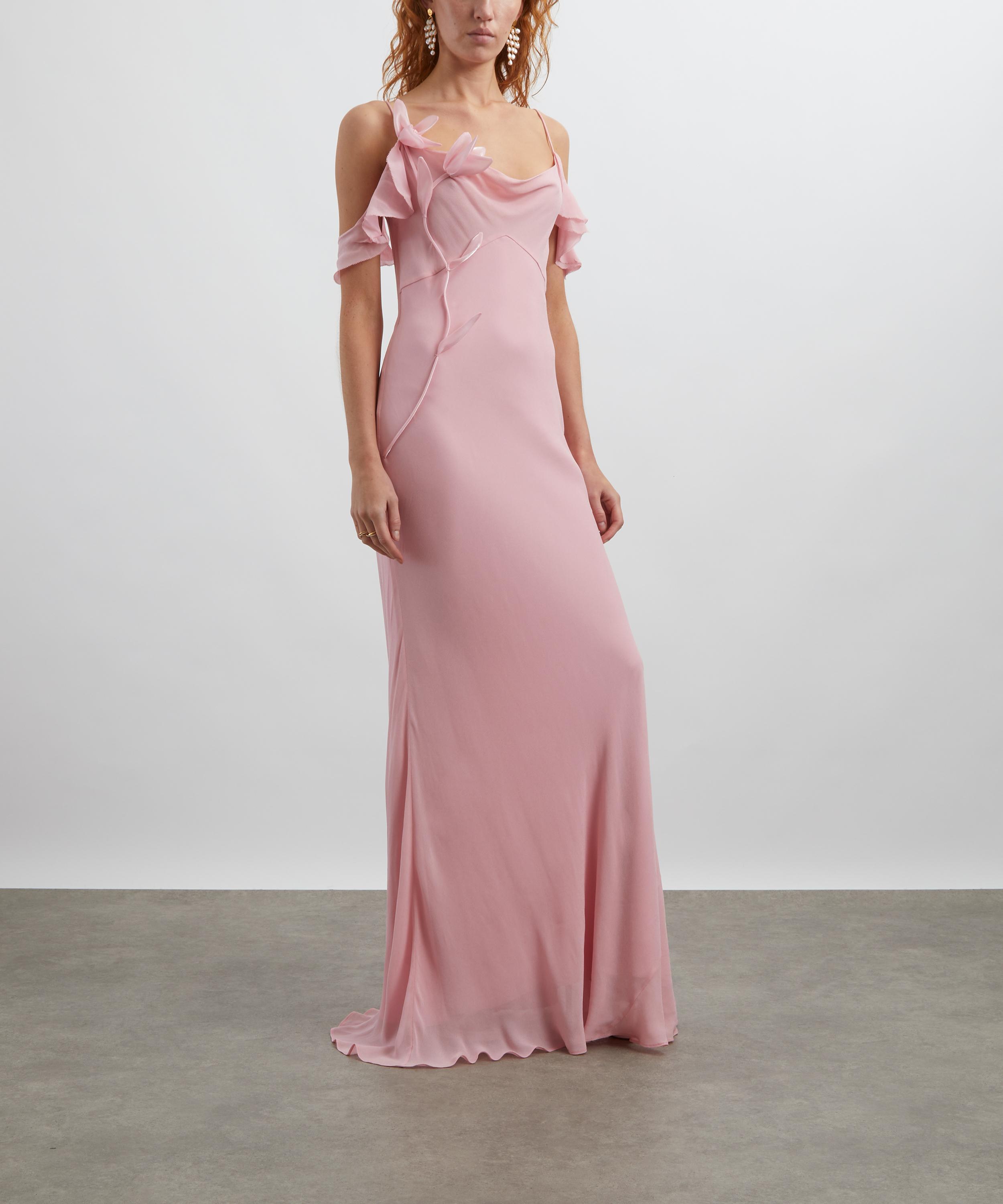 Nothing says romance quite like the Pink Georgette Flower Maxi Dress from Self-Portrait.