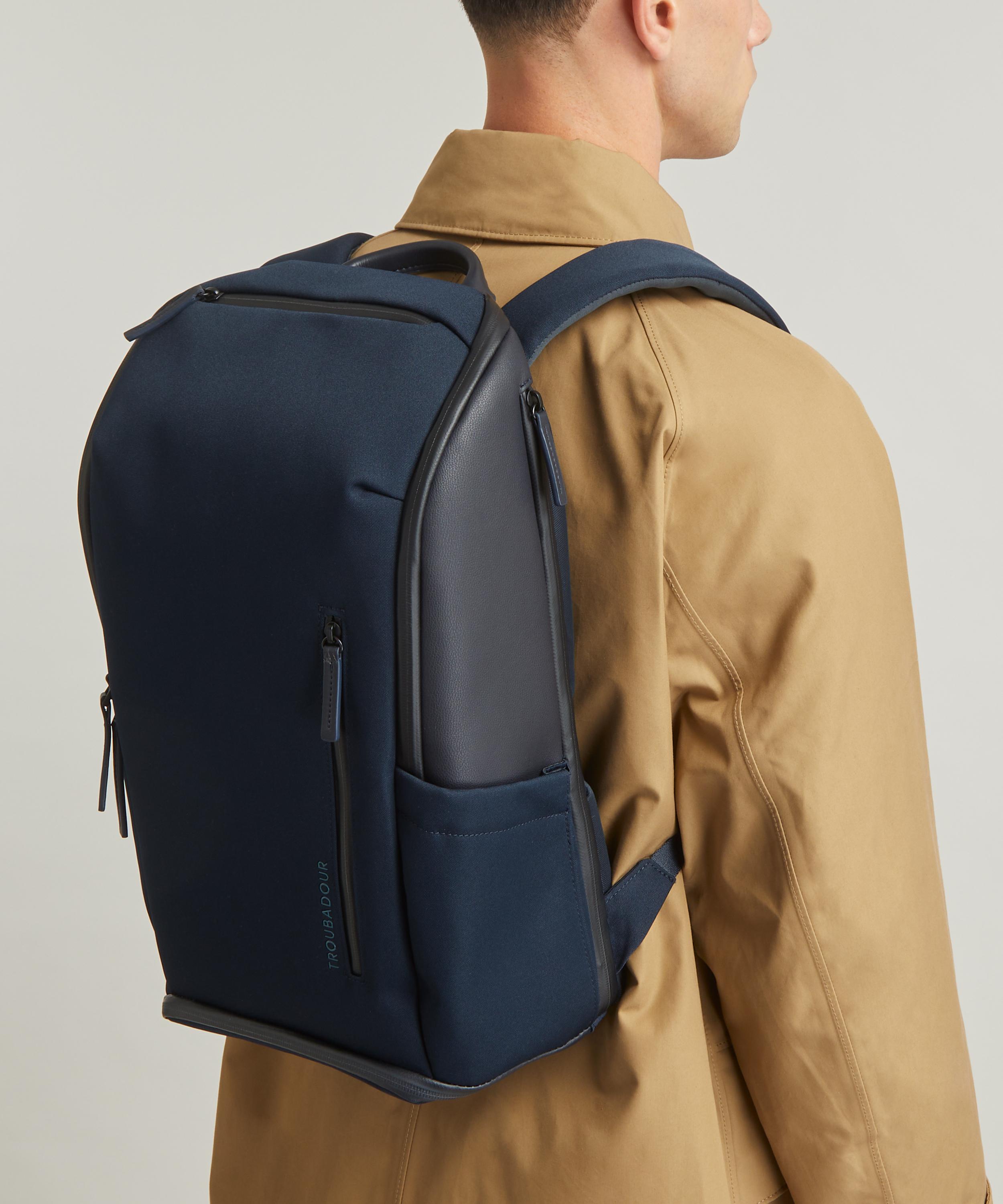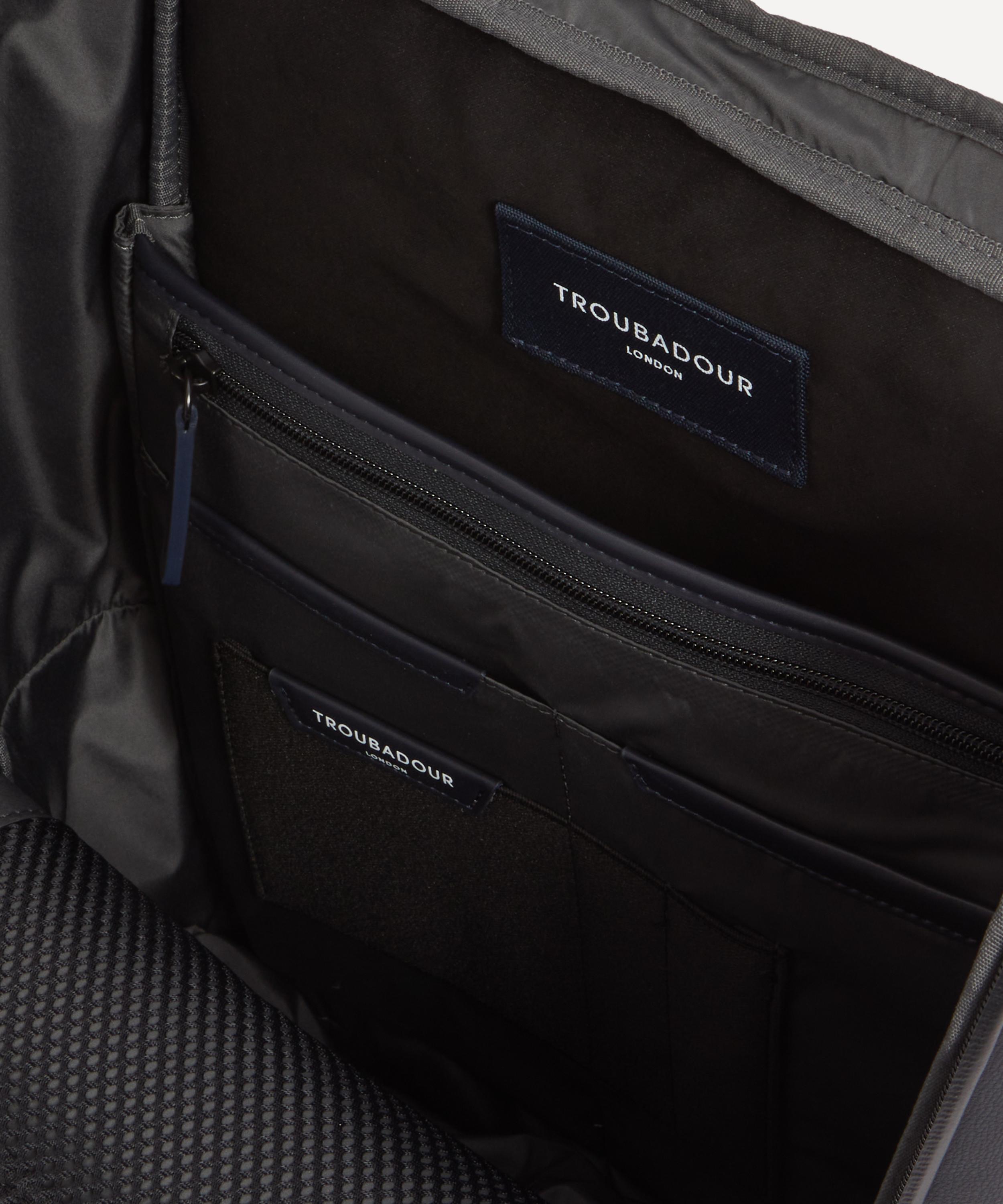 The Pioneer backpack from British label Troubadour offers innovative functionality and easy access. Handmade to the highest standard from lightweight waterproof fabric, this backpack opens fully at the front, to reveal your office on the go. With multiple internal pockets and a padded laptop section, it has been expertly structured to optimise organisation, while the breathable back panel and padded shoulder straps ensure unwavering comfort.