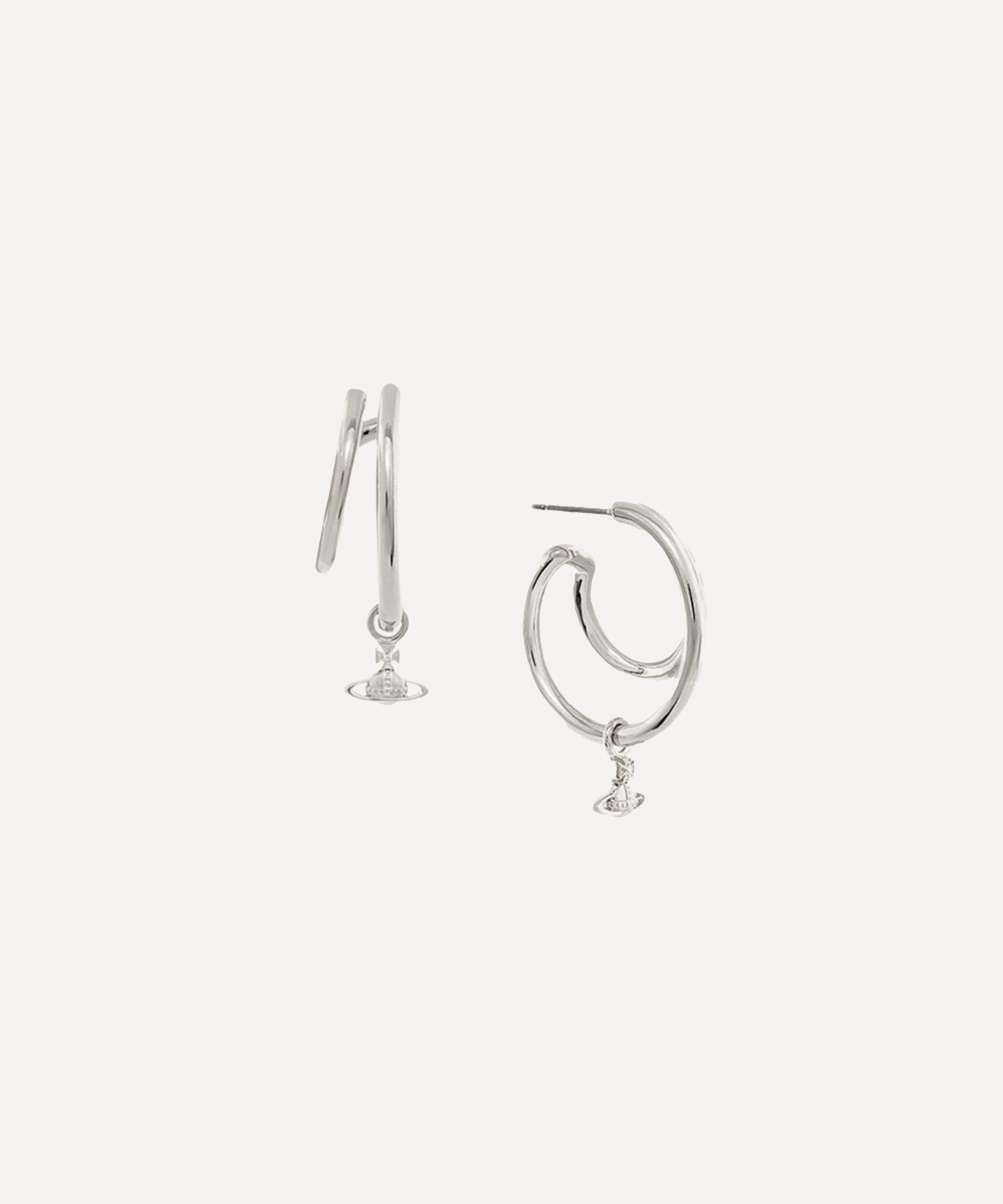 Channelling the brand’s rebellious spirit and individuality, each earring is made from platinum-tone brass, featuring a double hoop adorned with the house’s iconic cross-topped orb and Saturn ring charm drop. Wear this statement-making pair on their own, incorporate them into a stack, or pair with matching pieces from the brand for a co-ordinating look.