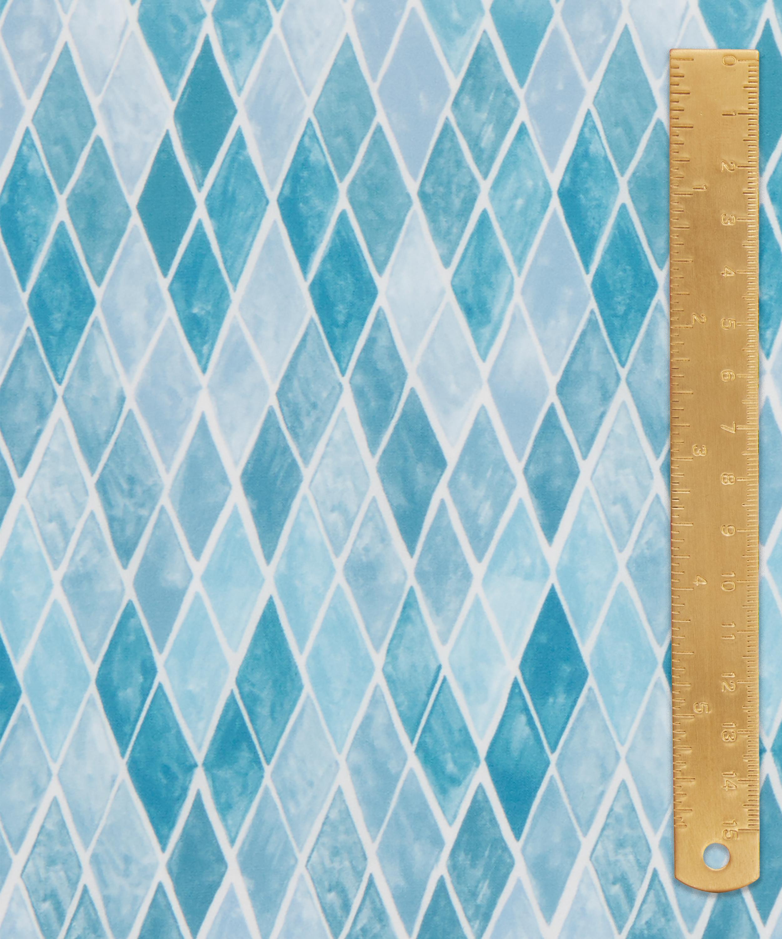 Inspired by water colour paintings from the Futurists, the Liberty Design Studio used watered down gouache and ink to create a diamond-shaped pattern that is tiled across the expanse of fabric. The designs retain the texture of the paint, which gives a subtle feeling of movement.
