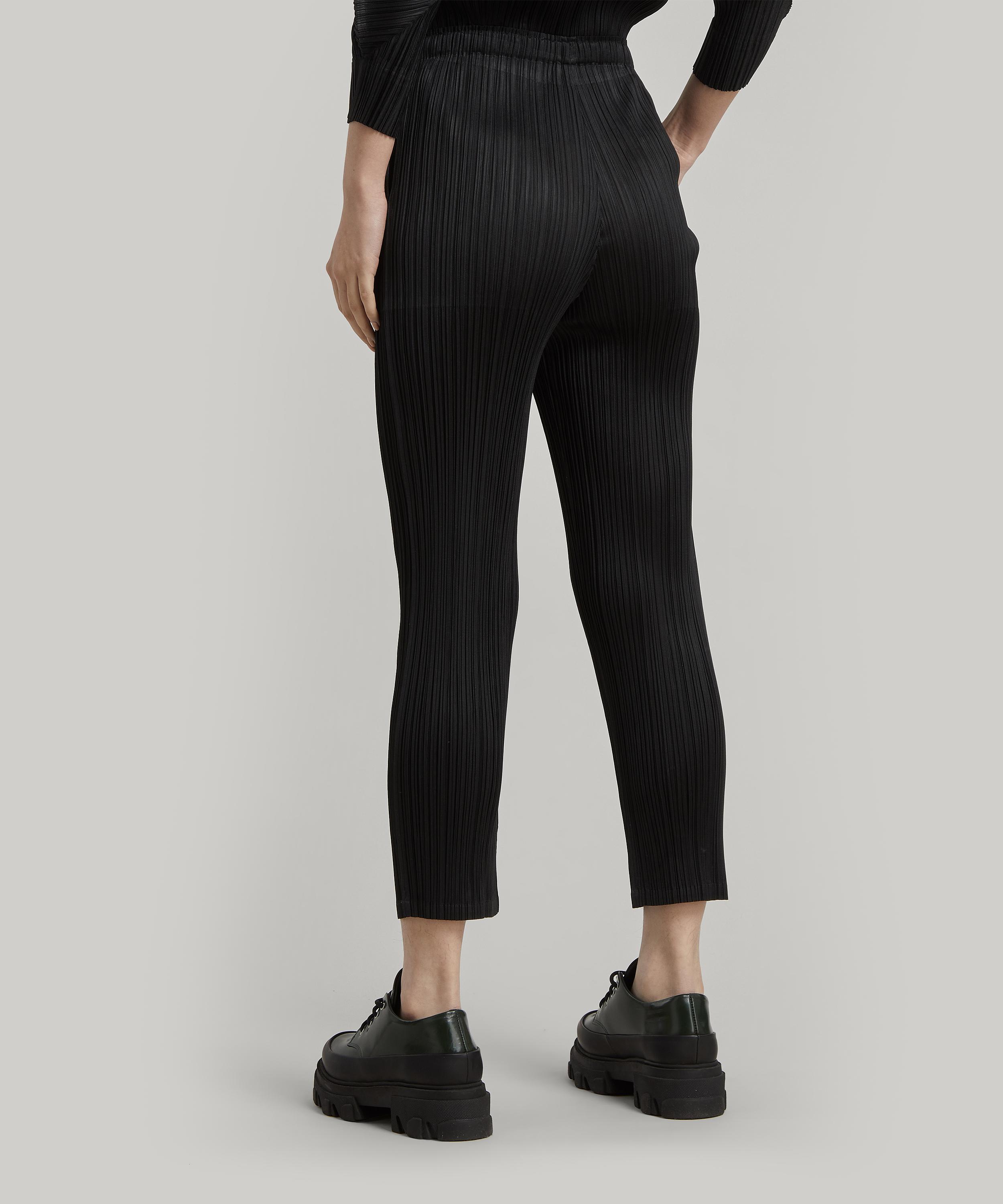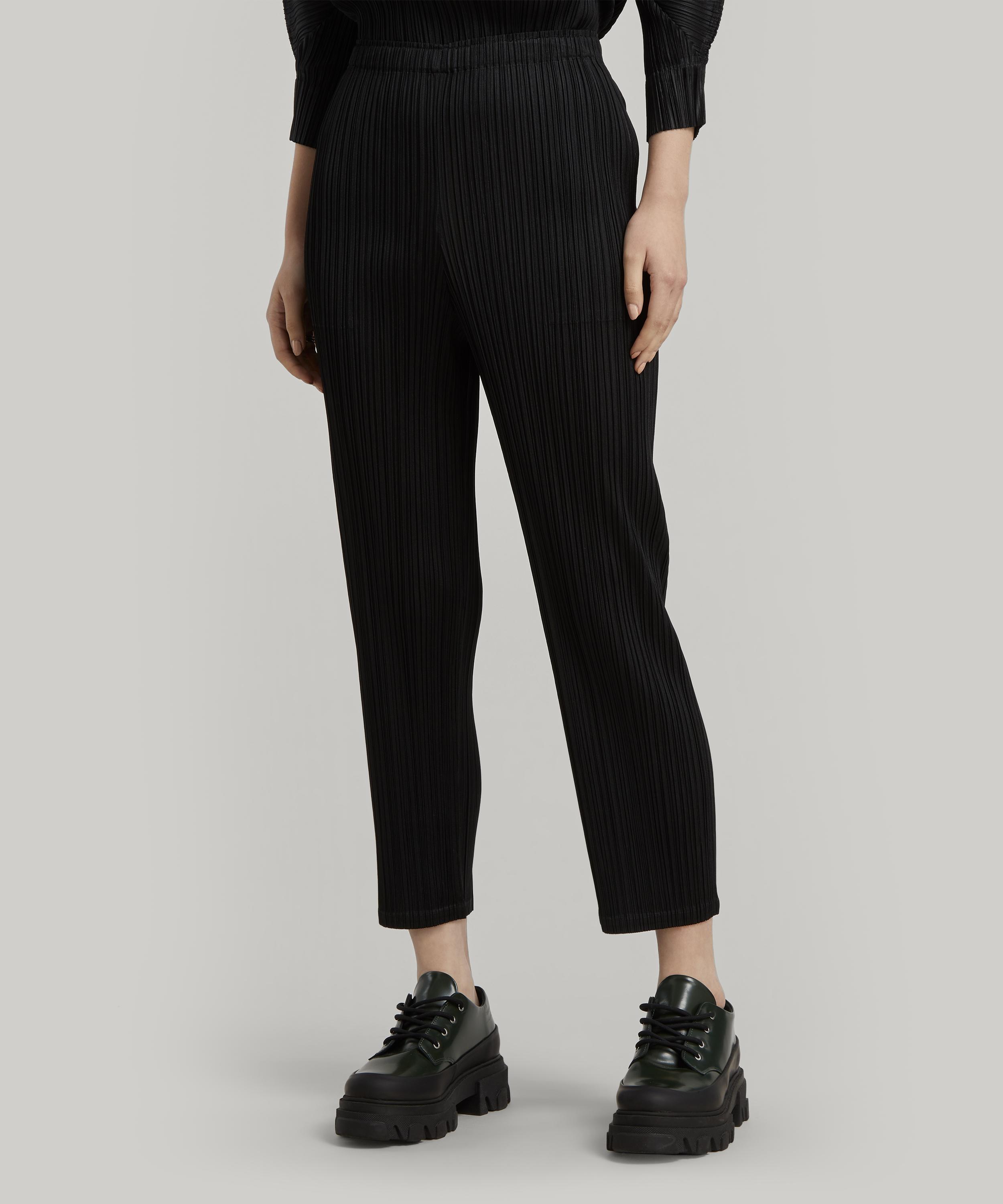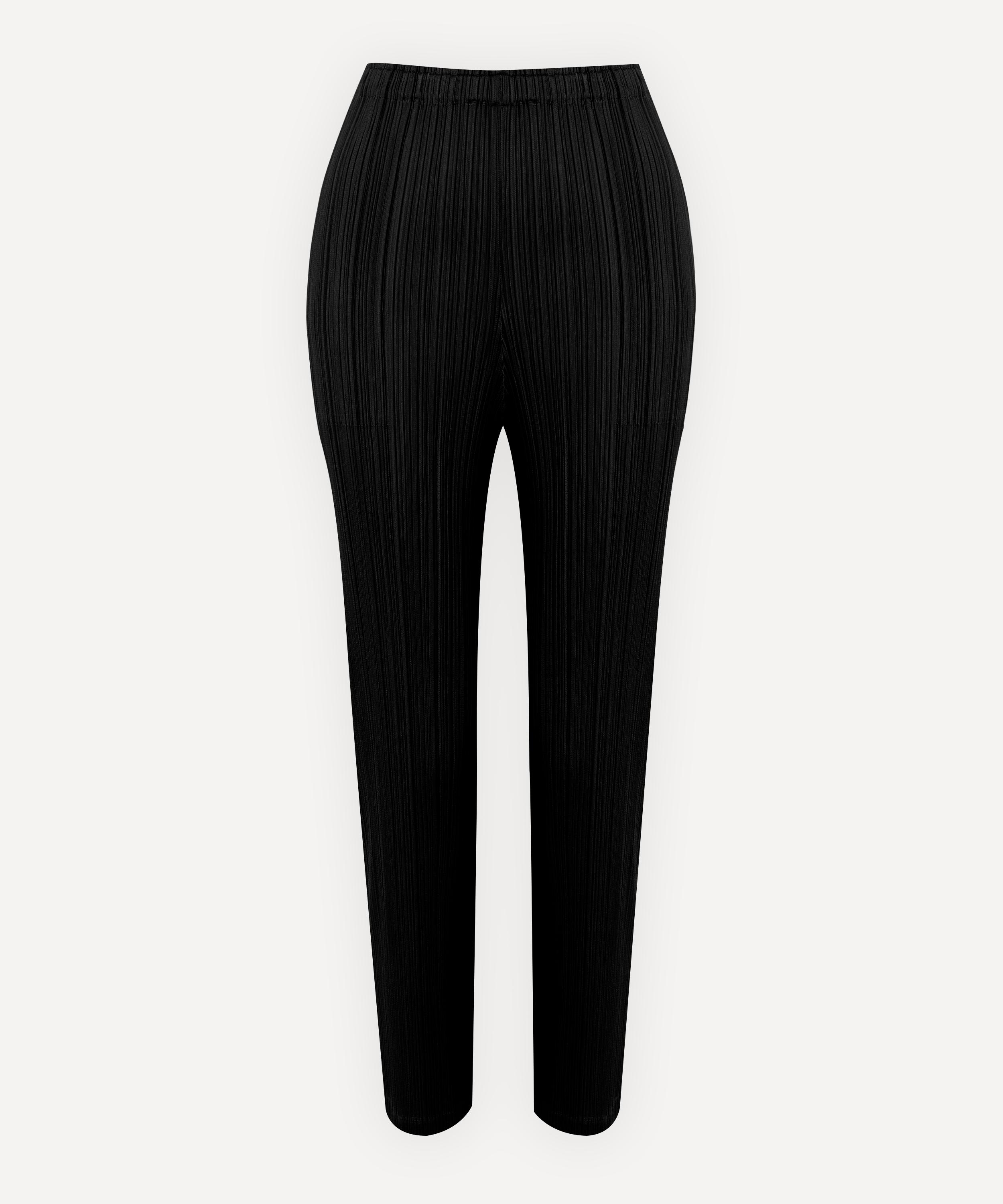 These slim trousers from Pleats Please are the perfect minimalist showcase for Issey Miyake’s innovative pleating technique.