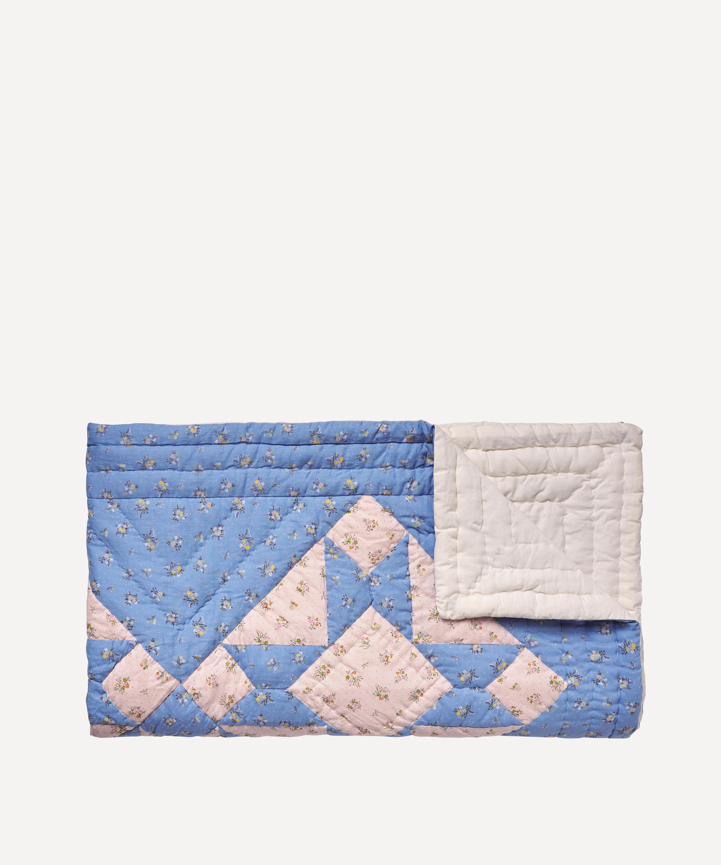 Revolutionise sofa sitting and slumbering with this cornflower blue patchwork quilt. Set to become the ultimate ‘hero’ throw, it has been handcrafted, stitch by stitch, from the softest cotton and overlayed with dainty floral artwork. A celebration of quality craftsmanship and design, use the quilt to inject a creative beam into reading nooks, bed linen or lackluster living rooms.