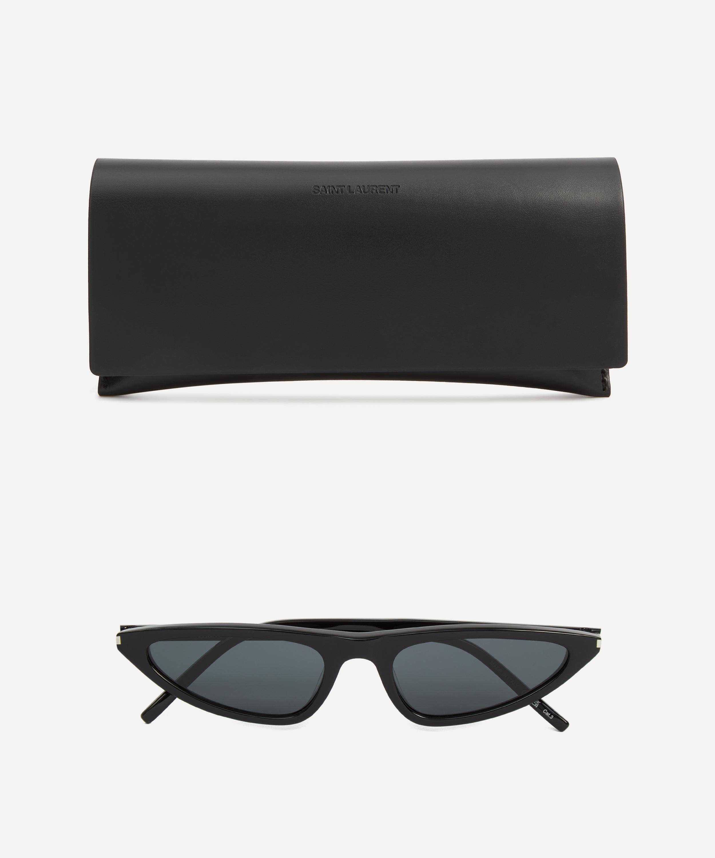 Heighten the impact of any attire with these statement cat-eye sunglasses from Saint Laurent. Offering a pointy frame, these bold sunglasses are crafted from premium acetate and are complete with black tinted lenses, and engraved logo details to the temples – slide them on to bring a dose of high-fashion your daily edit.