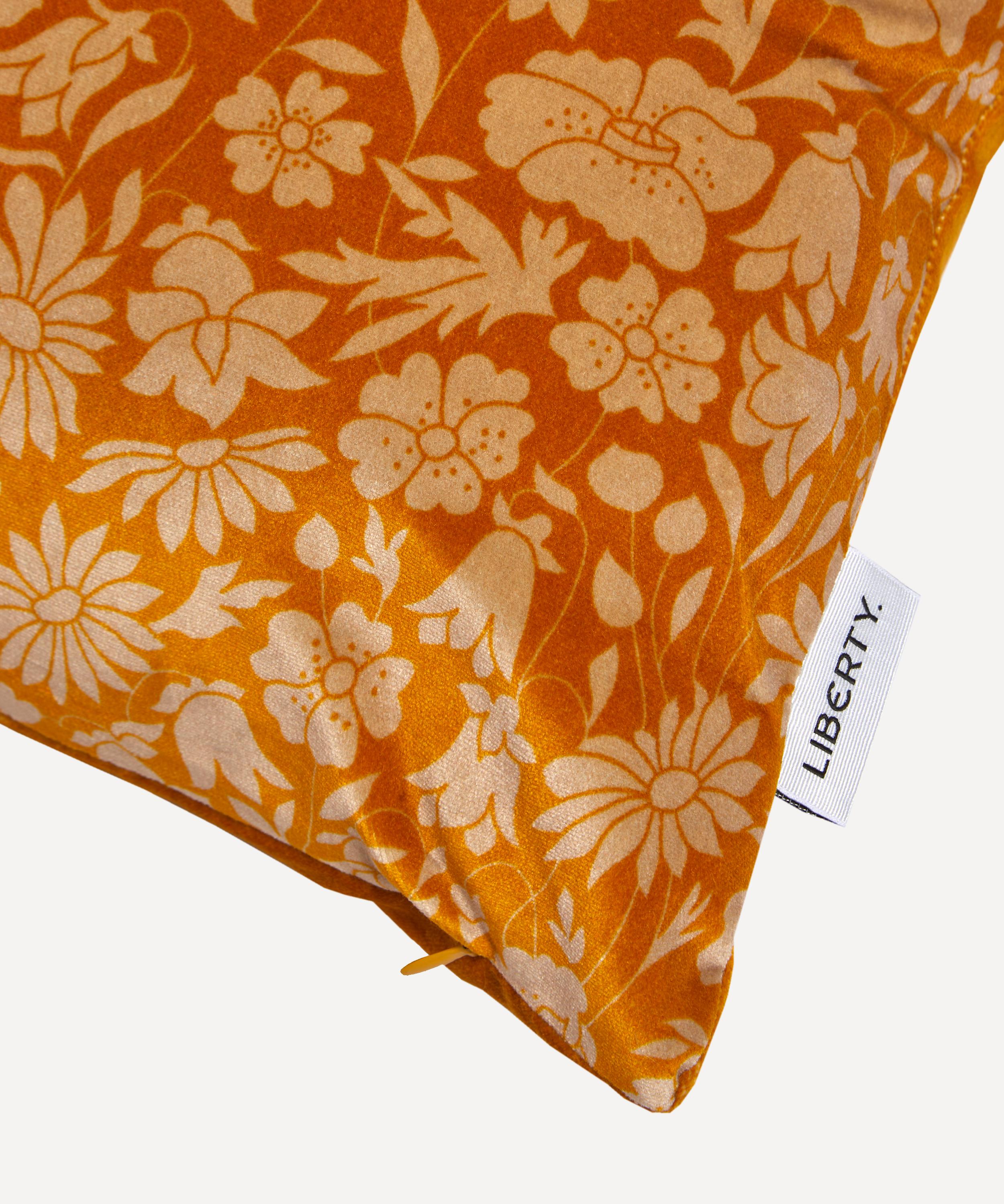 Liberty’s square cushion is a versatile interiors staple, crafted in England and featuring a print from our archives.