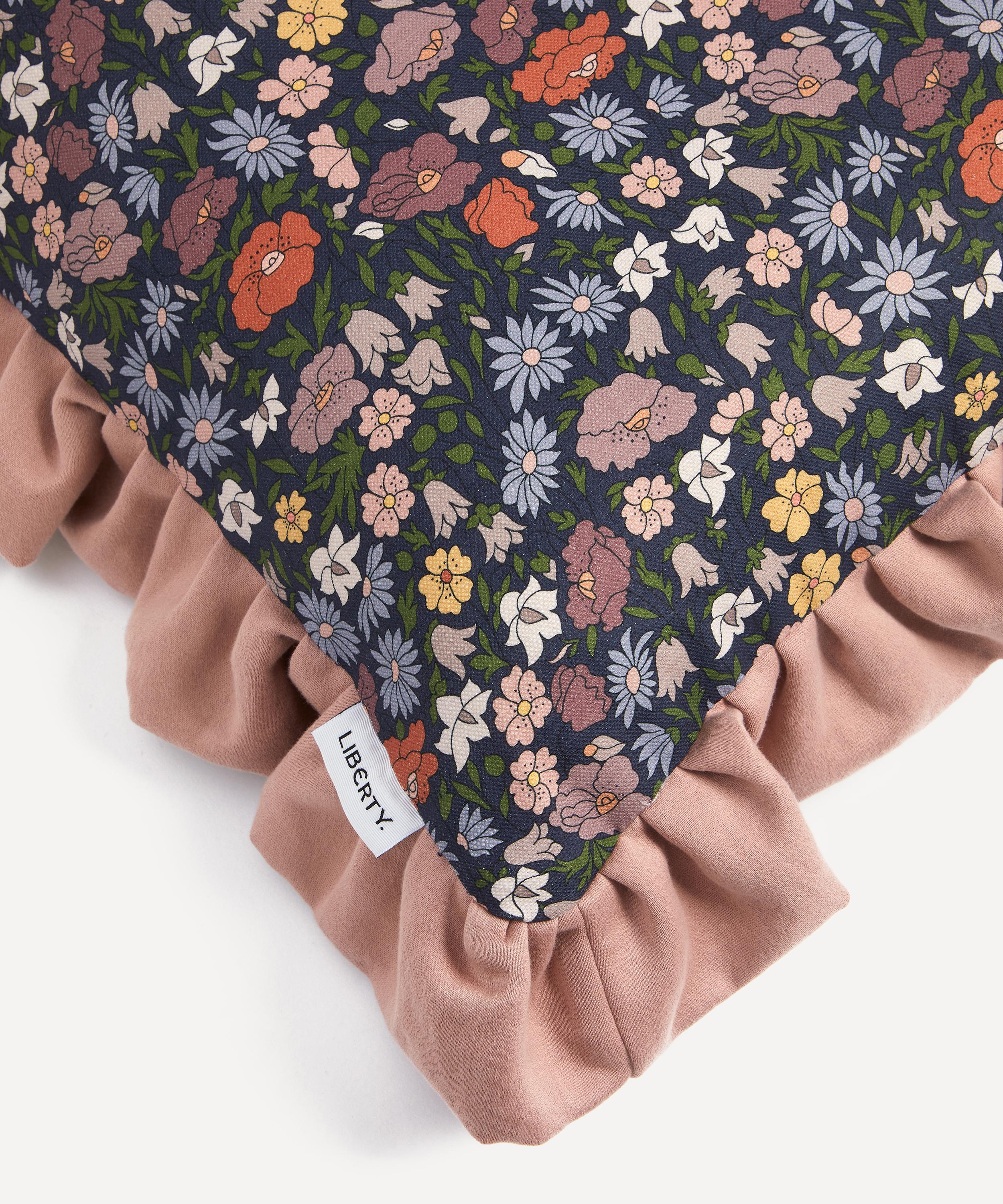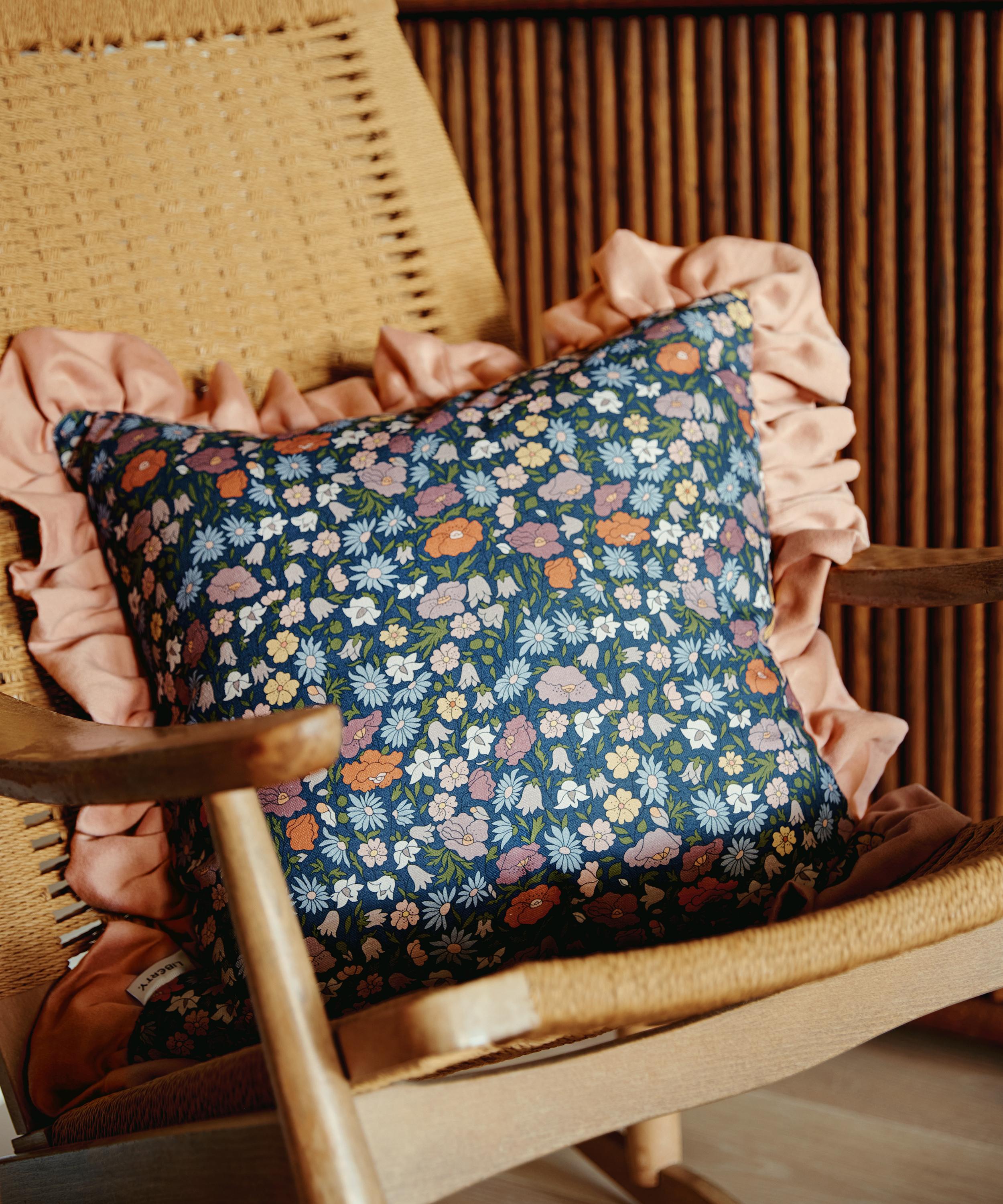 This Liberty square cushion features our Poppy Meadow print and is decadently plump with a recycled duck feather filling. Created in the Liberty design studio, Poppy Meadow – a reworking of a much–loved archival print from 1910 – appears here in a beautifully engineered iteration, edged with lush ruffles for added texture. The cushion’s classic silhouette and richly hued palette add an elegant twist to modern interiors.
