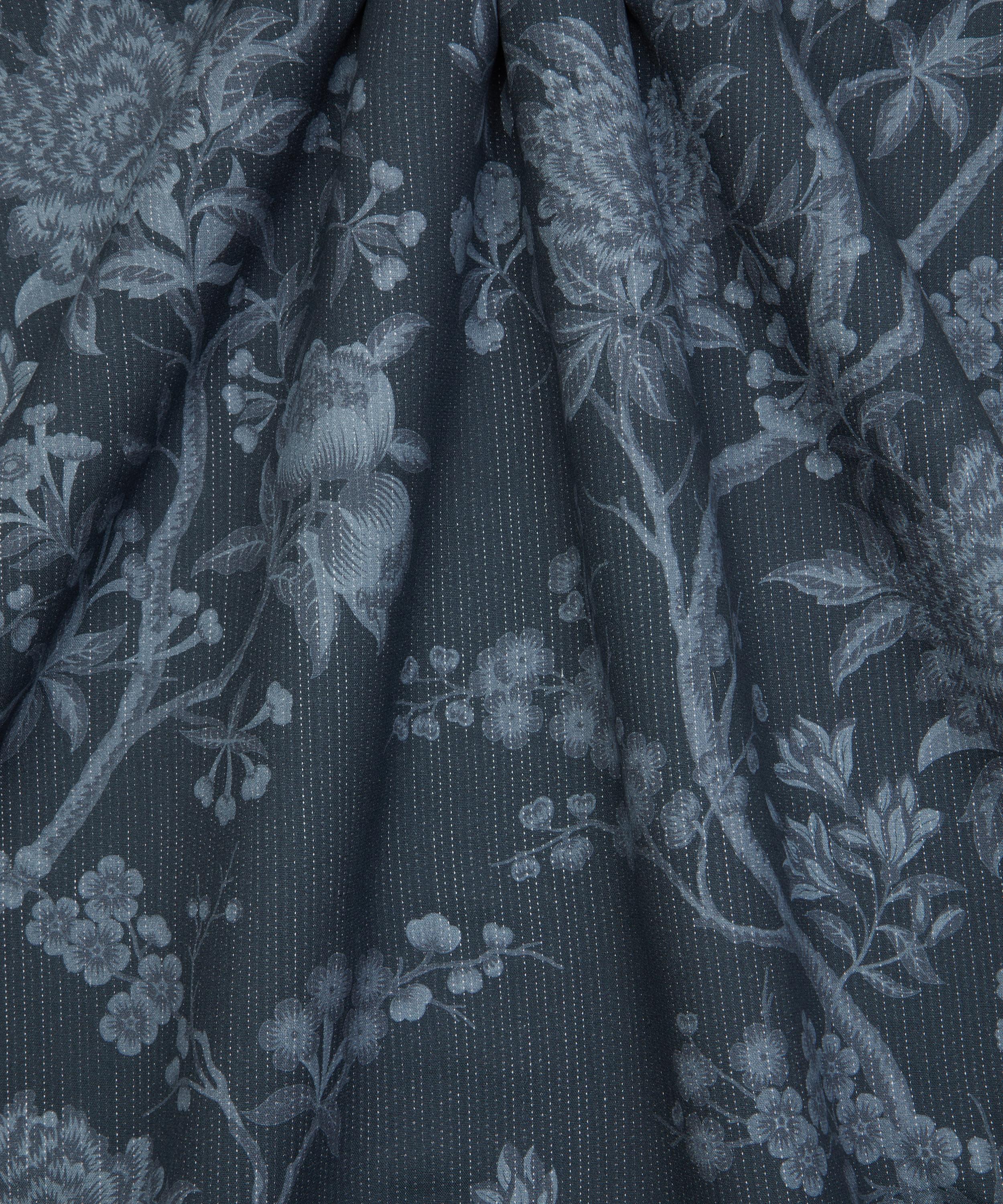 Exquisitely redrawn, resized, and recoloured, this ornate floral pattern has been printed in a rich inky tonal hue, which is reminiscent of antique indigo hand-stitched textiles. Its winding branches are dotted with blossom flowers and spectacular chrysanthemums, combining directional design, artistry, and innovation. Printed on a mixed-fibre base, Porcelain Flower is perfect for upholstery, drapery, cushions, and accessories.