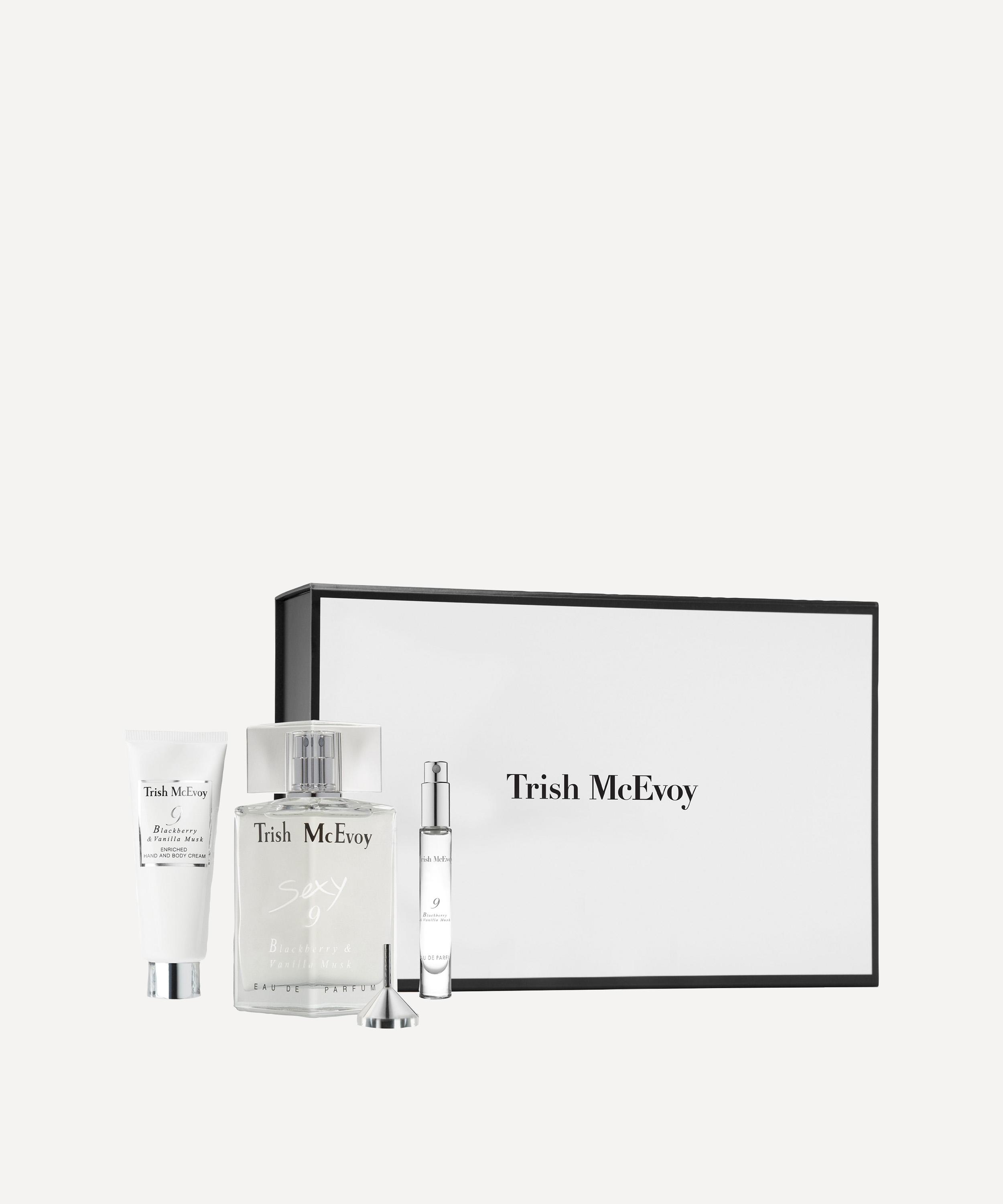 Trish McEvoy's Sexy 9 Blackberry & Vanilla Musk is a seductive fragrance that elevates the spicy sweetness of the original No. 9 with heady undertones of Amazon lilies, patchouli, osmanthus, and sandalwood. Enjoy Sexy 9 Blackberry & Vanilla Musk as a full-size eau de parfum, and No. 9 Blackberry & Vanilla Musk in travel-size perfume and scented body cream form, along with a funnel for easy refills.