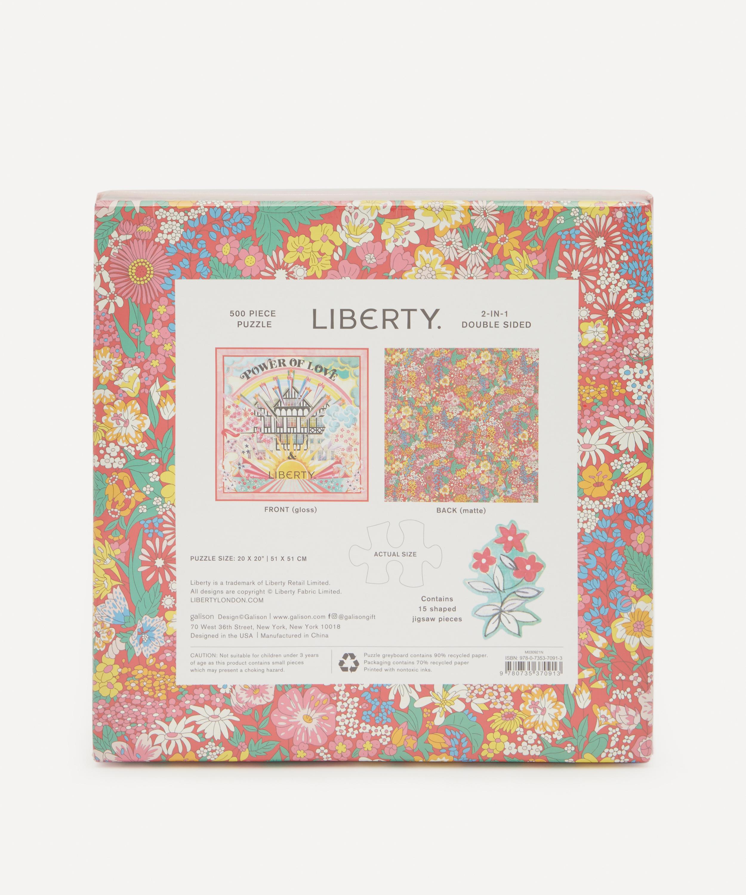 Liberty’s 500-piece double-sided puzzle features 15 shaped jigsaw pieces, combining into a striking illustration of the iconic Liberty store to one side and a floral pattern on the other.