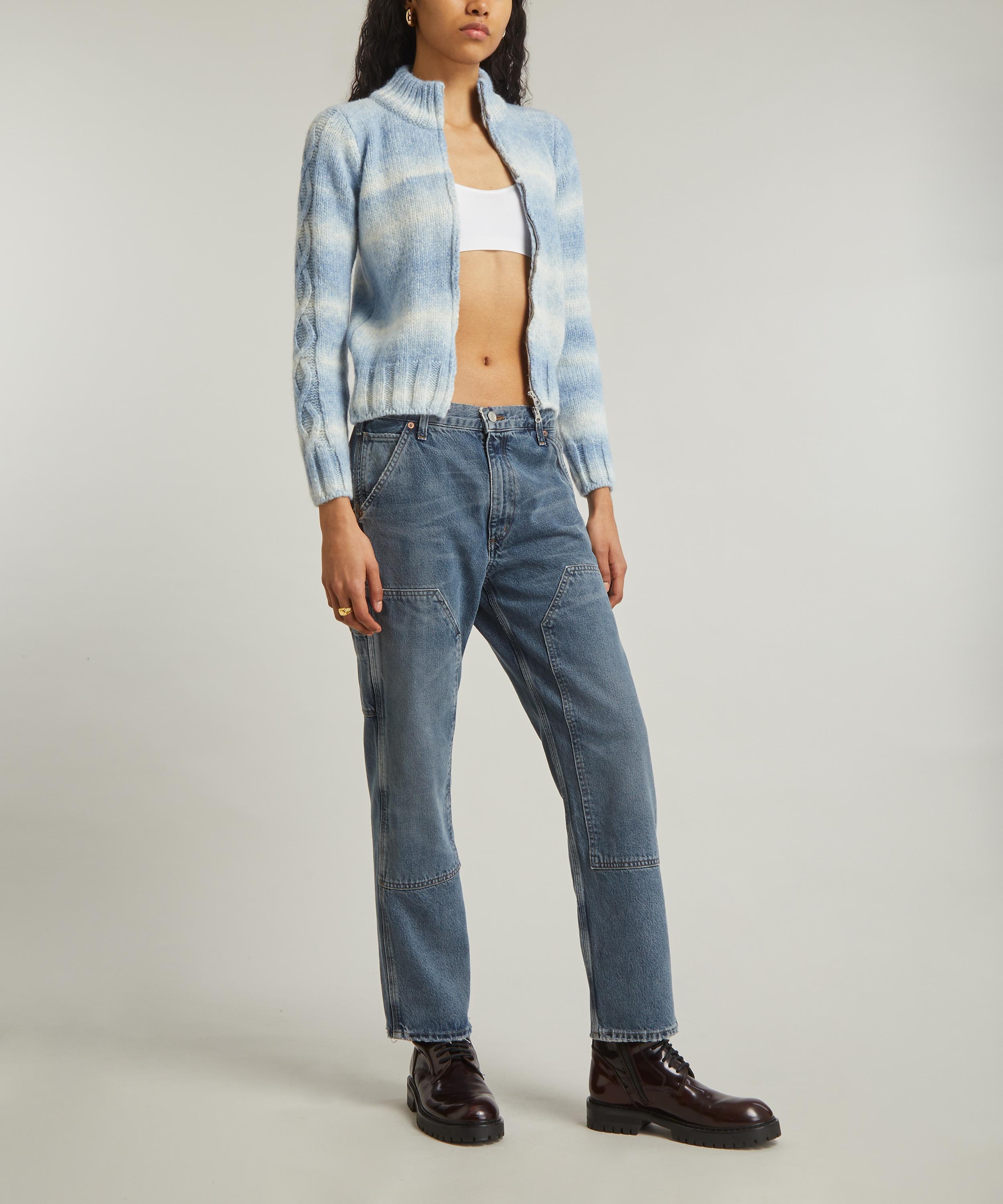 Cosy with a contemporary edge, this soft-knitted cardigan is crafted from a sumptuous baby alpaca and Merino wool-blend displaying a gradient blue design. Secured with a two-way zip closure, it has chunky ribbed trims and braided detail along the sleeves.