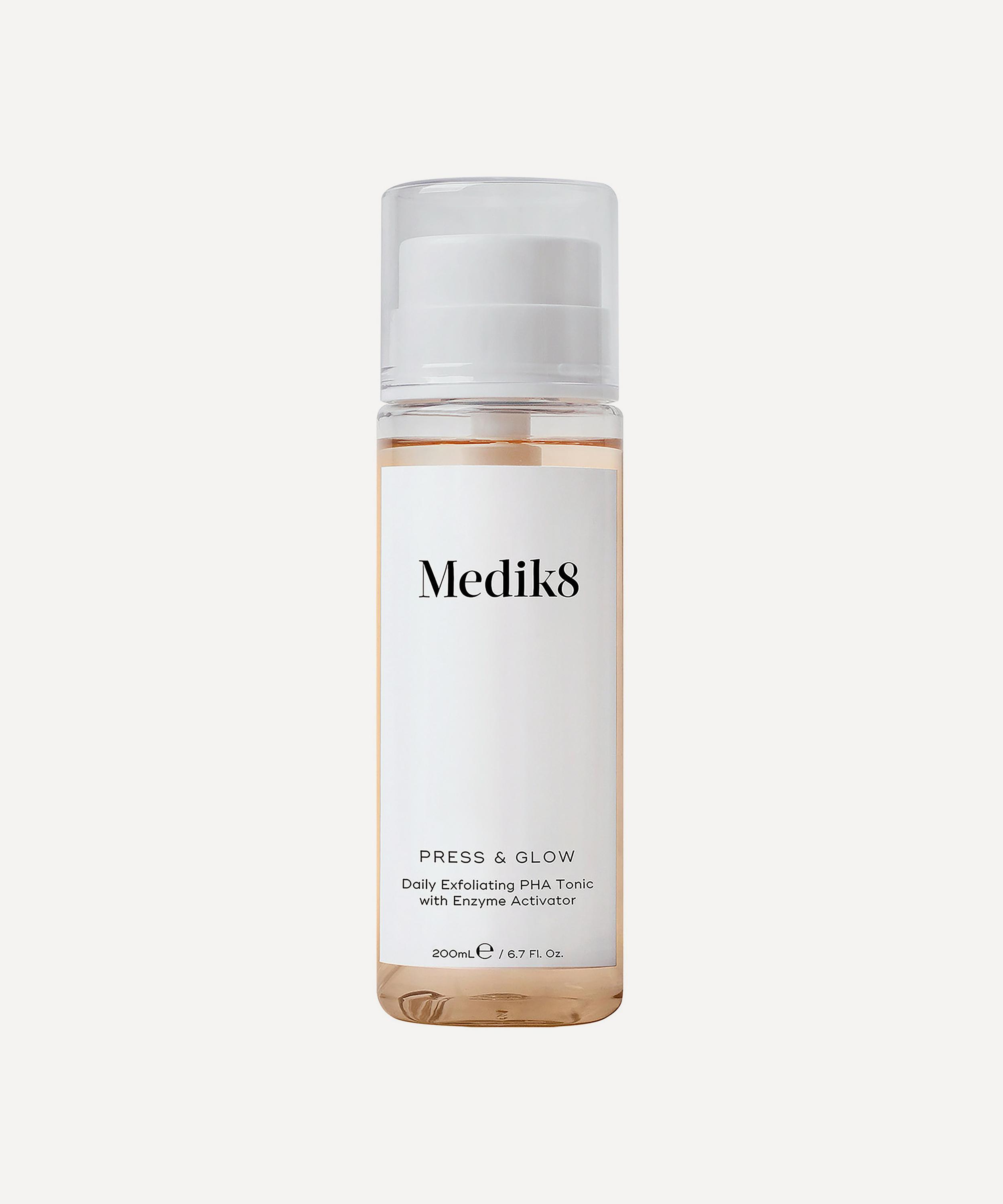Medik8 Press & Glow is a daily hydrating acid toner that utilises the power of PHAs to exfoliate your skin’s surface for a visibly radiant complexion.