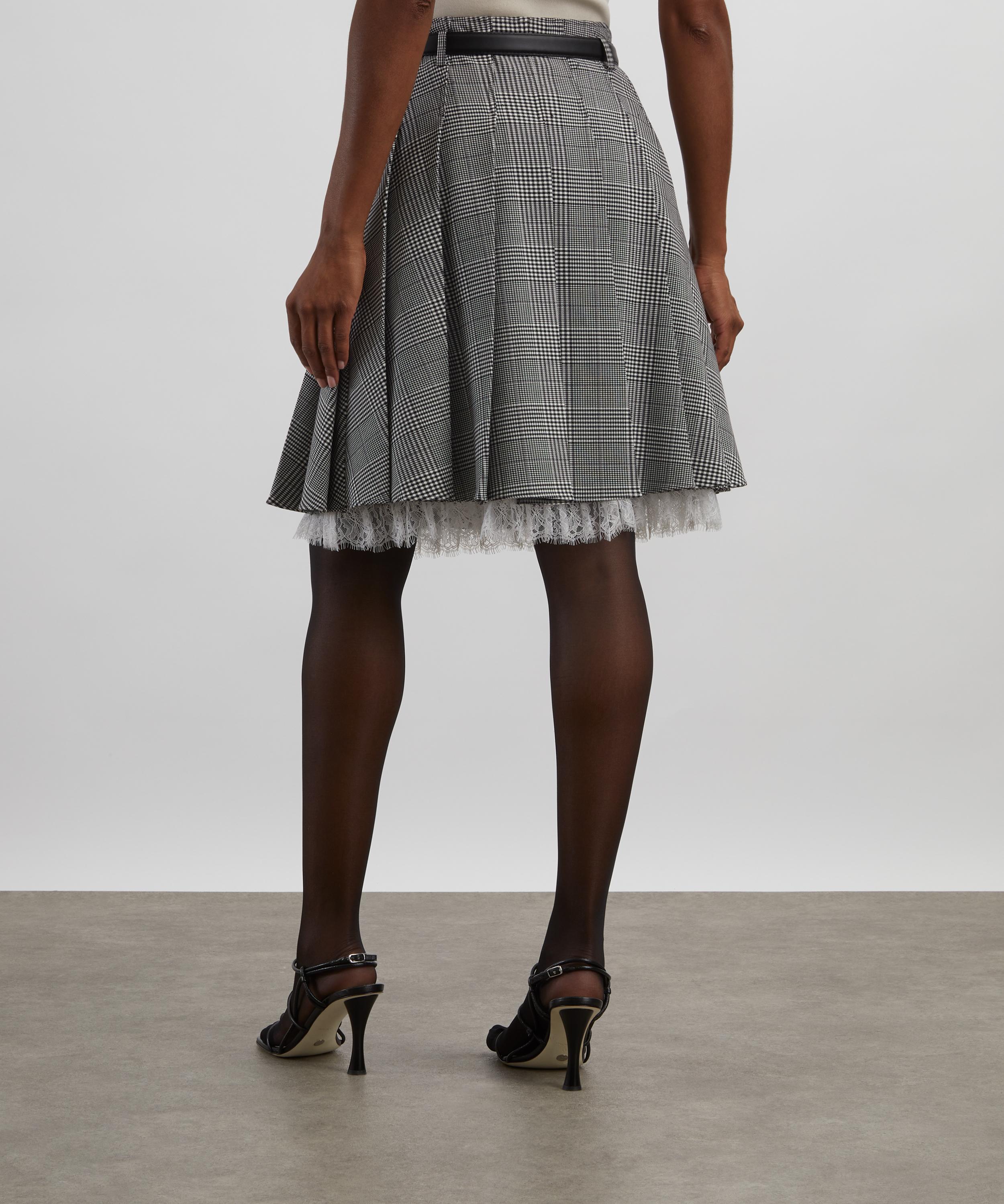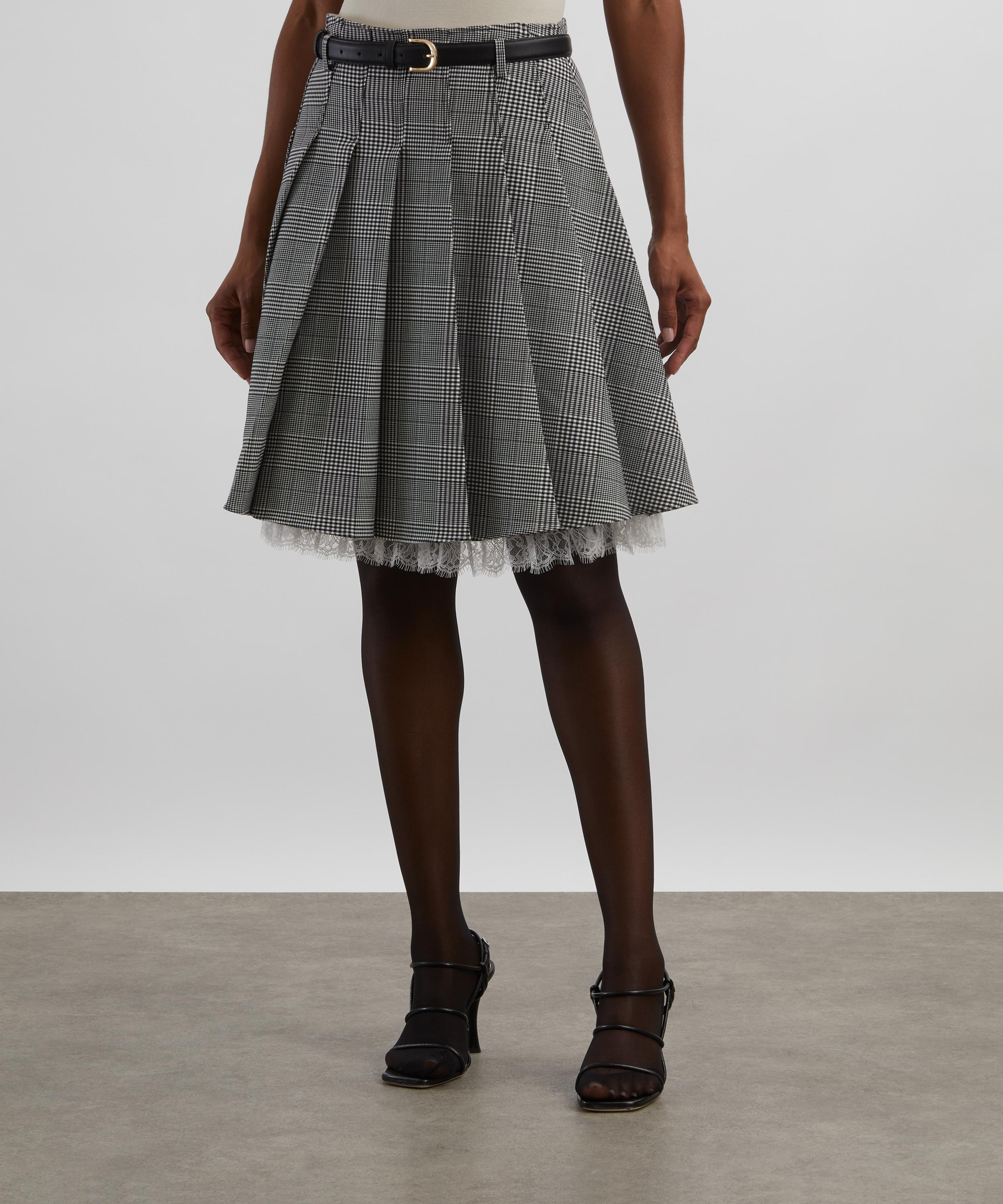 An elevated take on a wardrobe staple, this pleated midi skirt is cut from classic Prince of Wales check. Secured with a belt at the waist, lace trims add extra ladylike charm at the hem.
