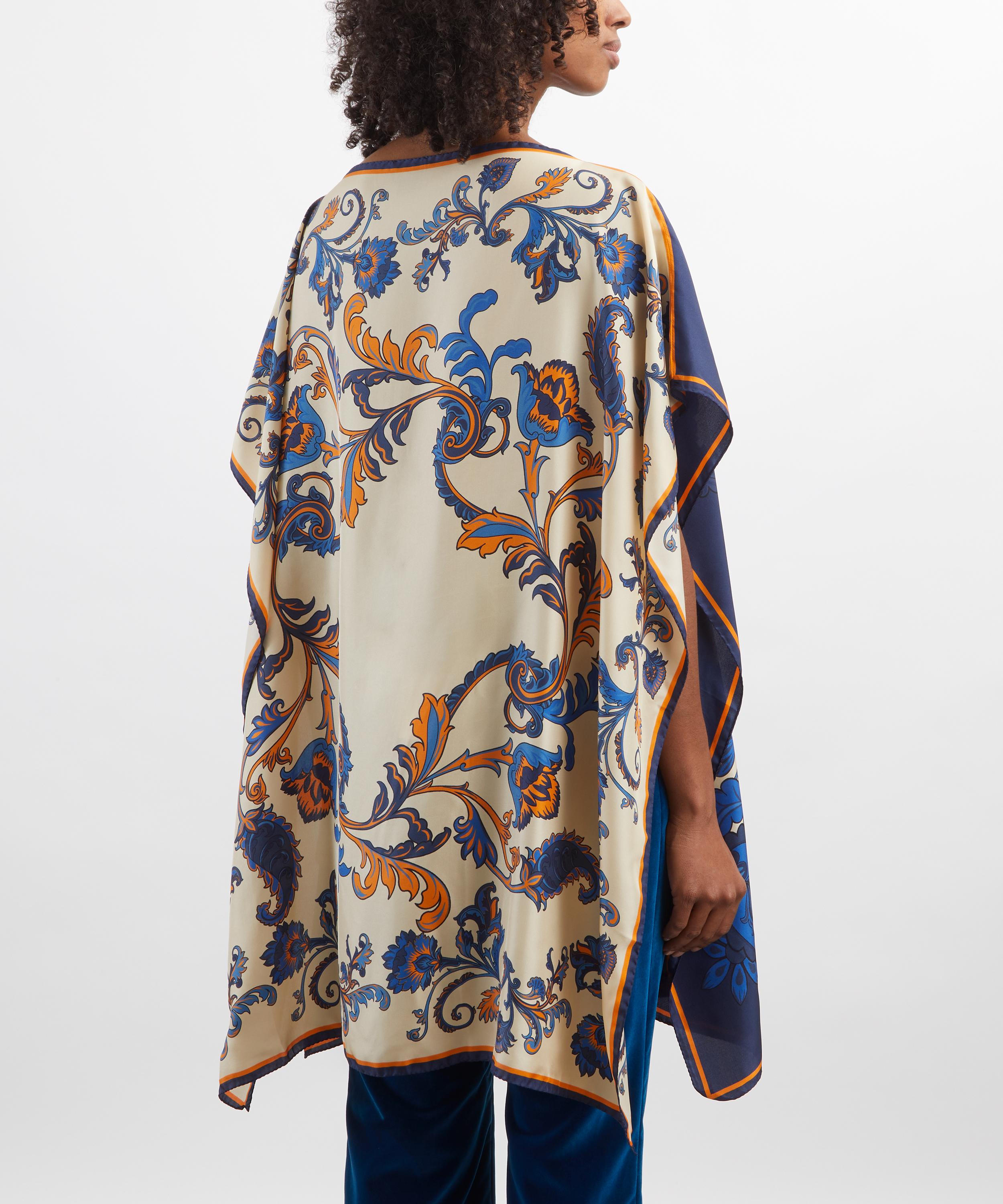 Print Asymmetric Silk Poncho