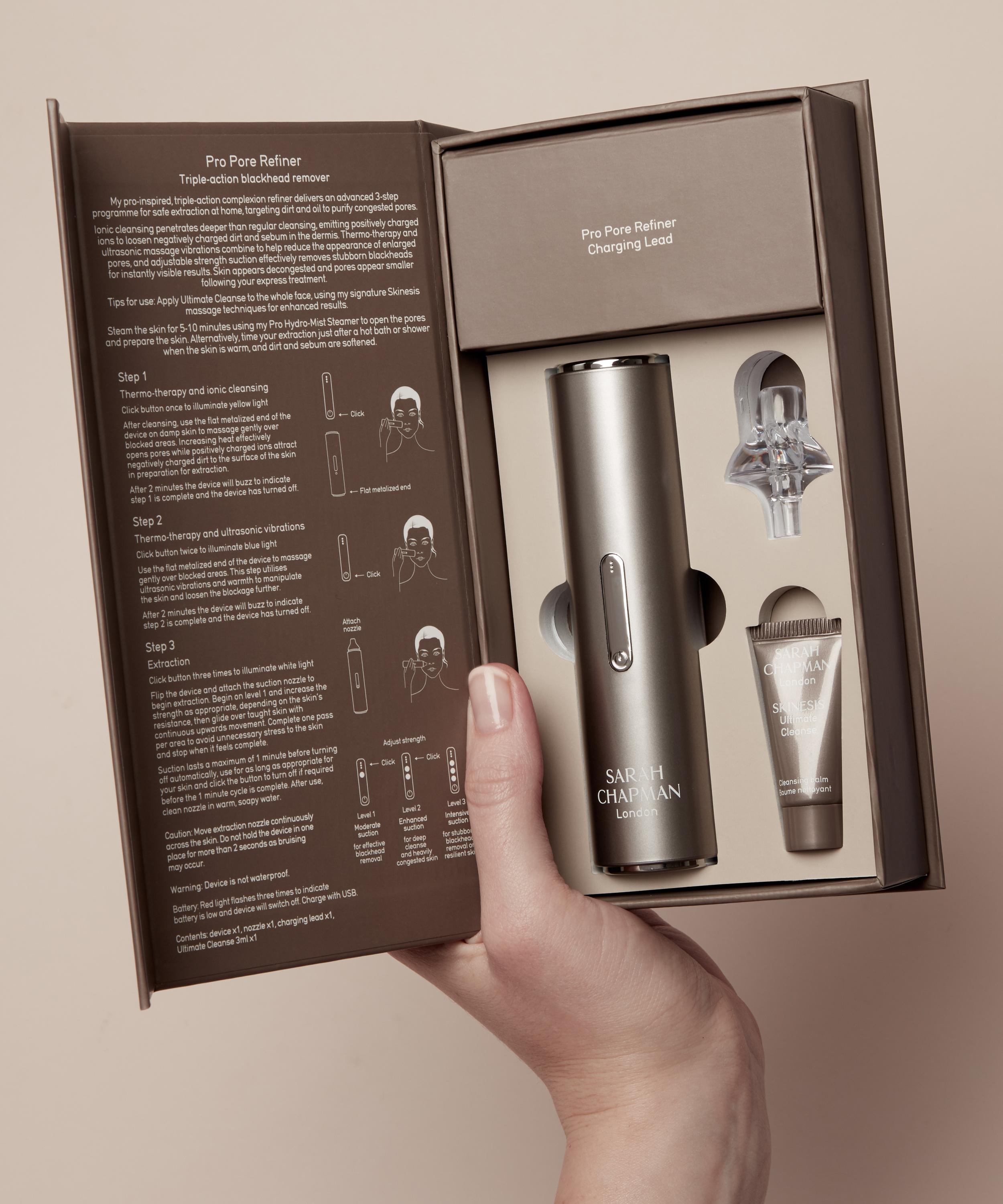 “Inadequate cleansing is often the cause of many common skin concerns and something I often see in my Clinic. Pro Pore Refiner is the next best thing to a professional treatment, instantly extracting impurities and cleansing skin of blackheads for true complexion perfection.” – Sarah Chapman