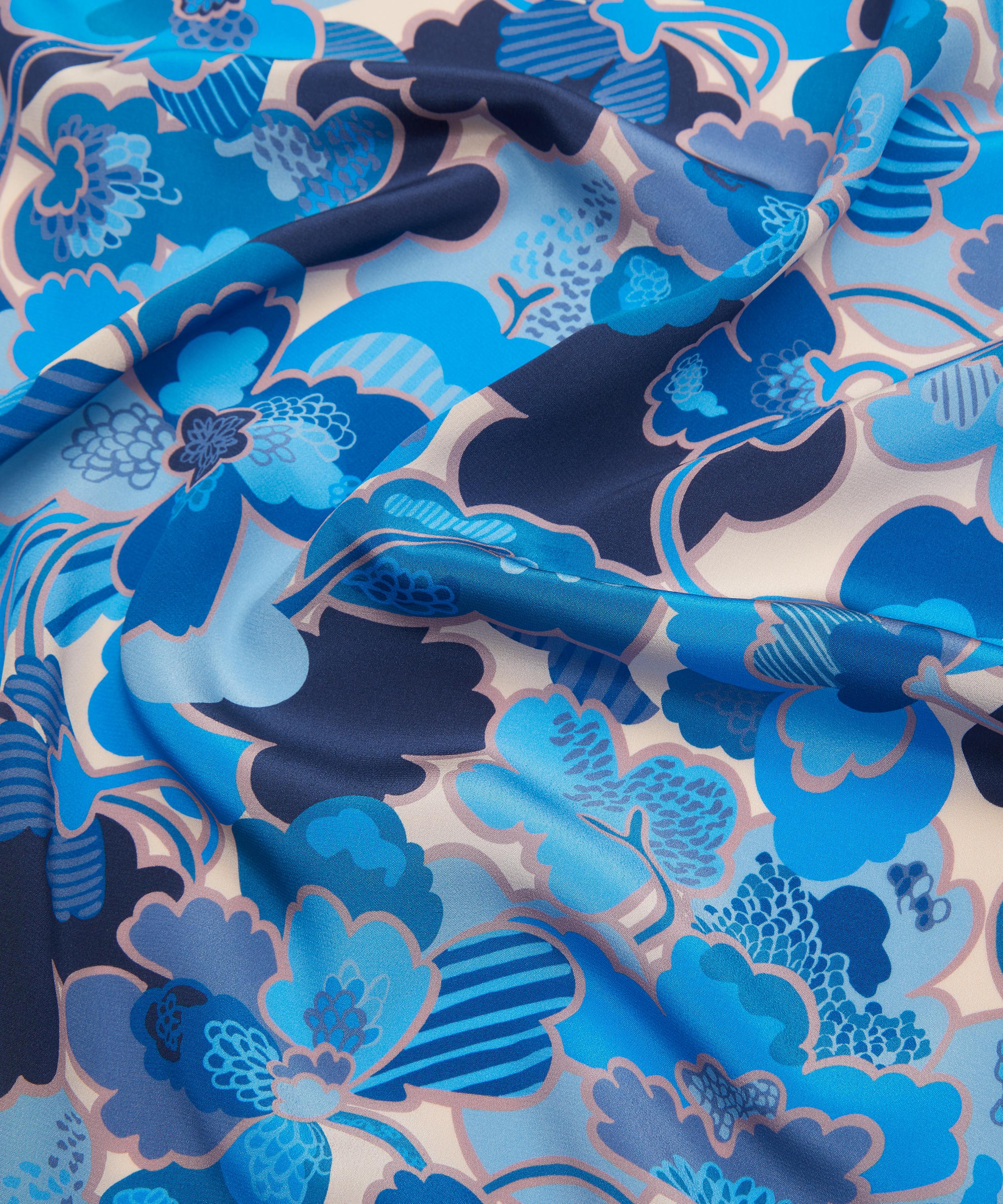 Crepe de chine is one of the best silk bases for daytime wear – it’s effortlessly luxe, with a lightweight drape that’s made more durable by its matte, slightly rough surface. Try using crepe de chine to create a louche effect with wide-leg trousers and loosely tailored shirts, or with fluted sleeves and ruffled accents for a romantic feel.