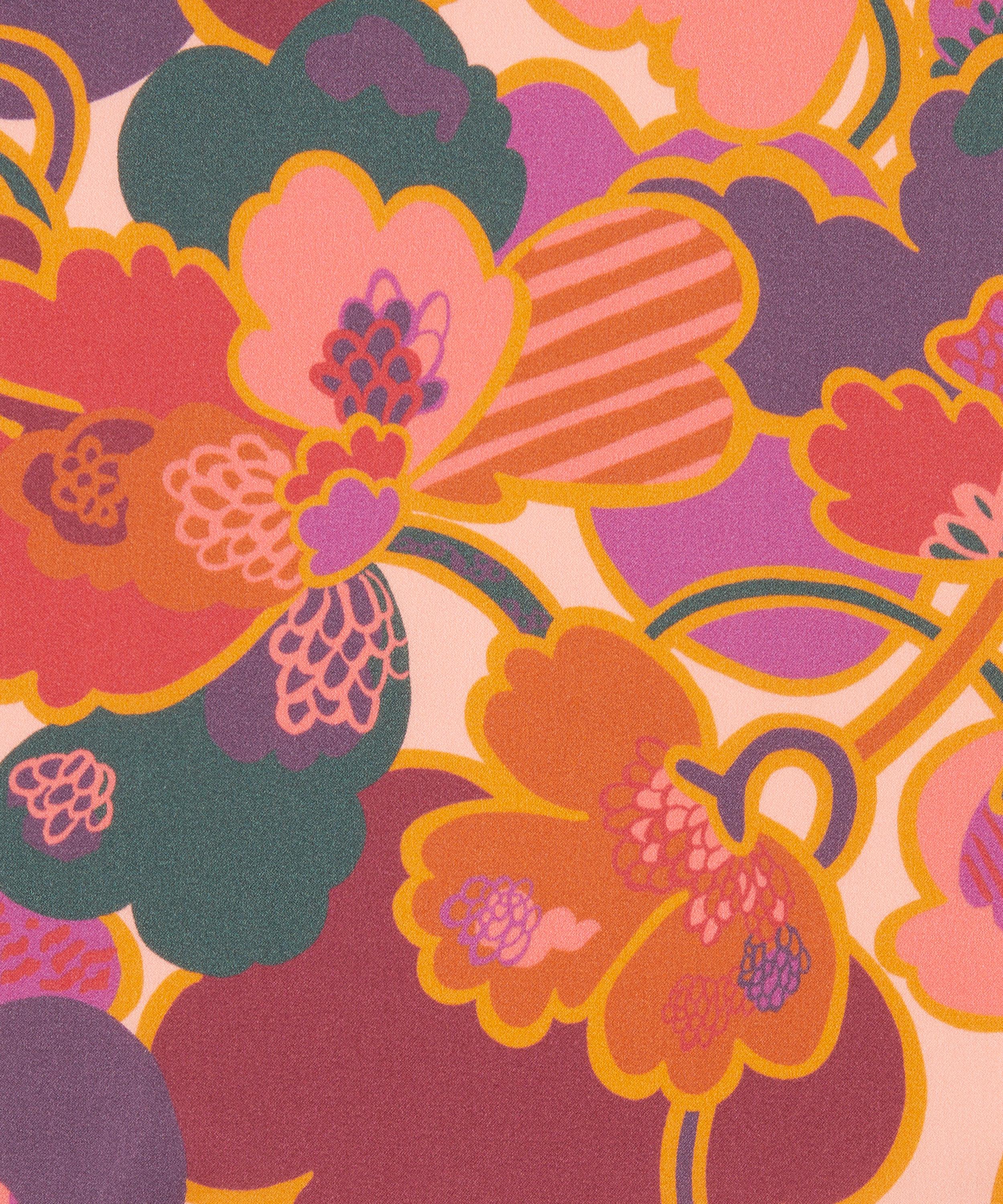 Taking cues from the stylistic attributes of the 1960s Art Nouveau revival era, Prospect Avenue was hand-painted in the design studio and reflects some of the motifs found in Bernard Nevill’s ever-popular Prospect Road pattern. Infused with vibrant retro vibes, its prominent petals were drawn with bold outlines and filled with flat colour, detailed curves, stripes, scribbles, and dashes. This print is part of the anniversary collection’s final chapter, Collectibles. Offering a design for each decade, this timeline of hero prints encapsulates 150 years - exploring the design house’s varied and influential handwriting while honouring key moments of creativity and discovery.