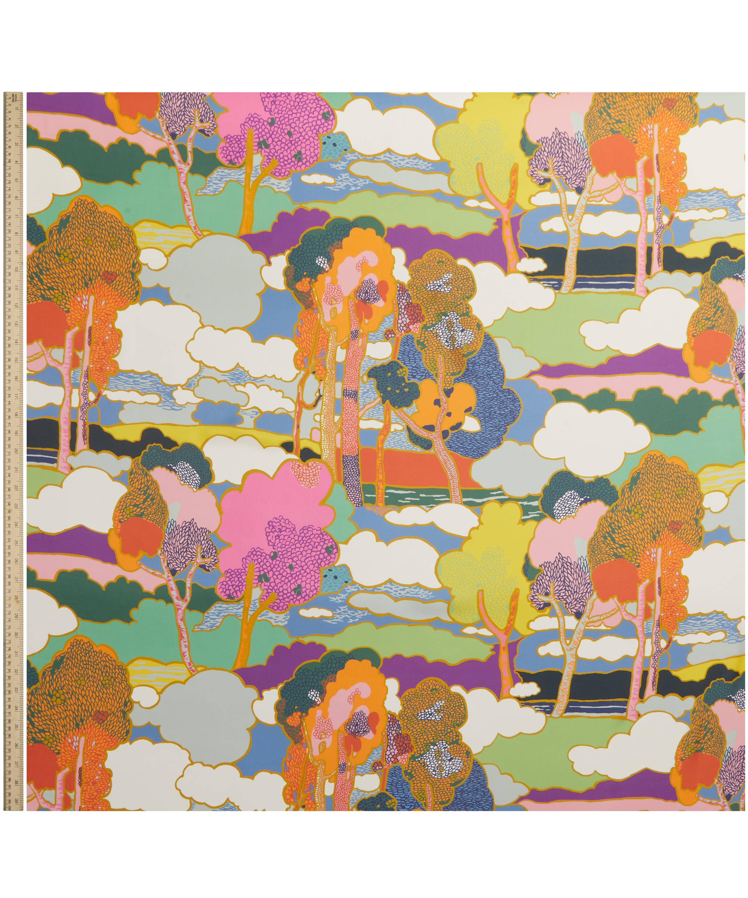 Reimagined as a large-scale version of Prospect Road, this brand-new pattern celebrates bold silhouettes and rich colour palettes. Originally created in 1968 by famed British designer - and then Liberty design director - Bernard Nevill, Prospect Place is a revival of traditional Art Nouveau style landscape prints that feature subtly arranged clusters of trees in a dreamy, jewel-toned setting.