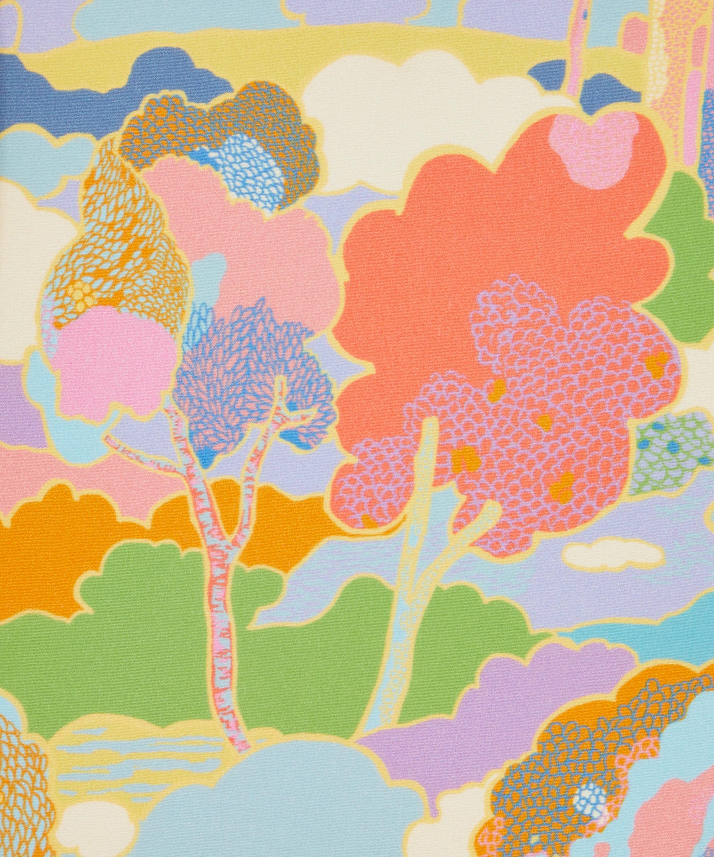 Prospect Road is an archival classic, based on a Liberty design from 1968. A revival of traditional Art Nouveau landscape prints, it features subtly arranged clusters of trees in a dreamy, jewel-toned setting.