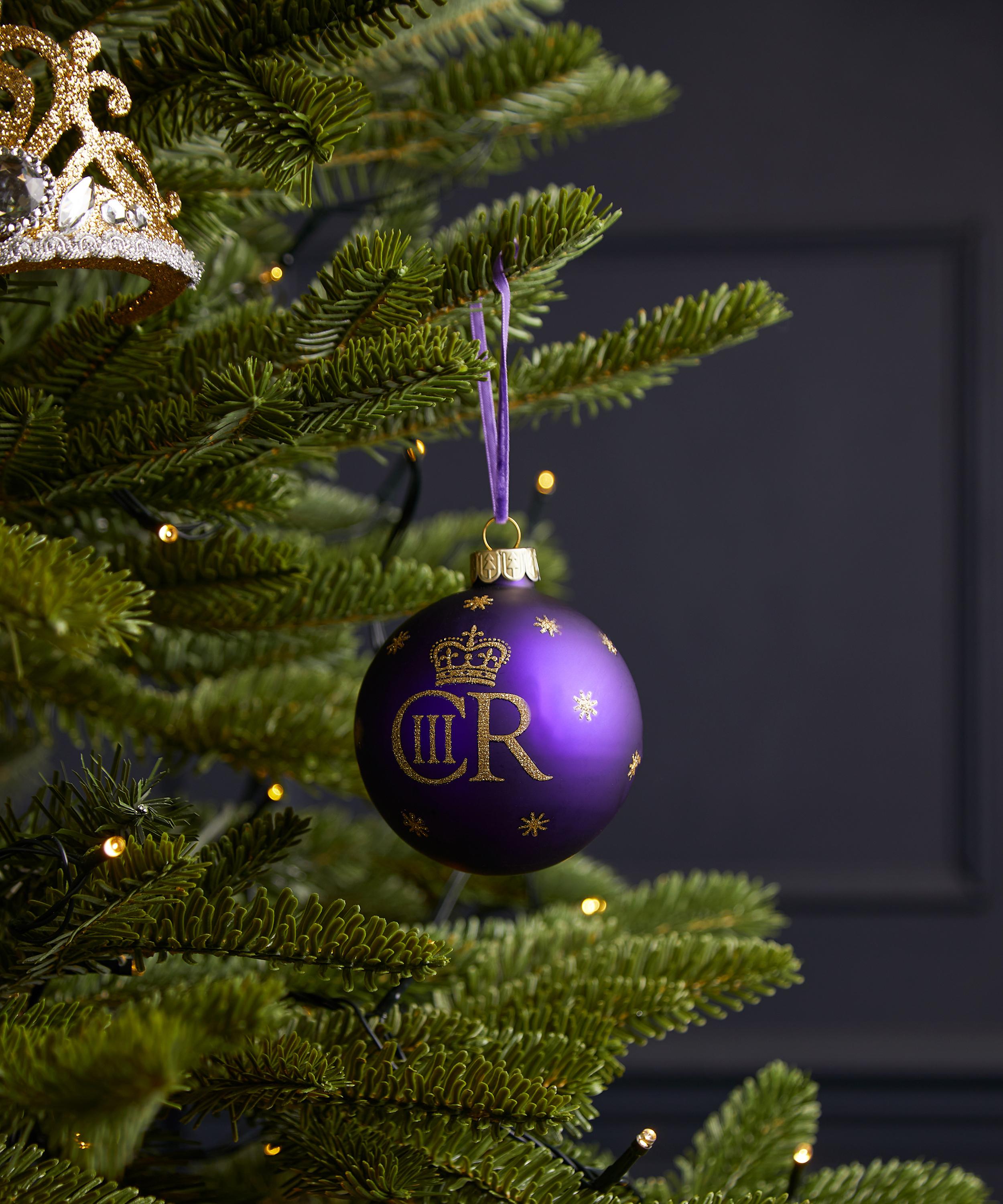 Expertly crafted from glass, it’s defined by a glittered monogram depicting the Royal cypher of King Charles III. Bring a subtle sparkle to this year’s Yuletide arrangements by mixing and matching it with your traditional and contemporary decorations and seasonal décor.