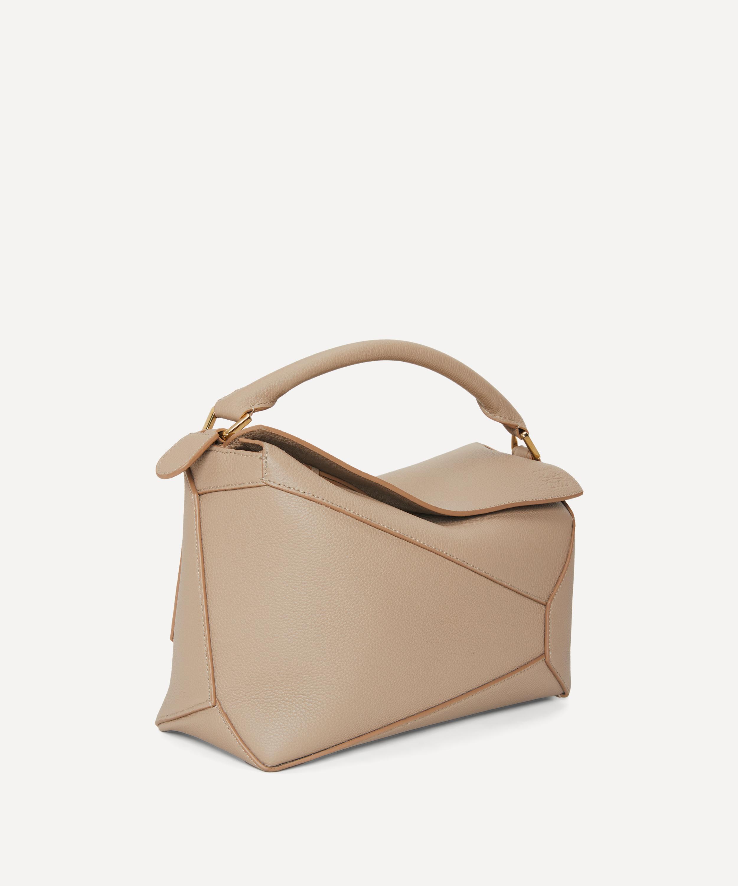 The iconic Puzzle Edge top handle bag from Spanish fashion house Loewe showcases an innovative folding design that can be adapted for any outfit or occasion.