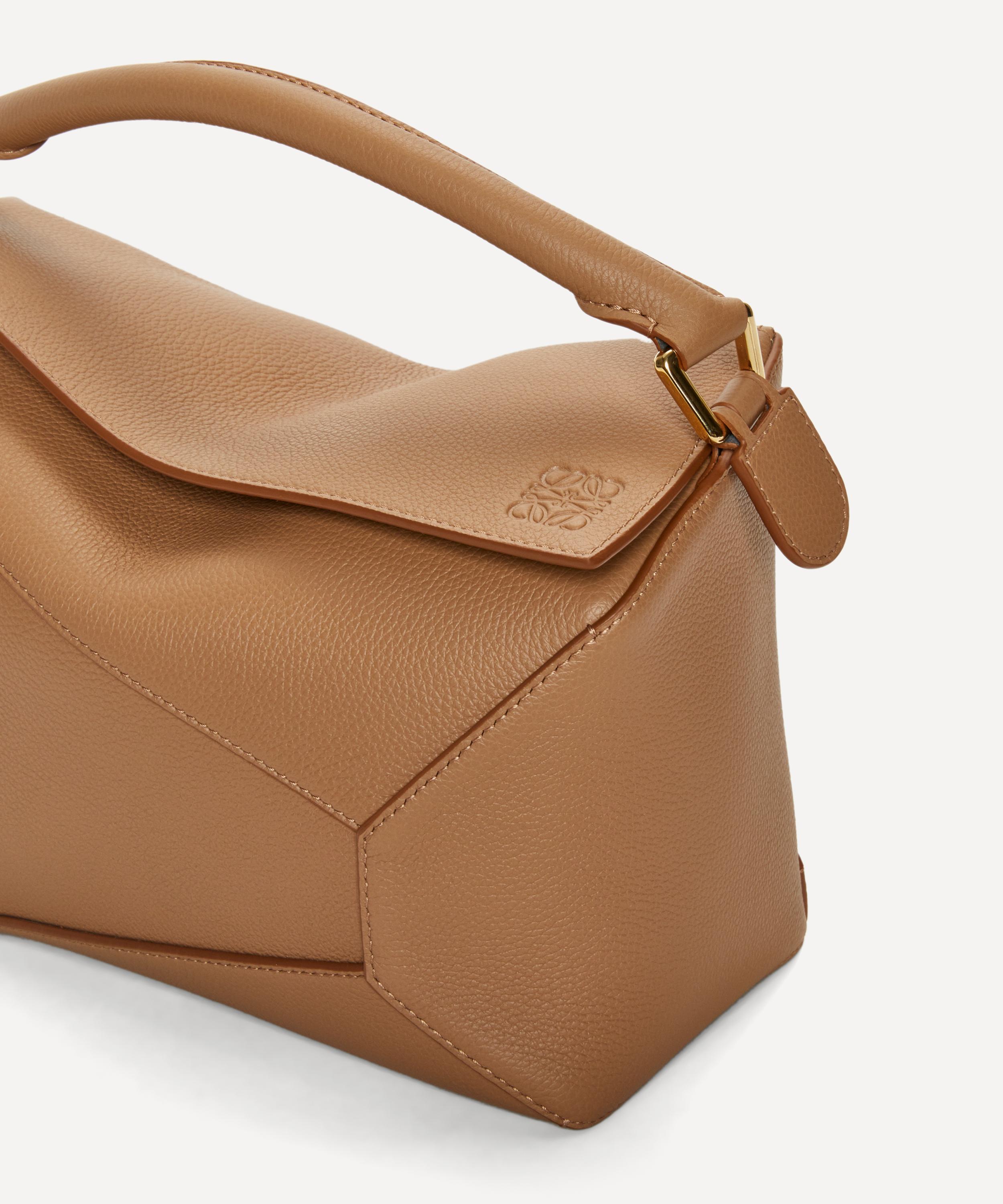 The iconic Puzzle Edge top handle bag from Spanish fashion house Loewe showcases an innovative folding design that can be adapted for any outfit or occasion.