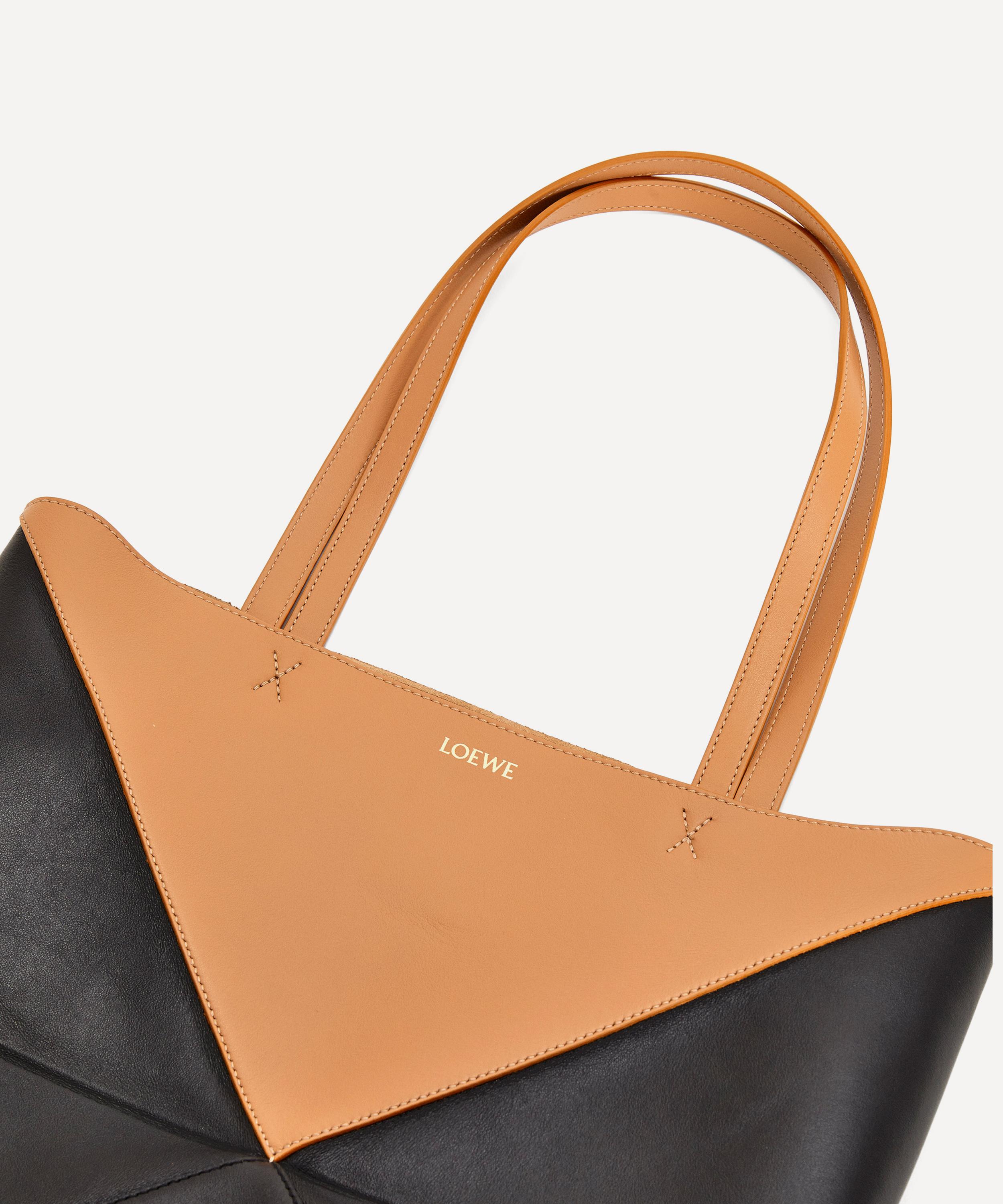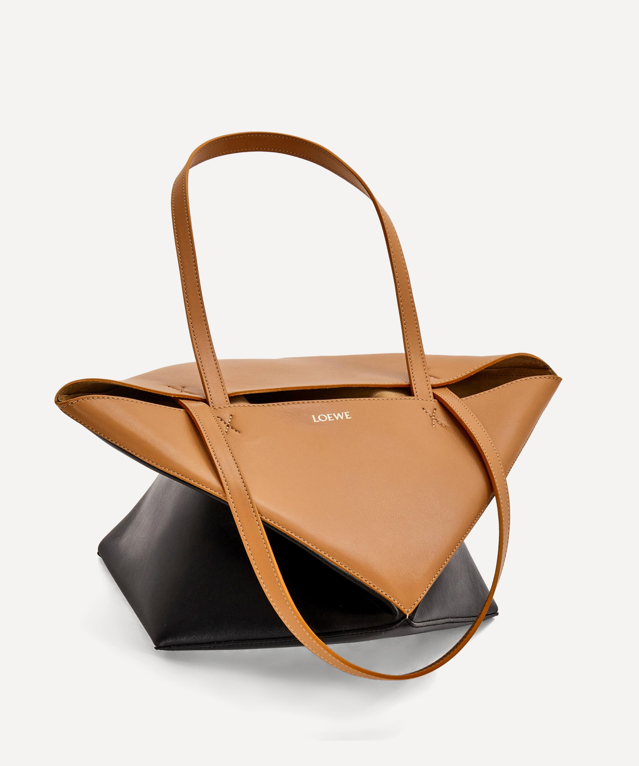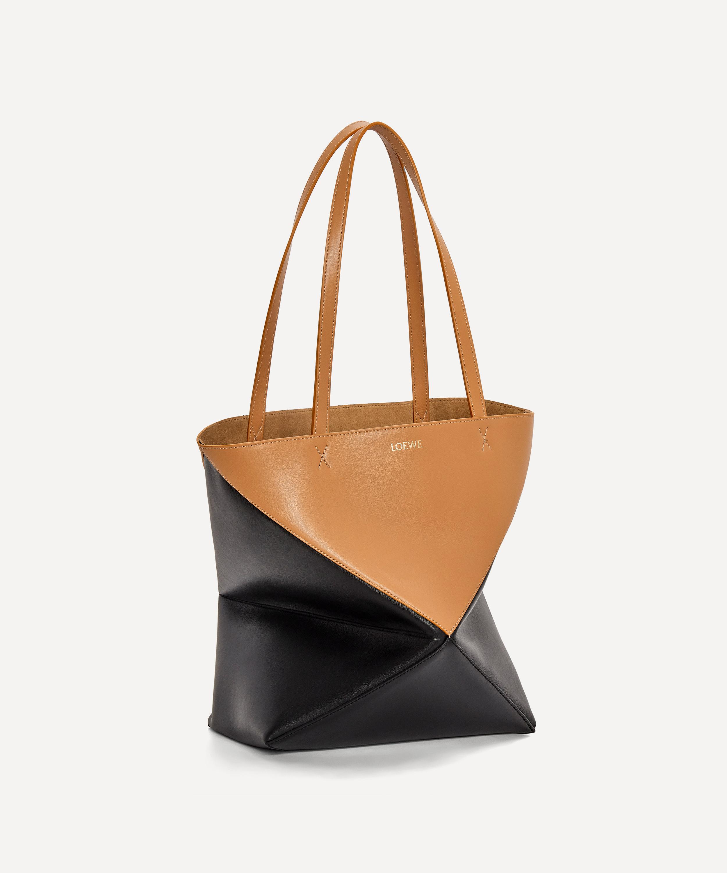 The iconic Puzzle shoulder bag from Spanish fashion house Loewe is reimagined in this sleek and inventive tote bag.