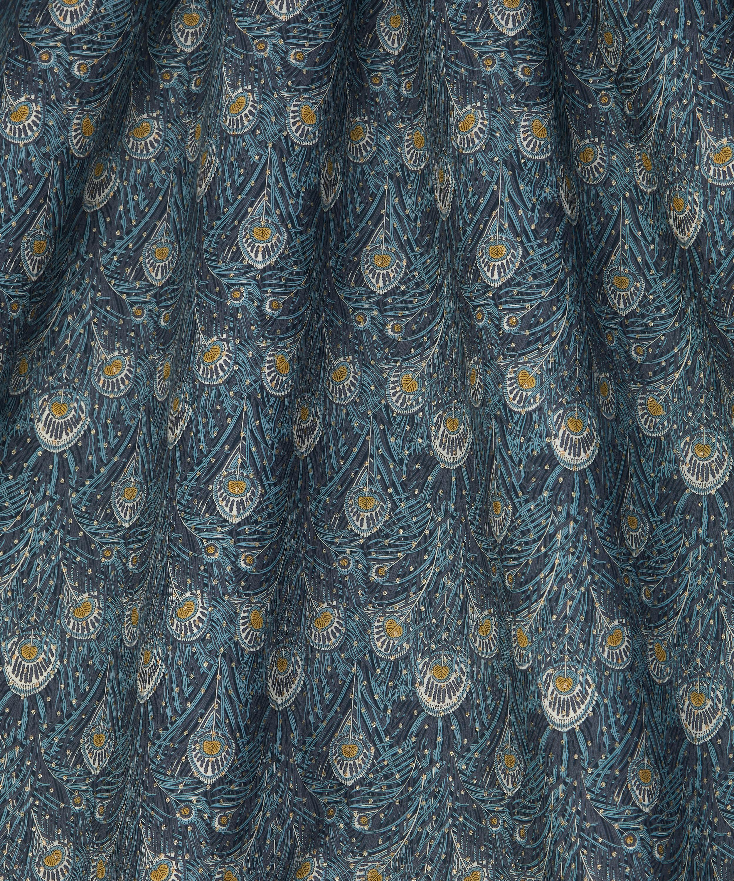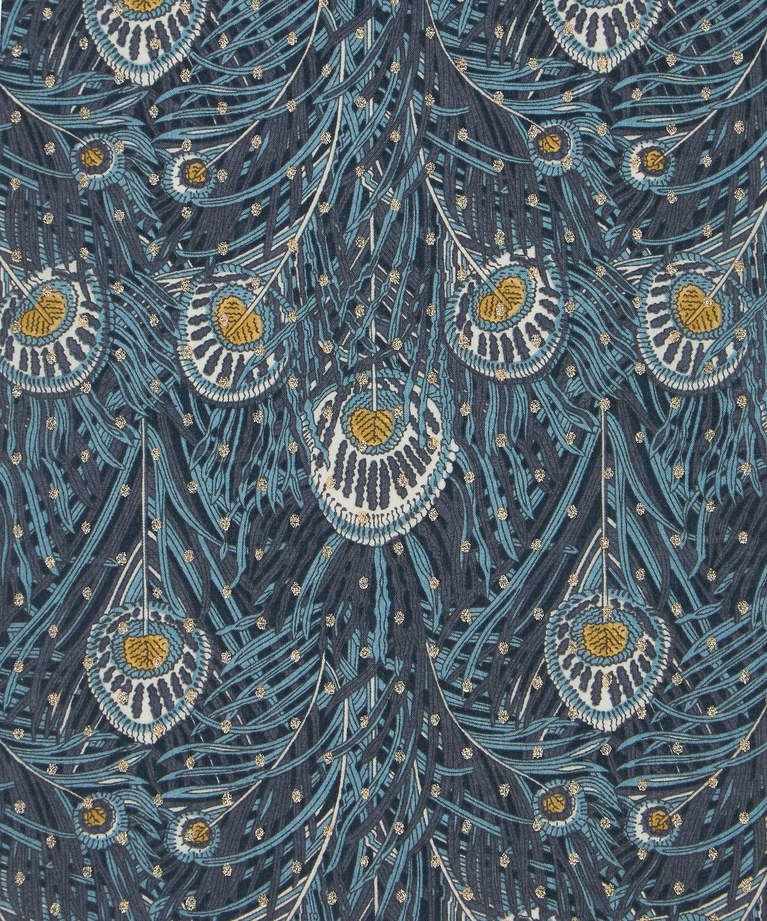 Queen Hera is named after the Greek goddess whose sacred animal was the peacock, Hera is a true heritage icon of Liberty Fabrics and has adorned Liberty designs ever since the mid-1890s - here enhanced with a jewel spot repeat for the Classic Metallic collection.