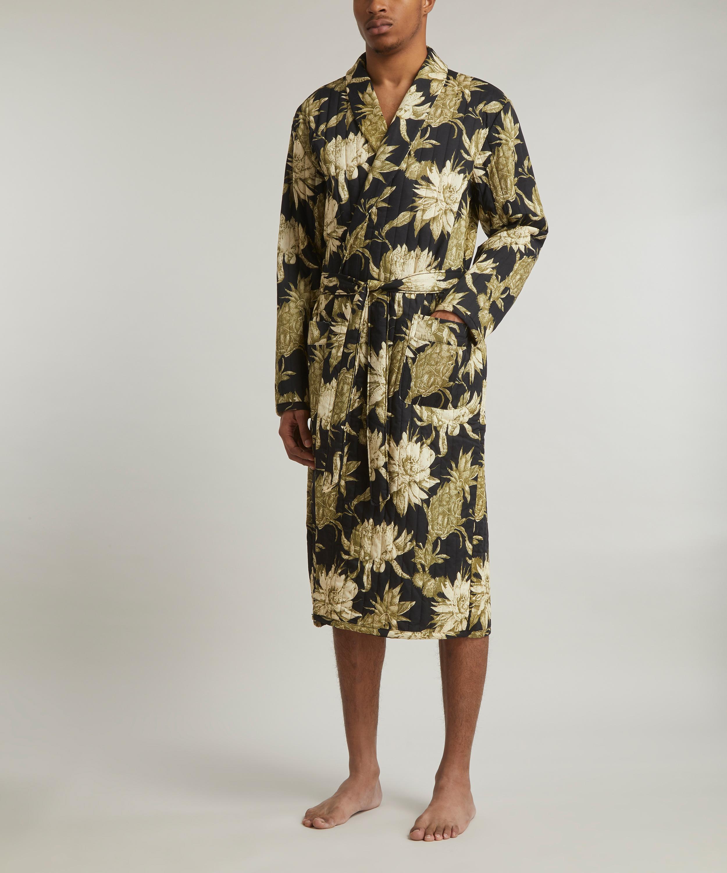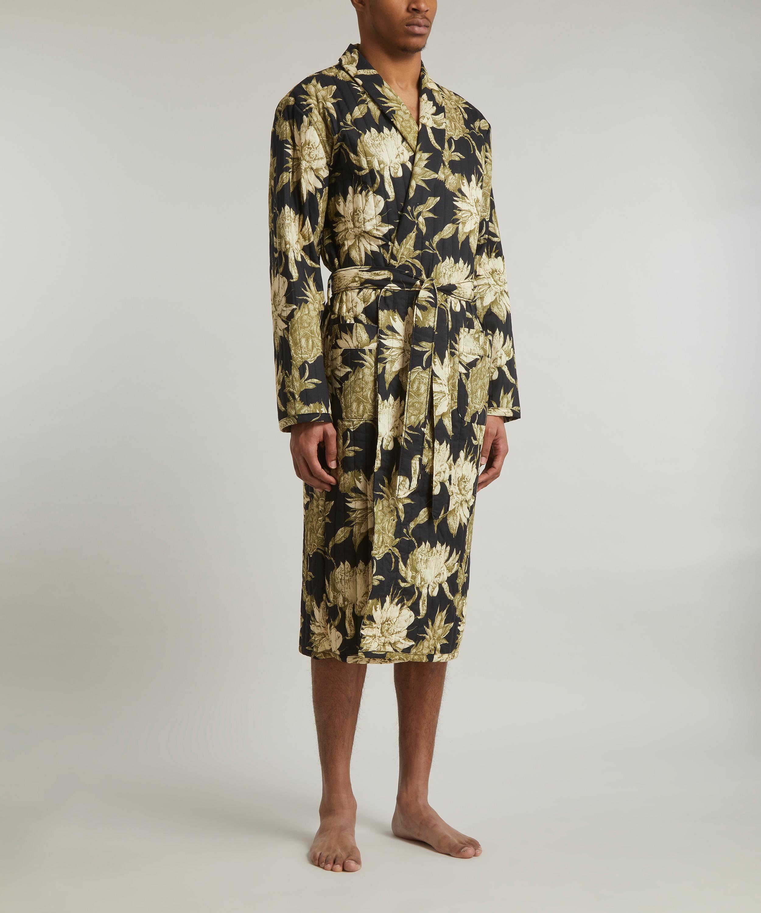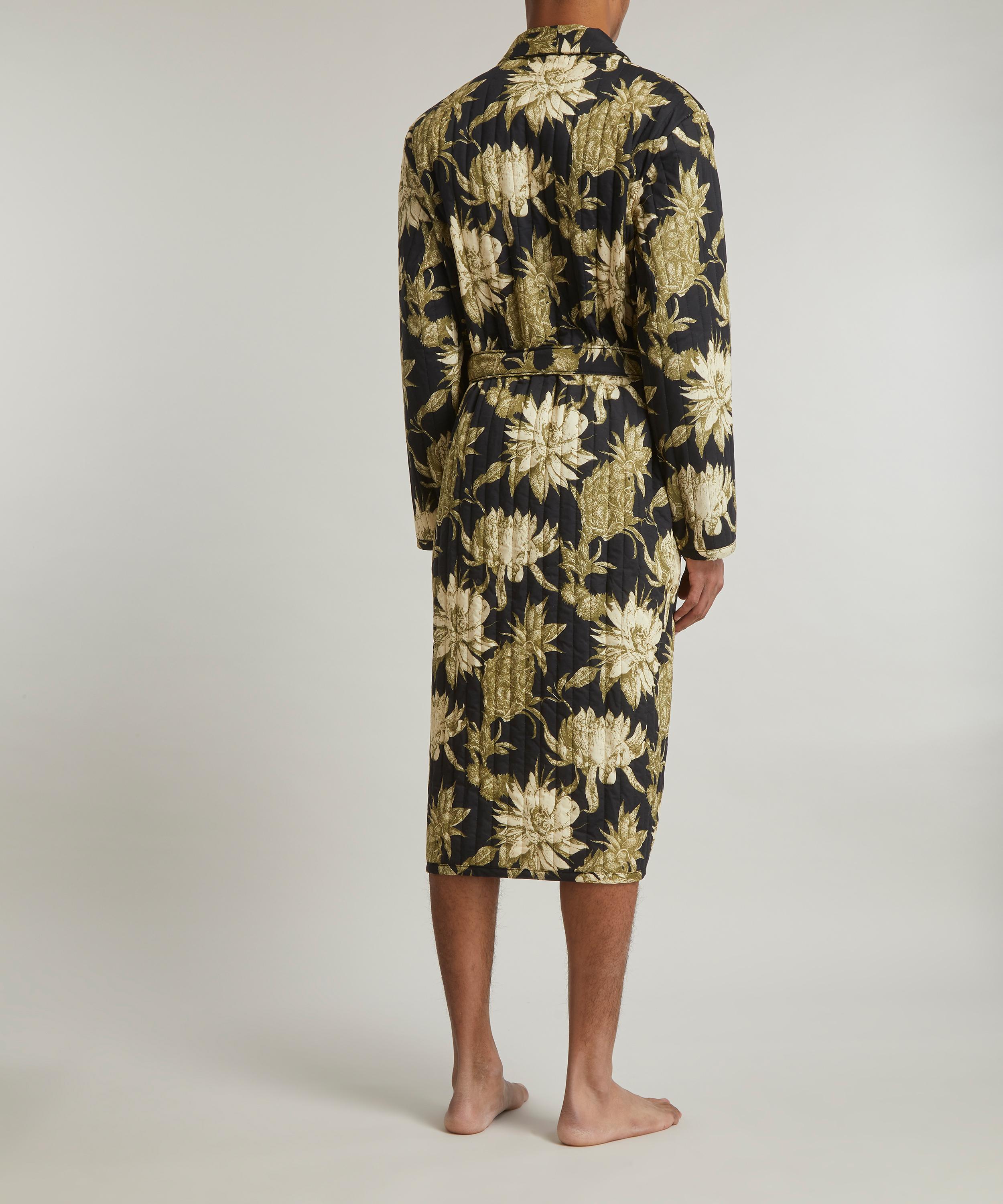 Taking inspiration from men’s quilted dressing gowns of the 1950s, this patterned robe is adorned all-over with the bold Night Bloom motif. Fitted with a cinchable waist belt and a practical pair of patch pockets, it’s crafted premium cotton for a flawless finish and durable long-lasting wear.