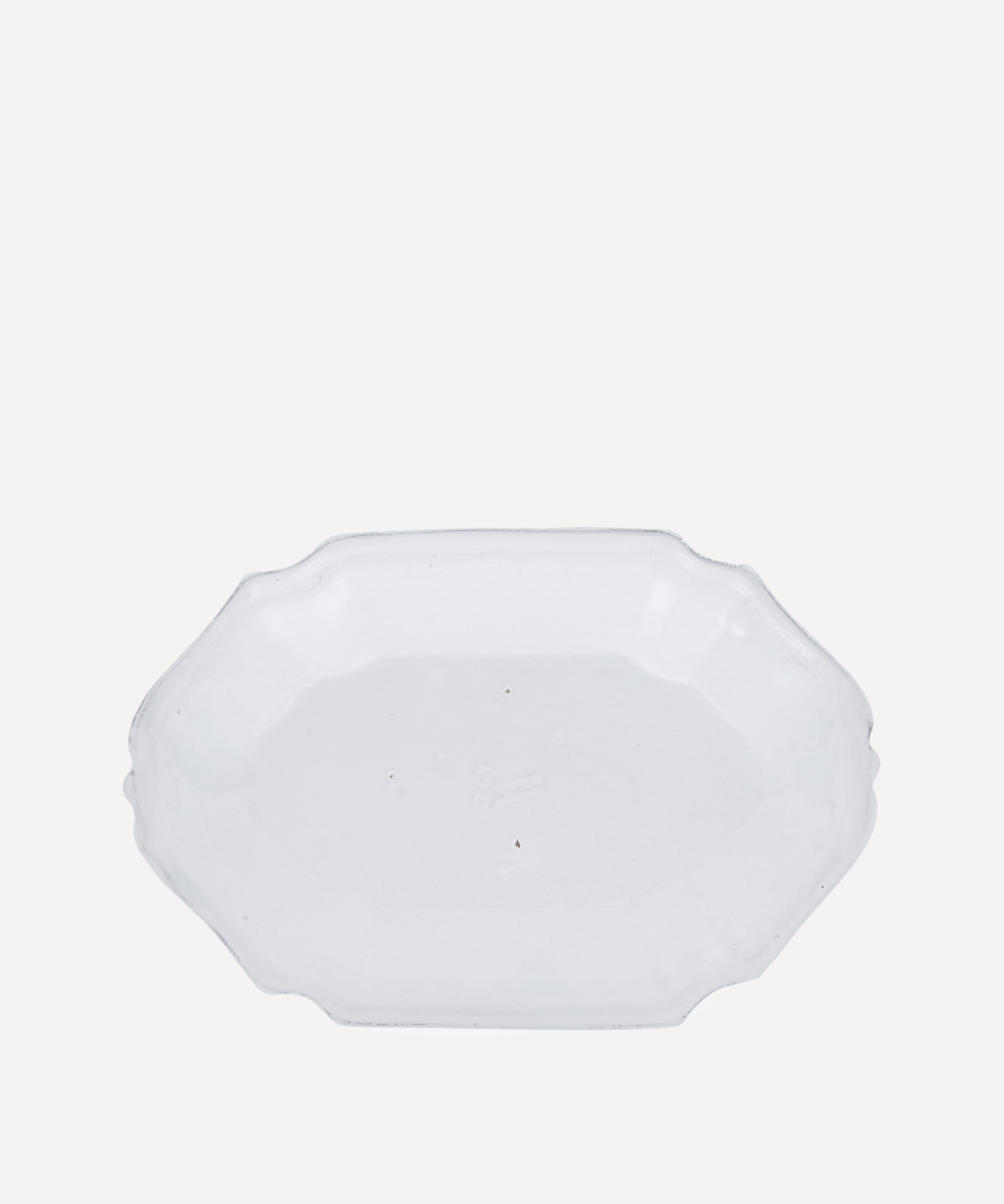 Votary of pre-industrial fabrication, Astier de Villatte is celebrated for being the one and only studio in Paris to hold and harbour the traditions of artisanal ceramic production. Restoring the ancestral systems of moulding and stamping, the Régence platter is made using handcrafting techniques from the Middle Ages which involve moulding a handmade sheet of clay, double firing the ‘biscuit’ piece and glazing the product in white enamel – a lengthy process that involves a drying time of up to one month. Characterised by a decorative, antique-style rim, the oval platter is engraved with the brand’s signature crest - depicting an interlacing A & V - alongside the initials of one of the 40 master artisans who created it. Each handmade piece tells a beautiful story, it romances and imparts a sense of nostalgia into its owner. Arrange with other platters in the collection to breathe an air of authenticity into your dining collection.