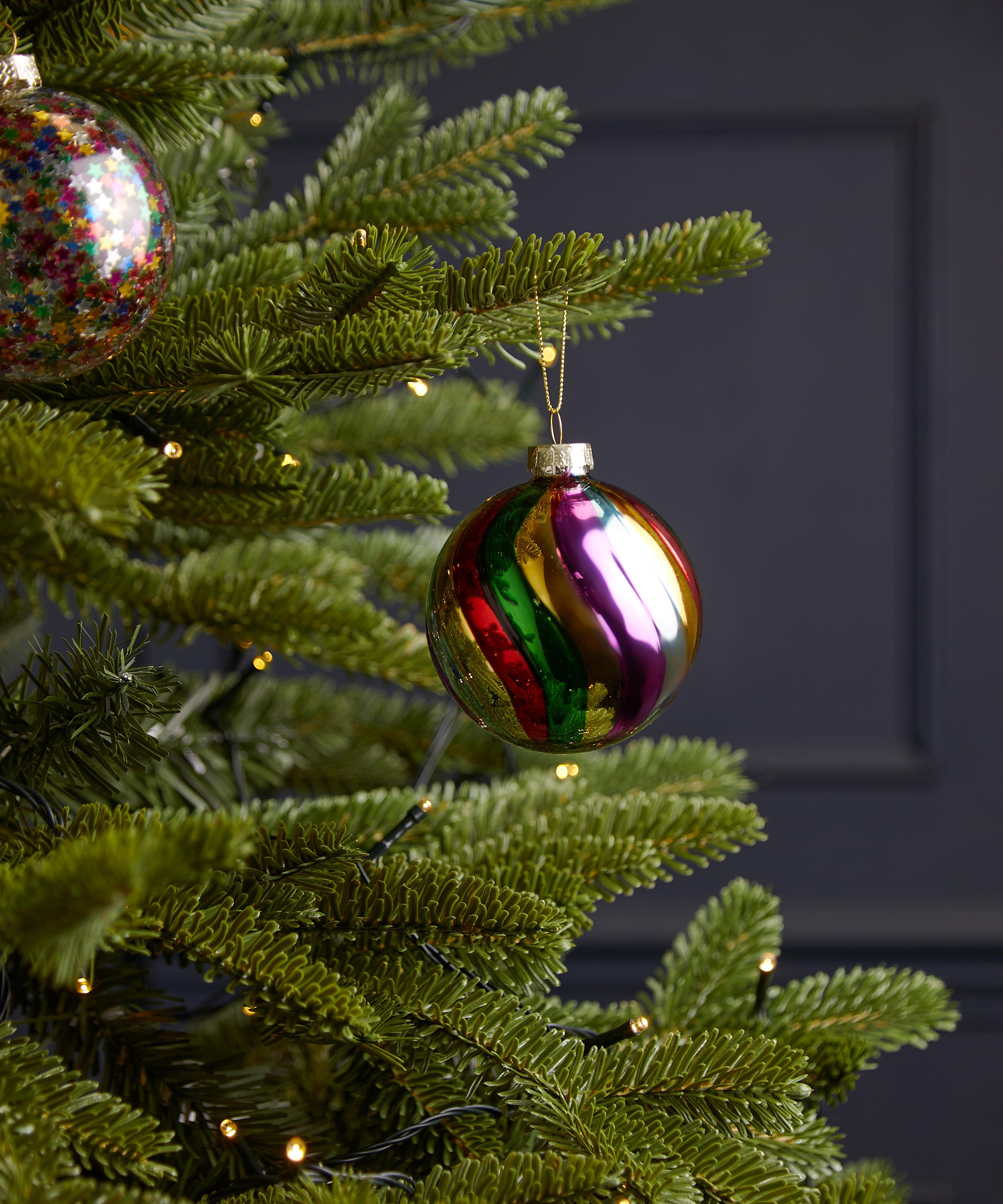 It’s expertly crafted from glass and defined by its pleasing swirls of rainbow colours that pair perfectly with your tree lights to bring a contemporary feel to traditional decorations and motifs. Channel the spirit of the holiday season by working it into your assortment of baubles and adornments to add extra flair to your seasonal décor.