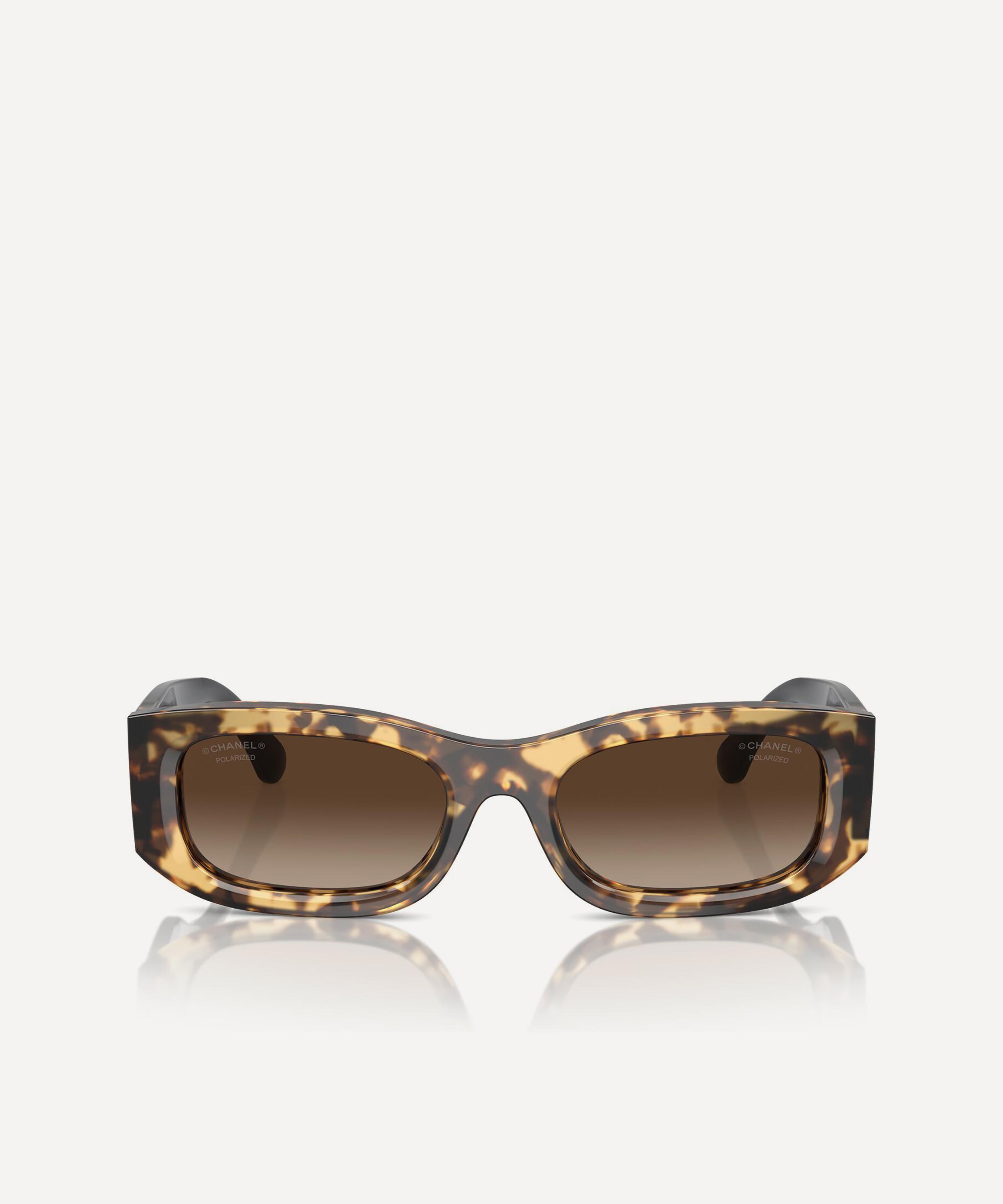 Add a touch of glamour to your everyday look with these rectangle sunglasses from CHANEL. Crafted from premium acetate in a tortoise colourway, they feature a sleek silhouette with a comfortable saddle nose bridge and brown gradient, polarised lenses to protect your eyes from UV light. Complete with the iconic CHANEL emblem logo, style them with pulled-back hair to show off the details.