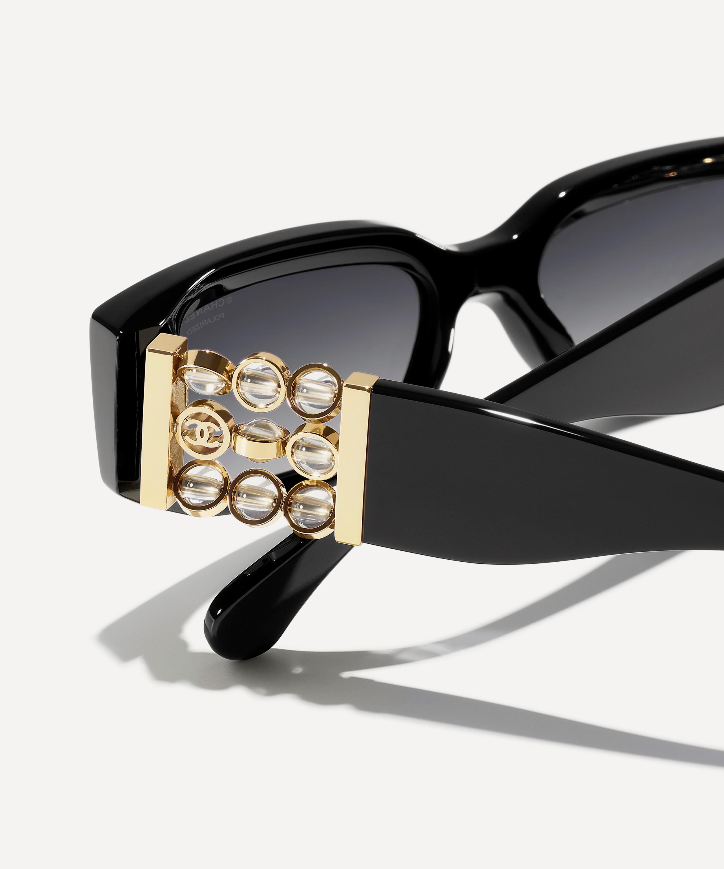 Add a touch of glamour to your everyday look with these rectangle sunglasses from CHANEL. Crafted from premium acetate in a black colourway, they feature a sleek silhouette with a comfortable saddle nose bridge and grey gradient, polarised lenses to protect your eyes from UV light. Adorned with spinning orbs to the temples, they’re complete with the iconic CHANEL emblem logo. Style them with pulled-back hair to show off the details.