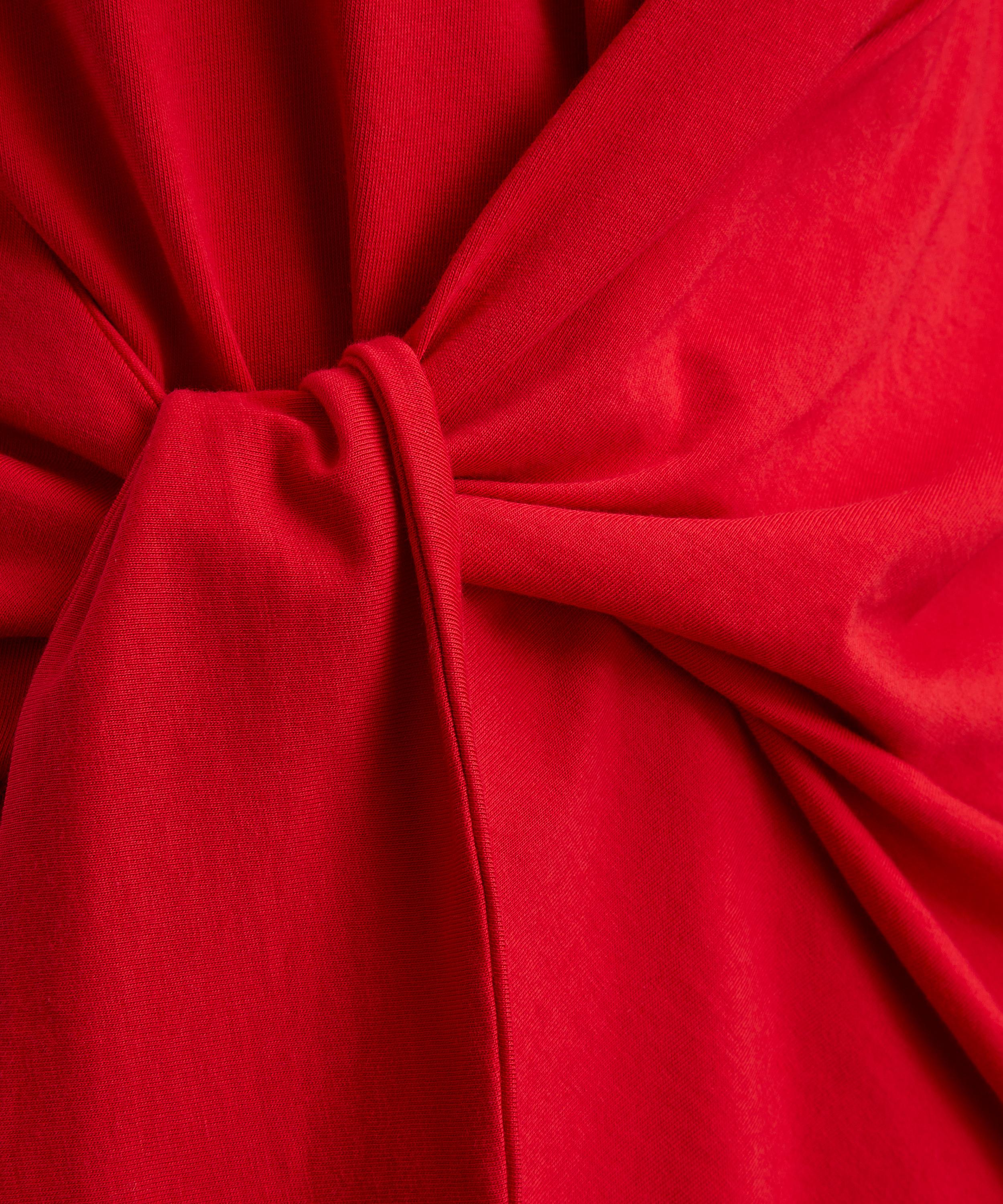 This classic crew-neck t-shirt gets a modern twist with oversized sleeves and twisted self-ties at the waist for a cinched look - ideal for layering over trousers or skirts.