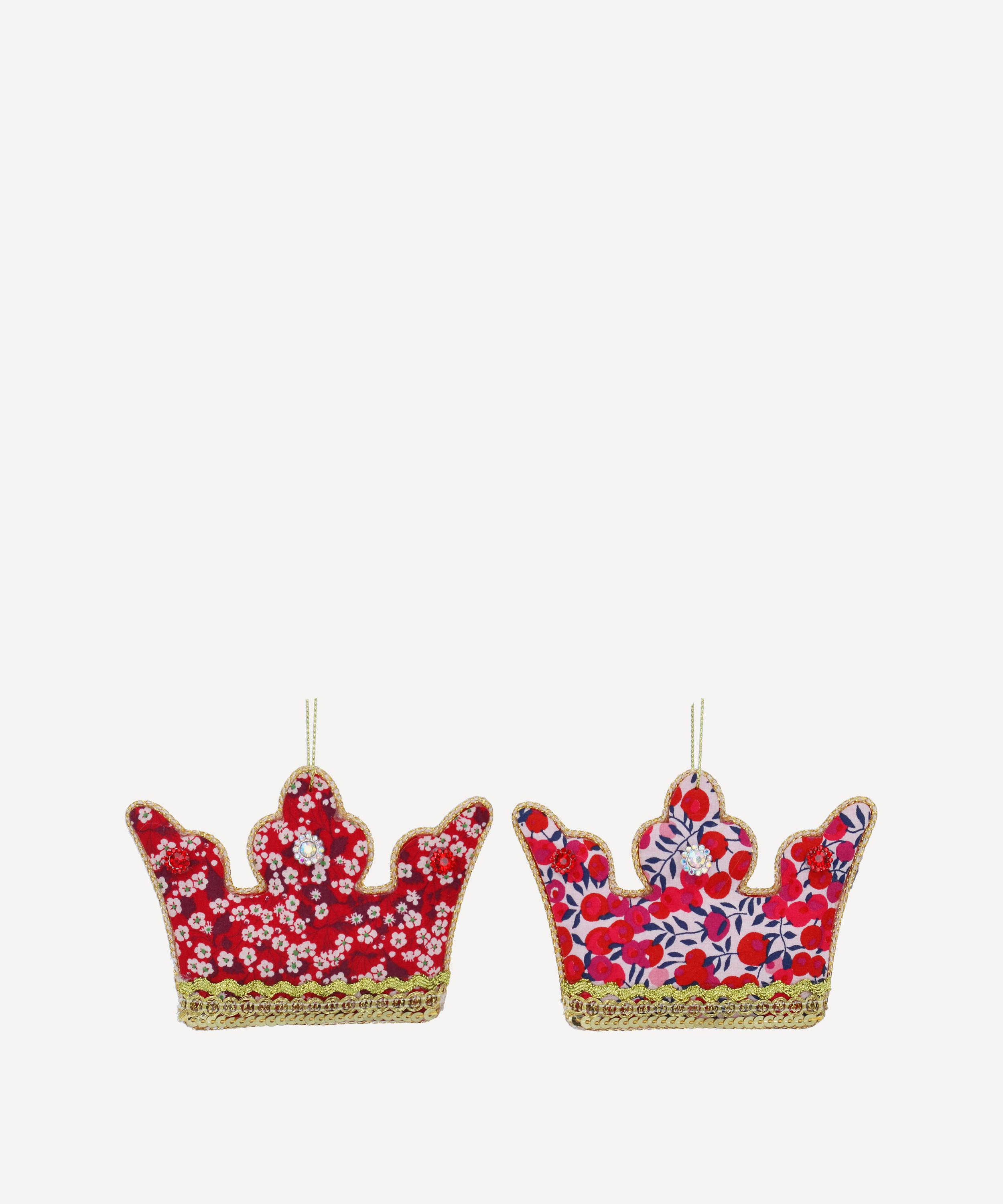 Red Liberty Fabric Crown Ornament Set of 2