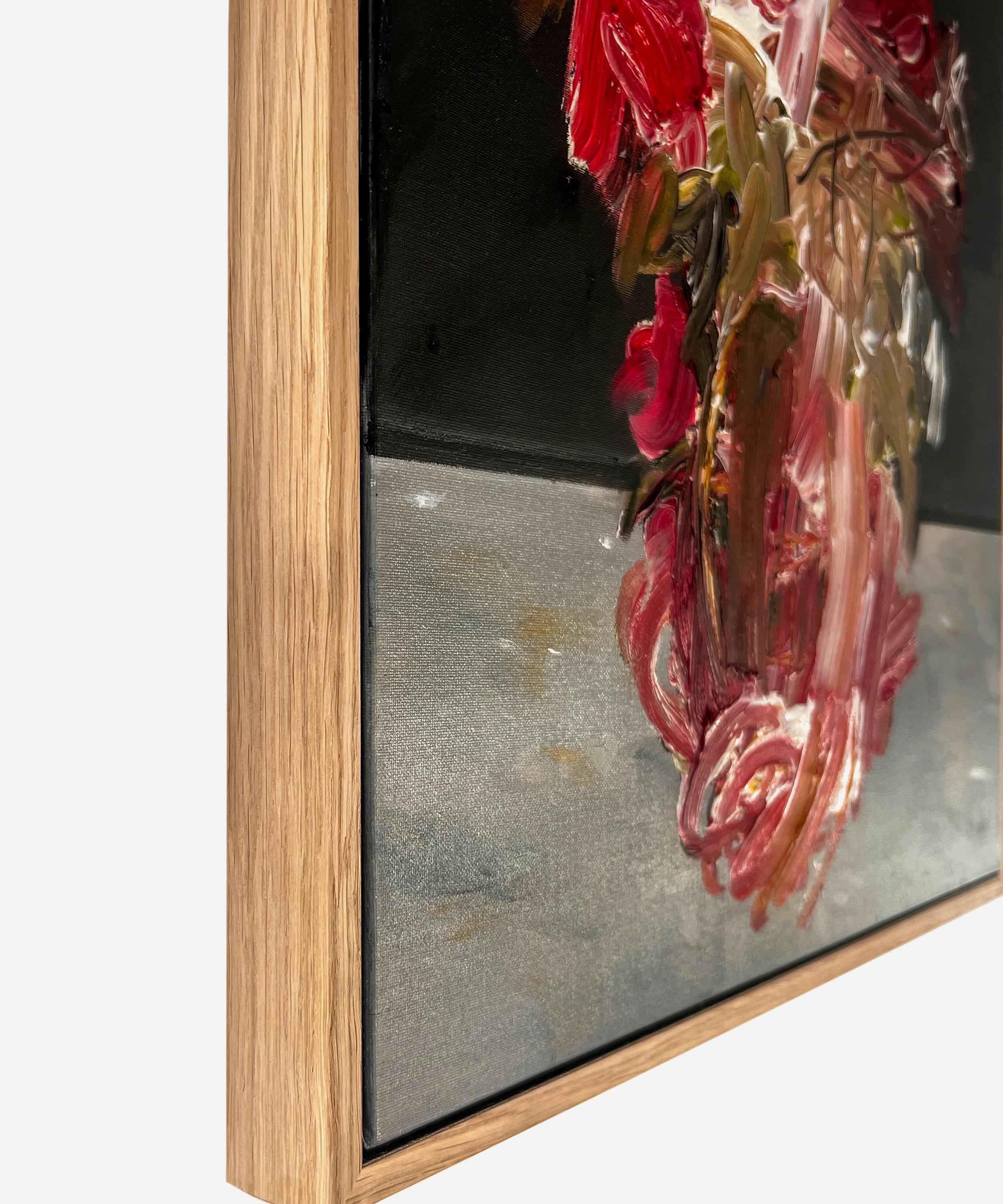 Boulton’s flowers are timeless, they disintegrate and fade with great beauty, and fragility, reminding us of the ephemeral, fleeting nature of life. This series is a classic example of Boulton’s distinctive contemporary painting style, where past and present collide to form an exciting visual language. Her use of expressive colour, gesture and form bring each painting to life, highlighted by the rich medium of oil on canvas. A statement original piece to add to your collection, we suggest hanging against a plain white wall to draw attention to the bold palette and abstract form.