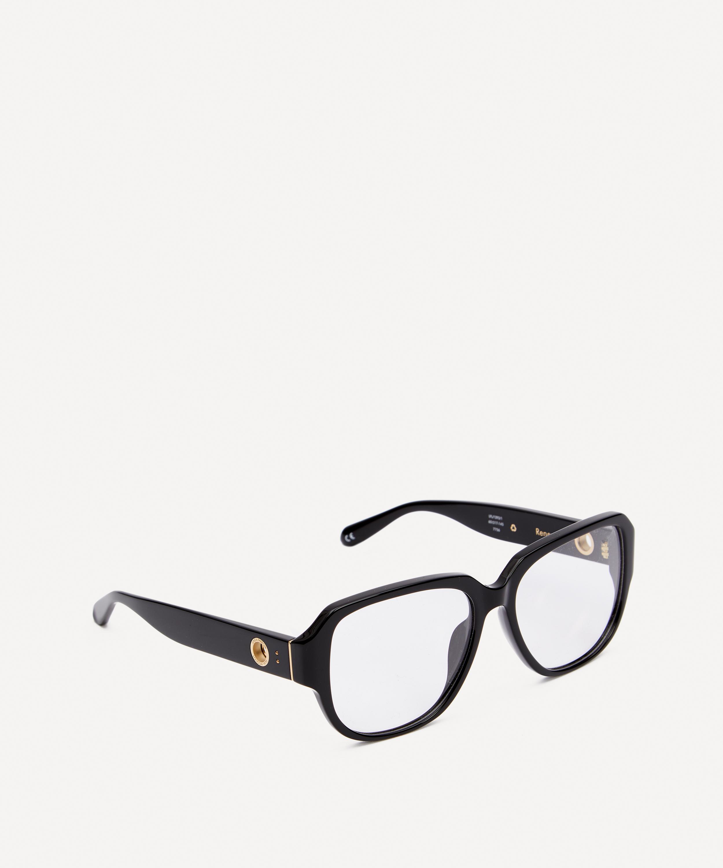 Crafted from glossy black acetate with prescription-ready lenses, these statement opticals are finished with 22 carat gold-plated hardware and an eyelet bearing the brand’s logo. Pair with smart and casual ensembles for a contemporary finish.