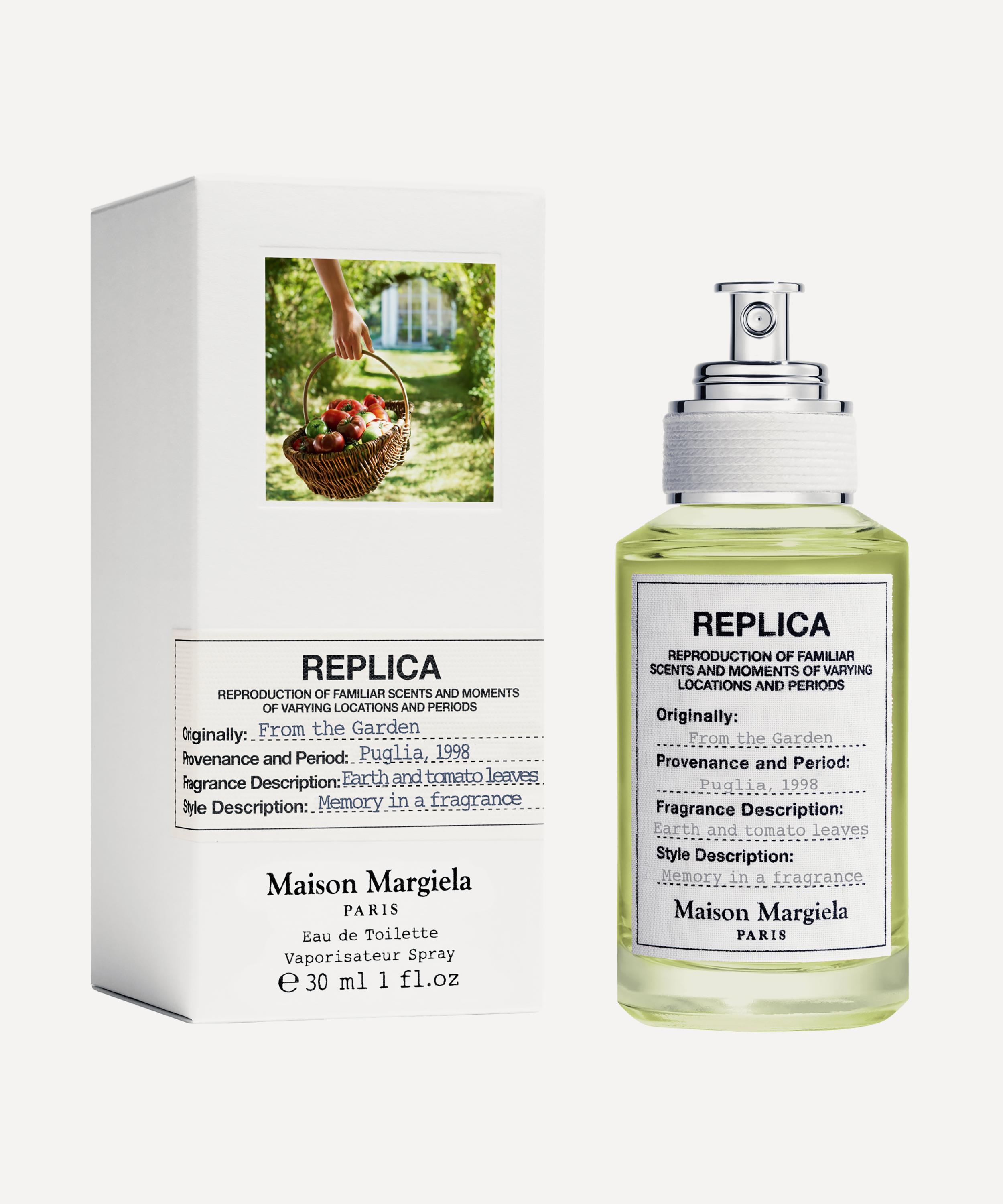Immerse in the tranquillity of a sun-drenched garden with Maison Margiela's Replica From the Garden eau de toilette, capturing a memory from Puglia, 1998, through fragrance.