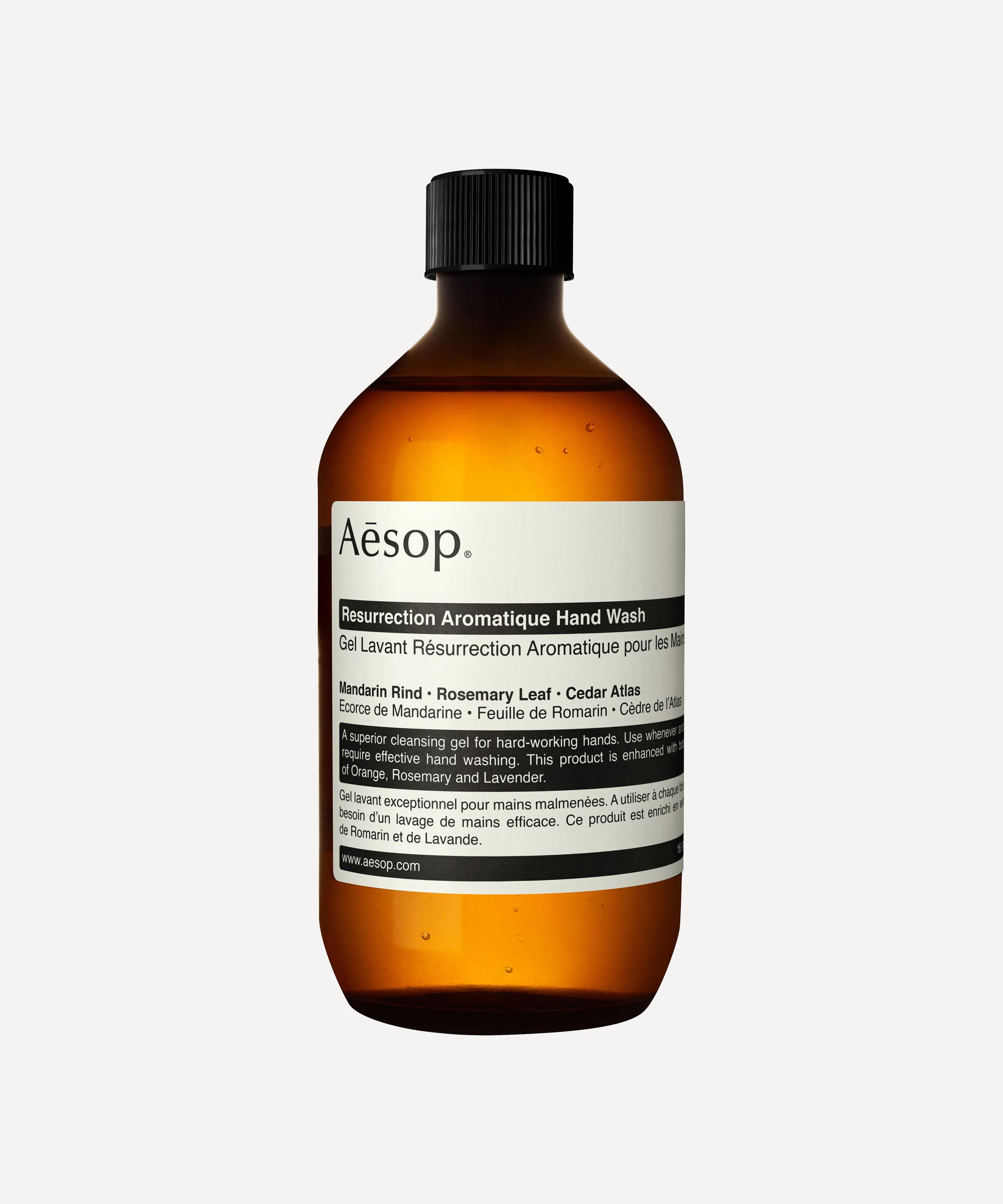 Aesop Resurrection Aromatique Hand Wash is a gentle liquid soap for all skin types, enriched with nourishing, fragrant botanicals to effectively cleanse hands without drying.