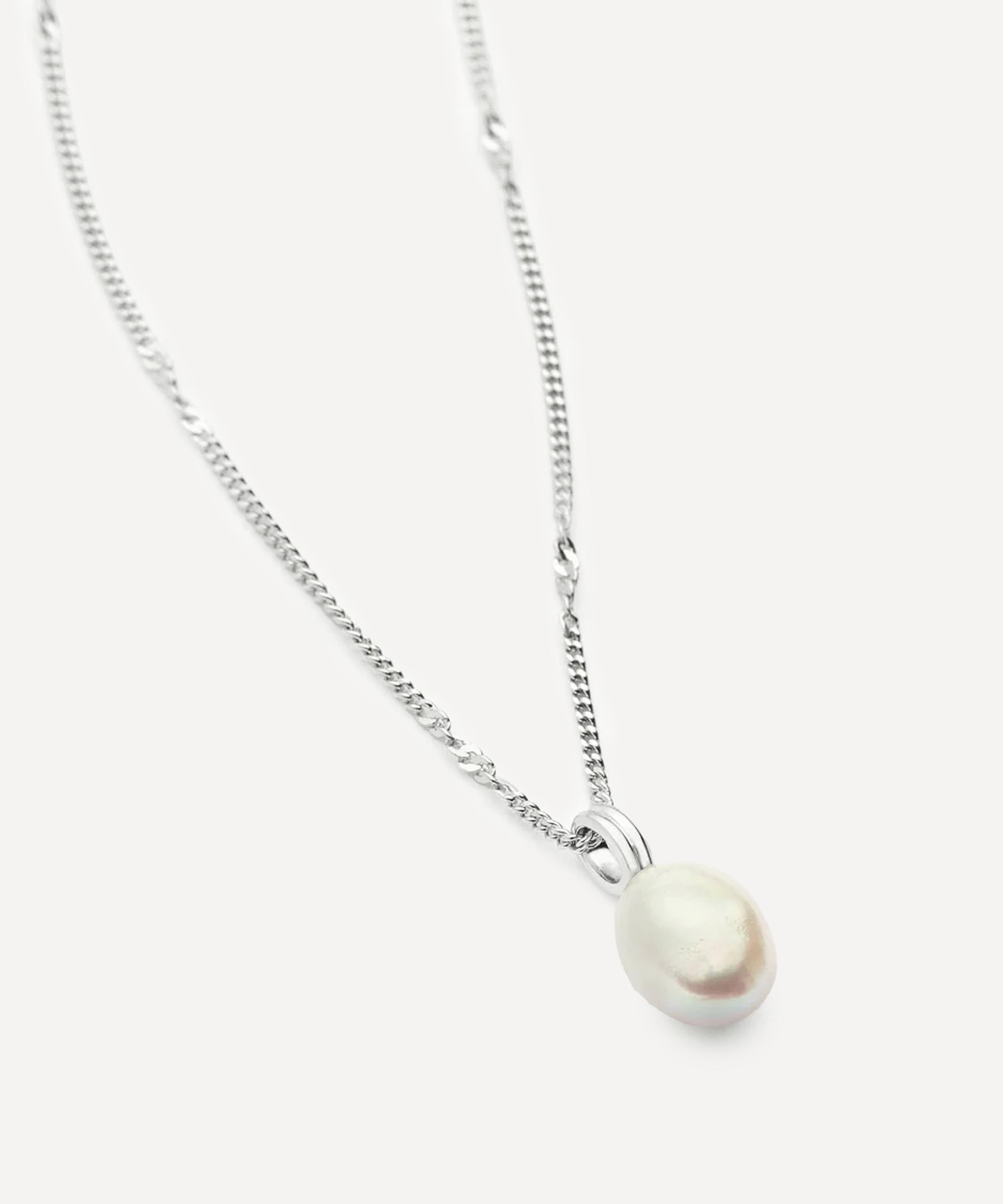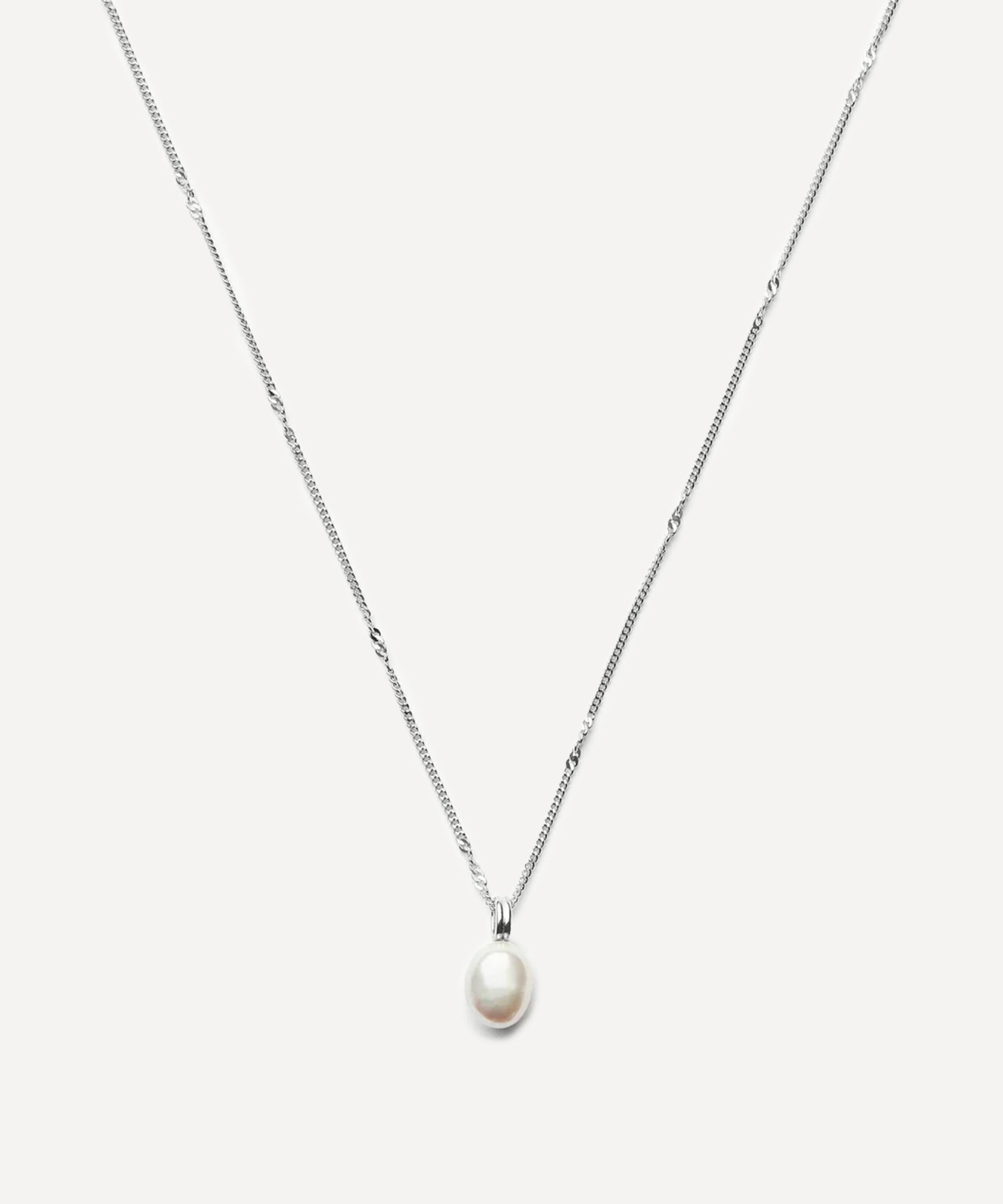 Make a style statement with this pendant necklace – a reimagined pearl classic from Missoma. Crafted from rhodium-plated silver, it features a delicate twisted chain, teamed with an opulent baroque pearl pendant. Style it solo, or layer with other pendants and chunky chains for a contrasting effect.