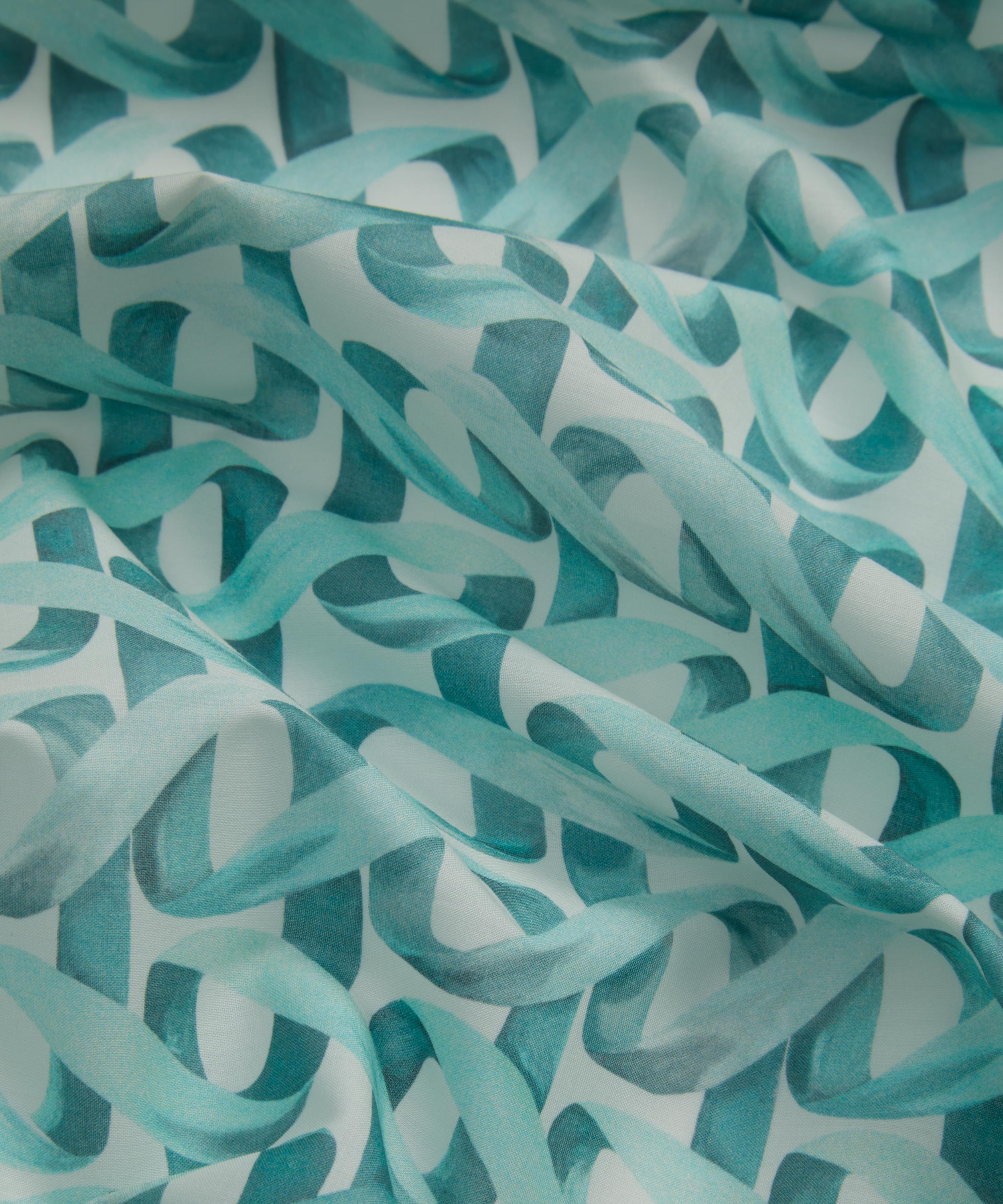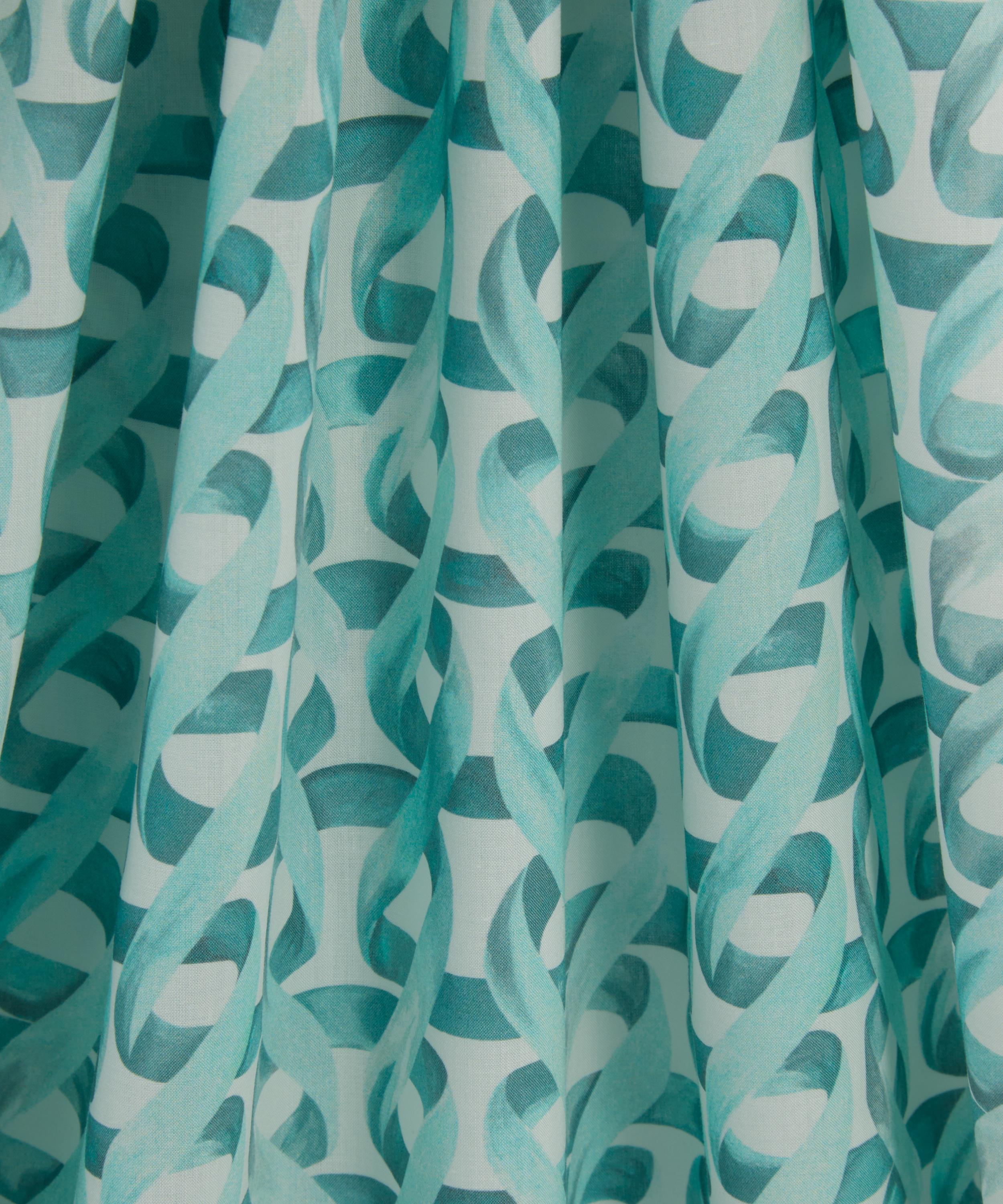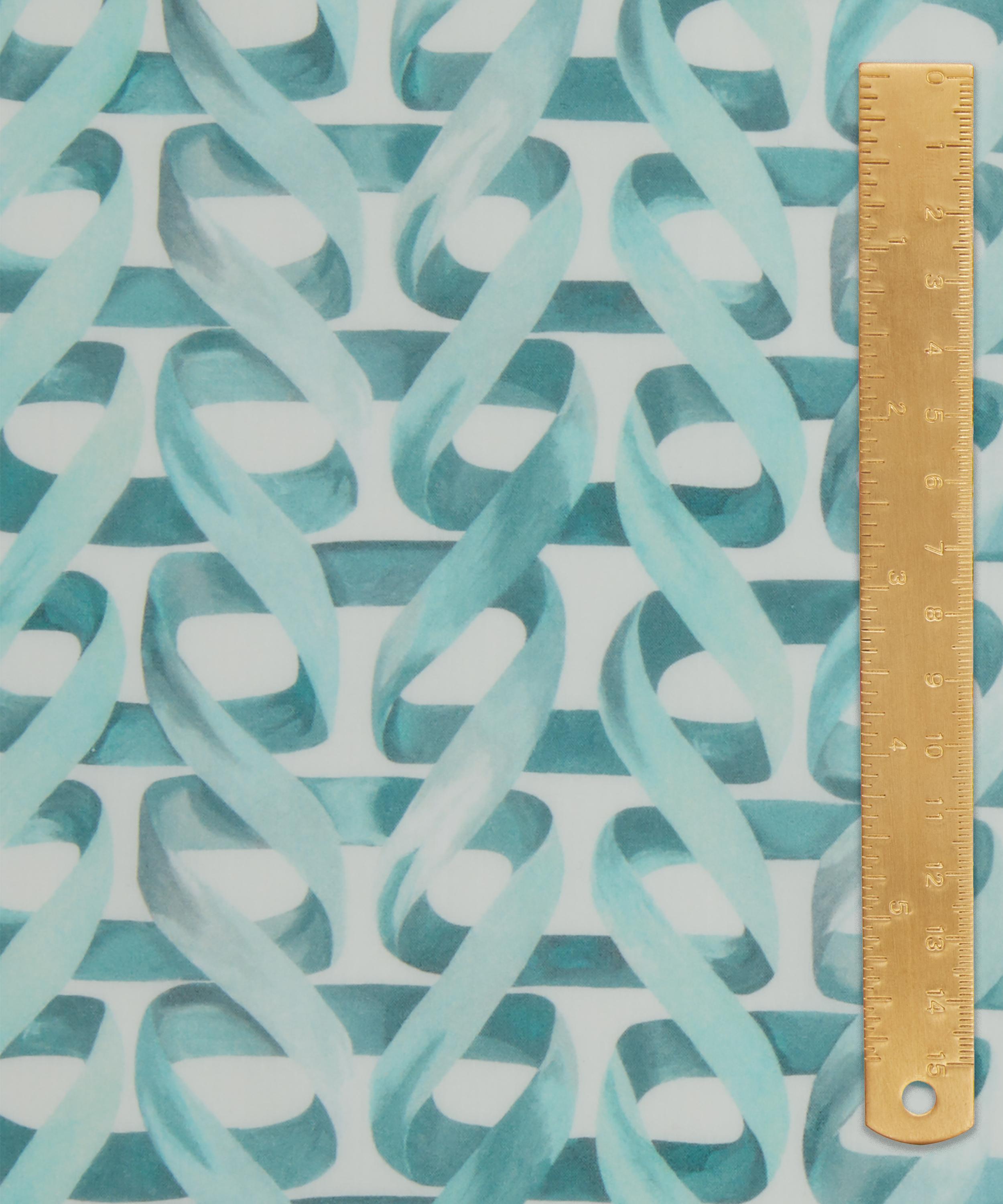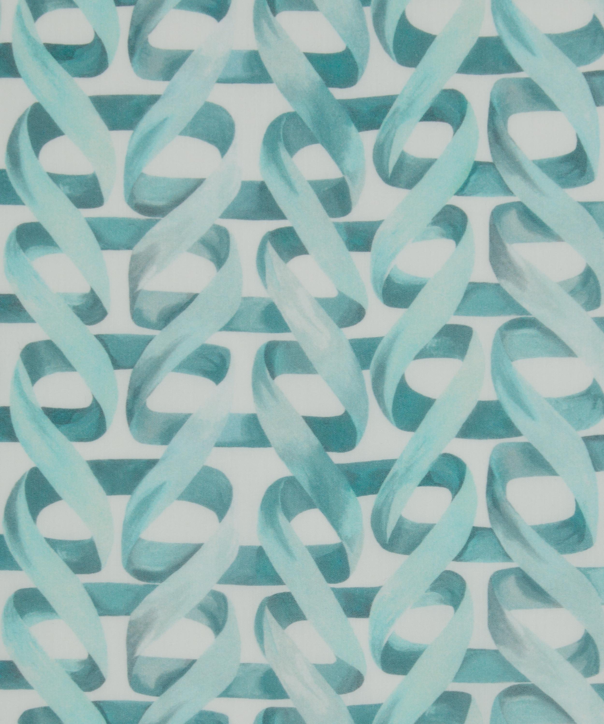 Ribbon is a textile design that has been thoughtfully recreated by the Liberty Design Studio from renowned couturier and interior designer Federico Forquet’s 1969 original. Working only from a reference photograph, the designers meticulously re-painted the intertwined ribbon in soft tones of gouache. The motif of the ribbon infinitely intertwining is aptly evocative of the lemniscate.