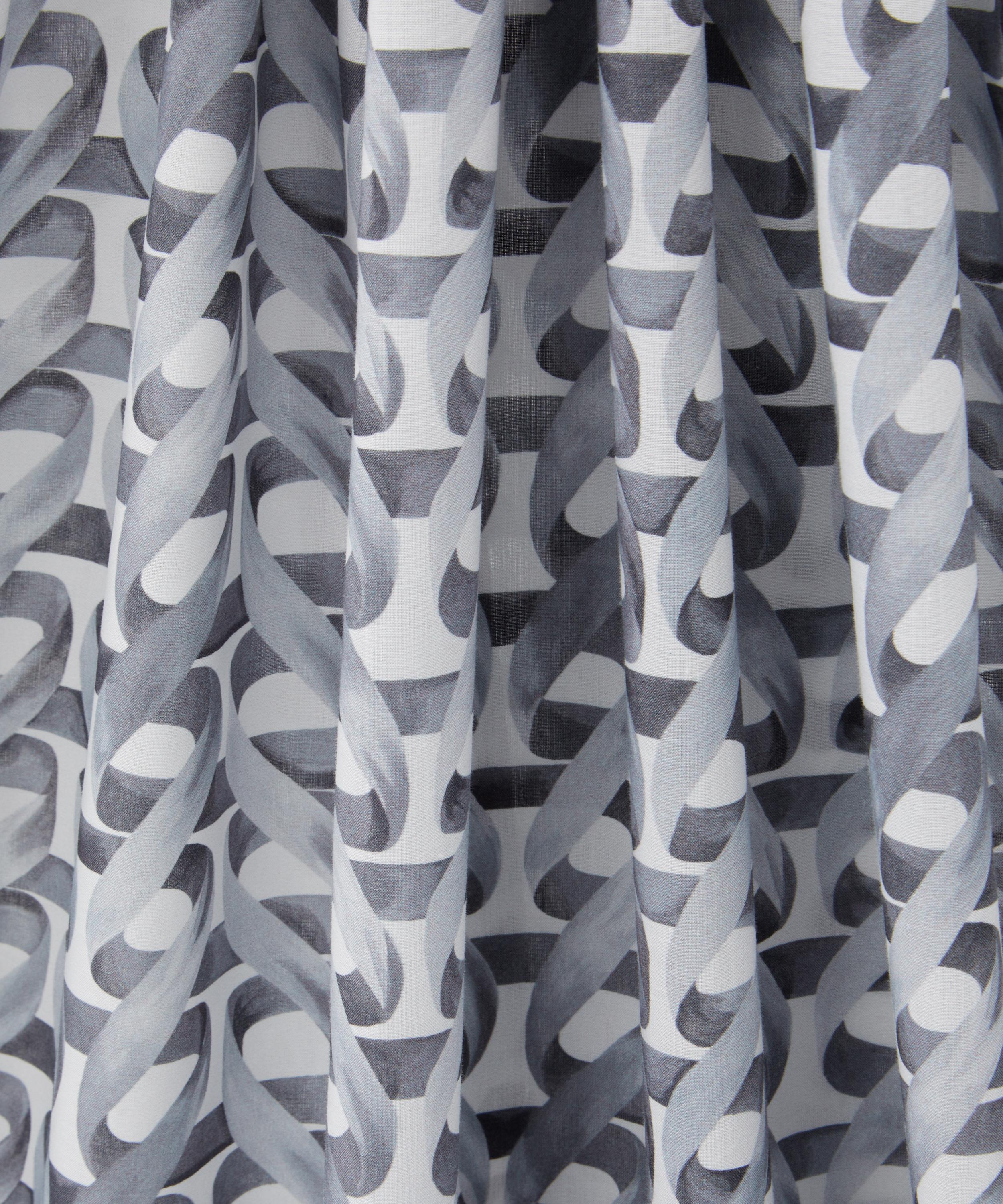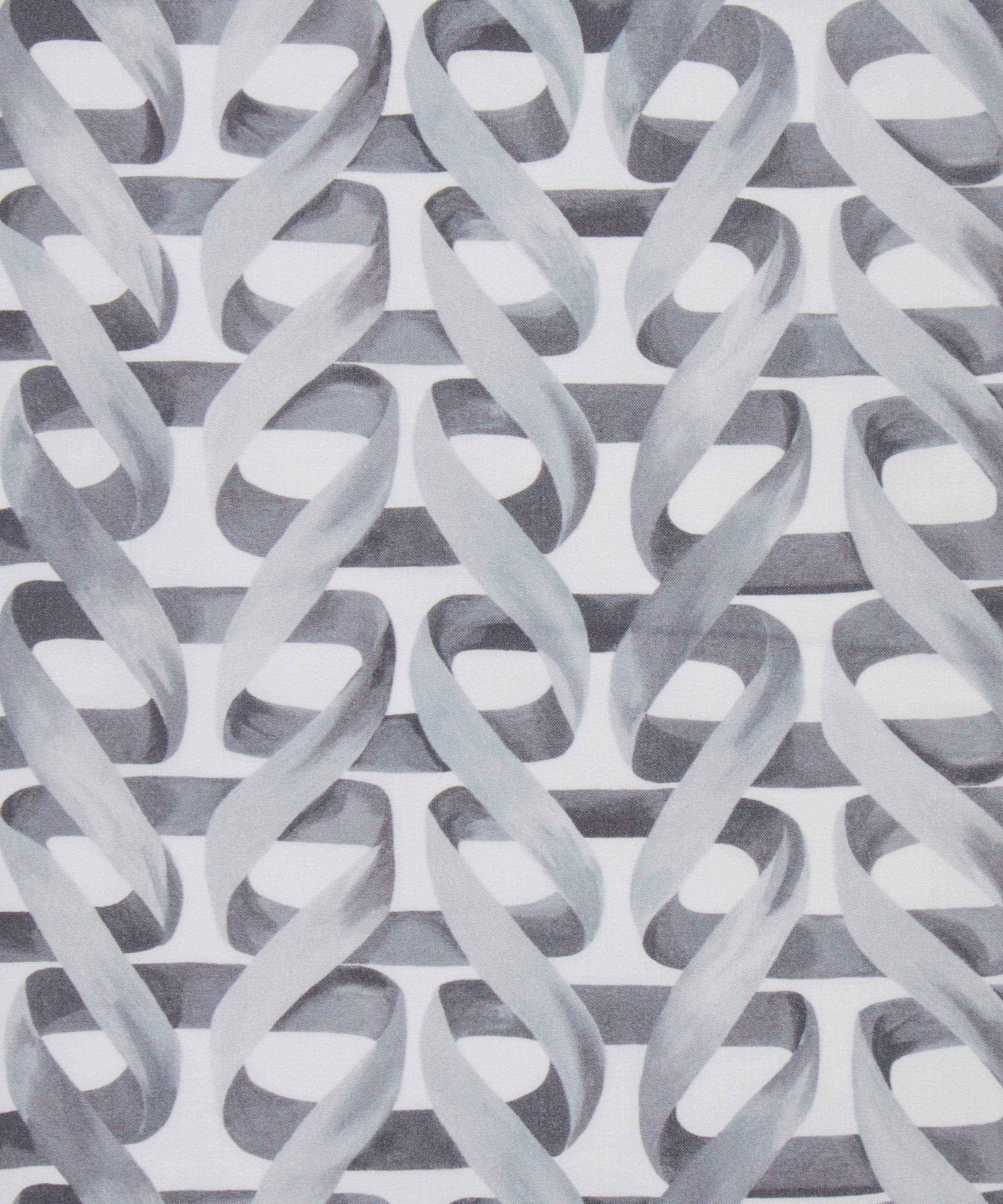 Ribbon is a textile design that has been thoughtfully recreated by the Liberty Design Studio from renowned couturier and interior designer Federico Forquet’s 1969 original. Working only from a reference photograph, the designers meticulously re-painted the intertwined ribbon in soft tones of gouache. The motif of the ribbon infinitely intertwining is aptly evocative of the lemniscate.