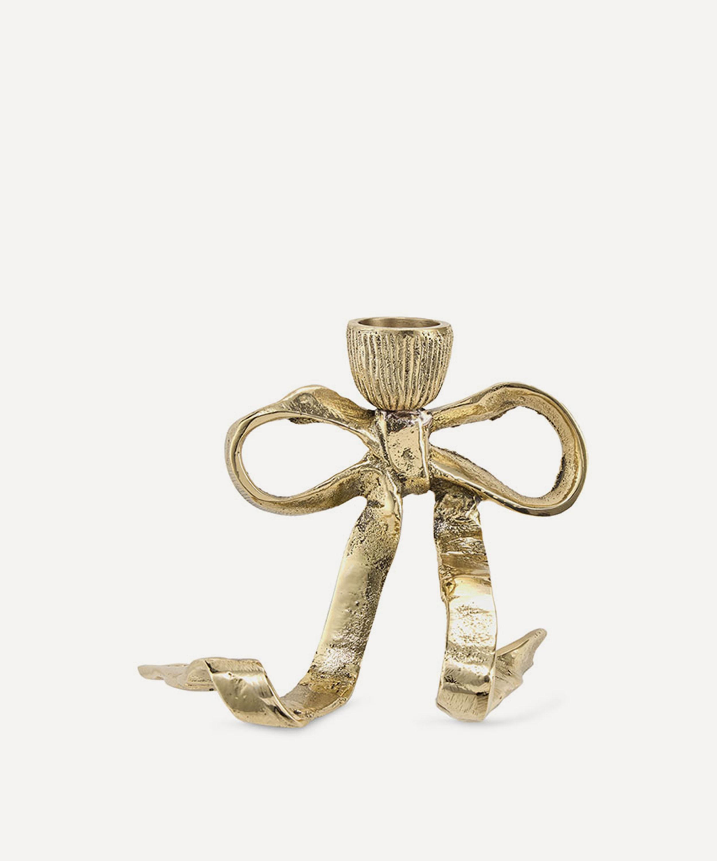 It’s meticulously handmade from brass by skilled artisans and features an ornate ribbon design – capturing the brand’s signature attention to detail while evoking notes of understated grace. Whether you’re looking to envelop your own dinner table in a warm, inviting glow or seeking a thoughtful gift for a loved one, this candleholder is a true statement piece.