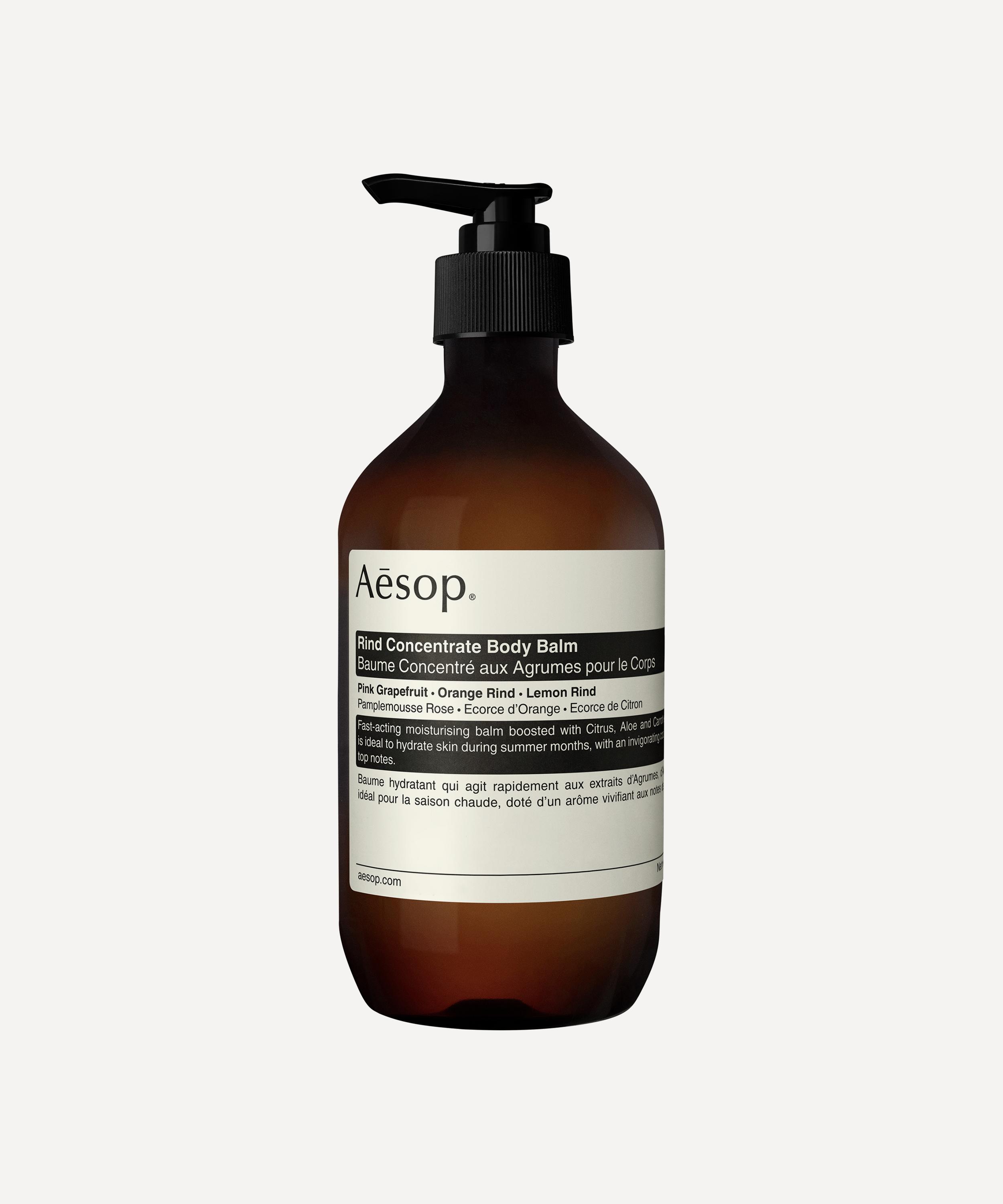 Aesop Rind Concentrate Body Balm is a citrus-based formulation that softens and hydrates skin with a cooling and refreshing sensation.