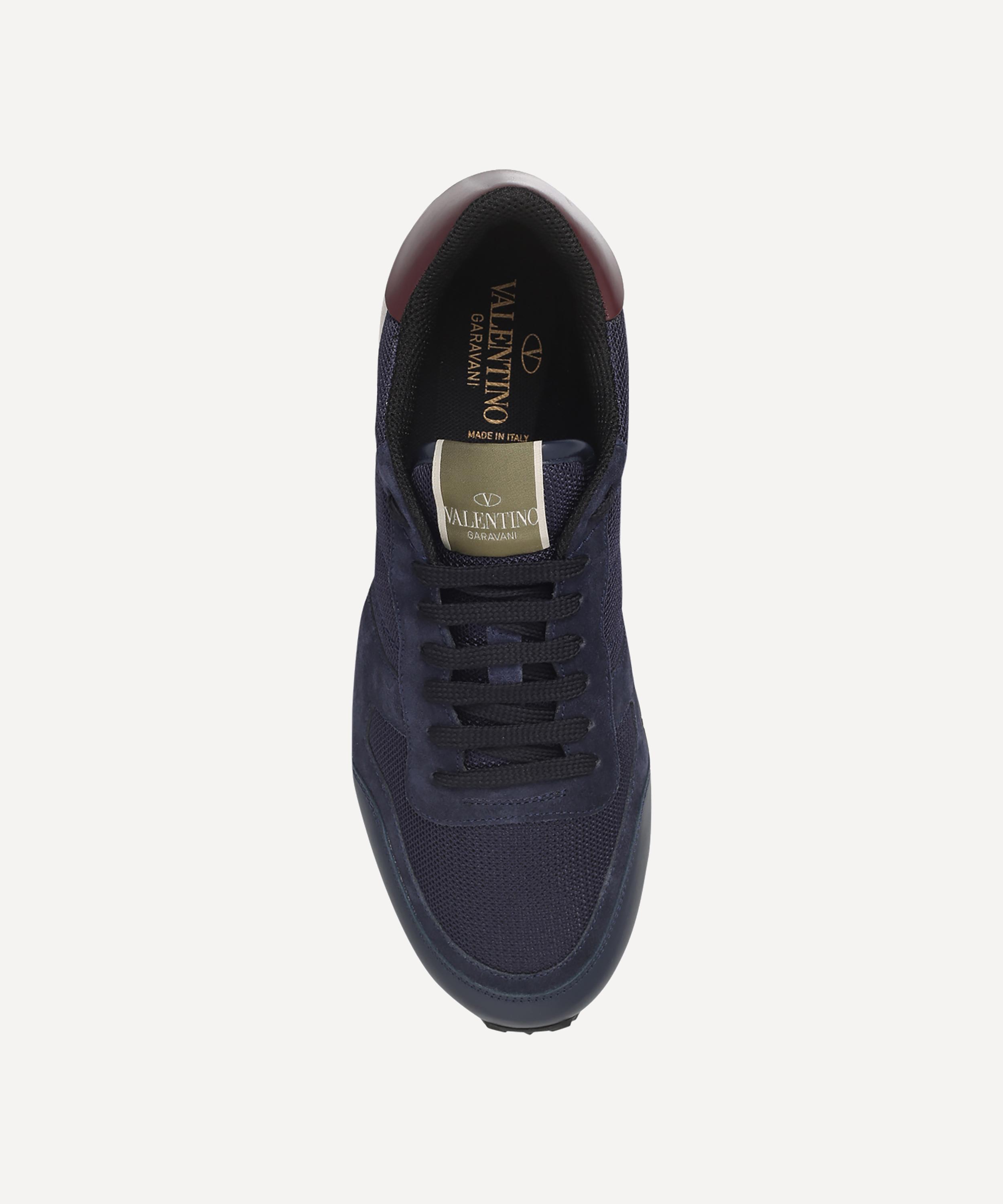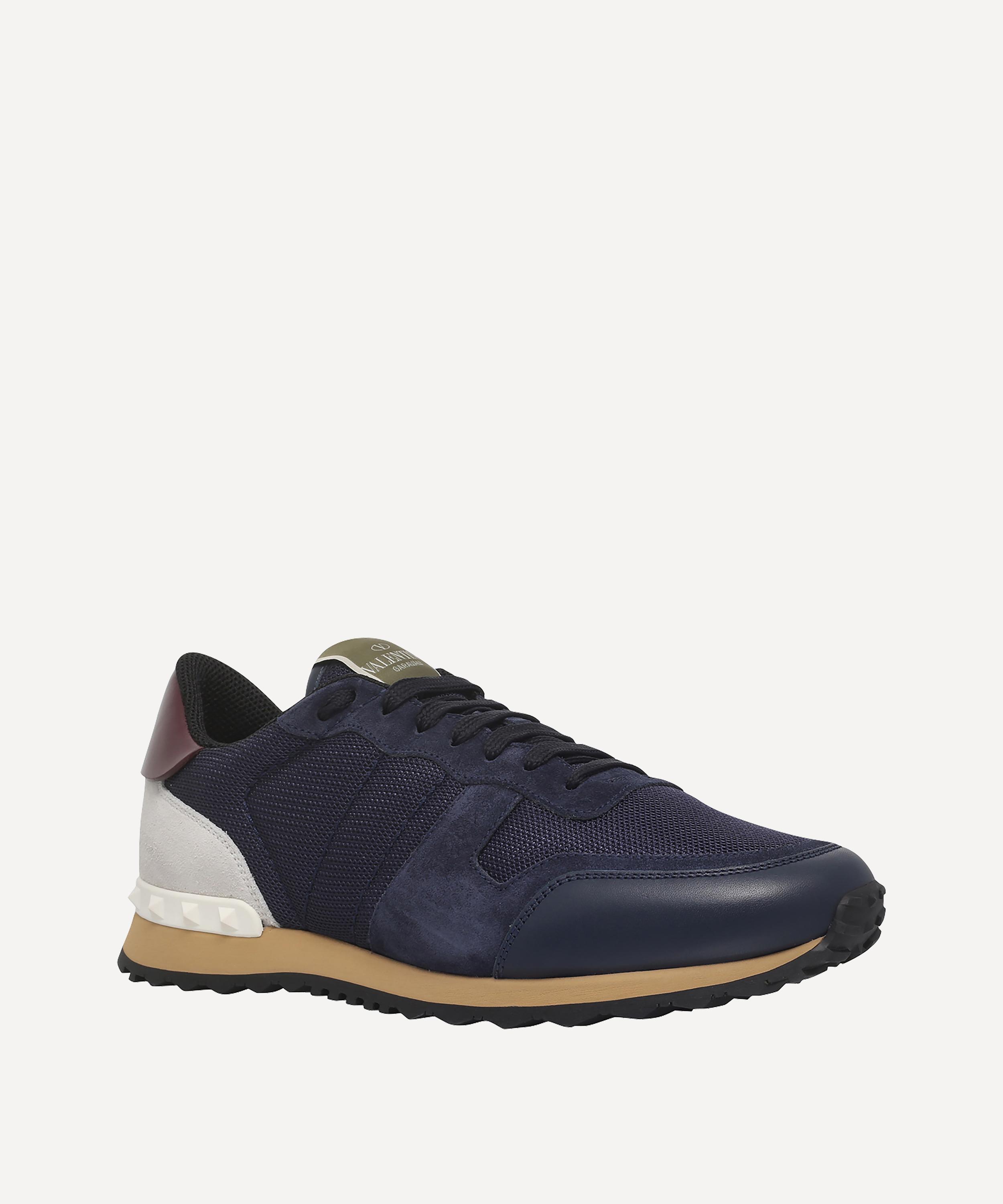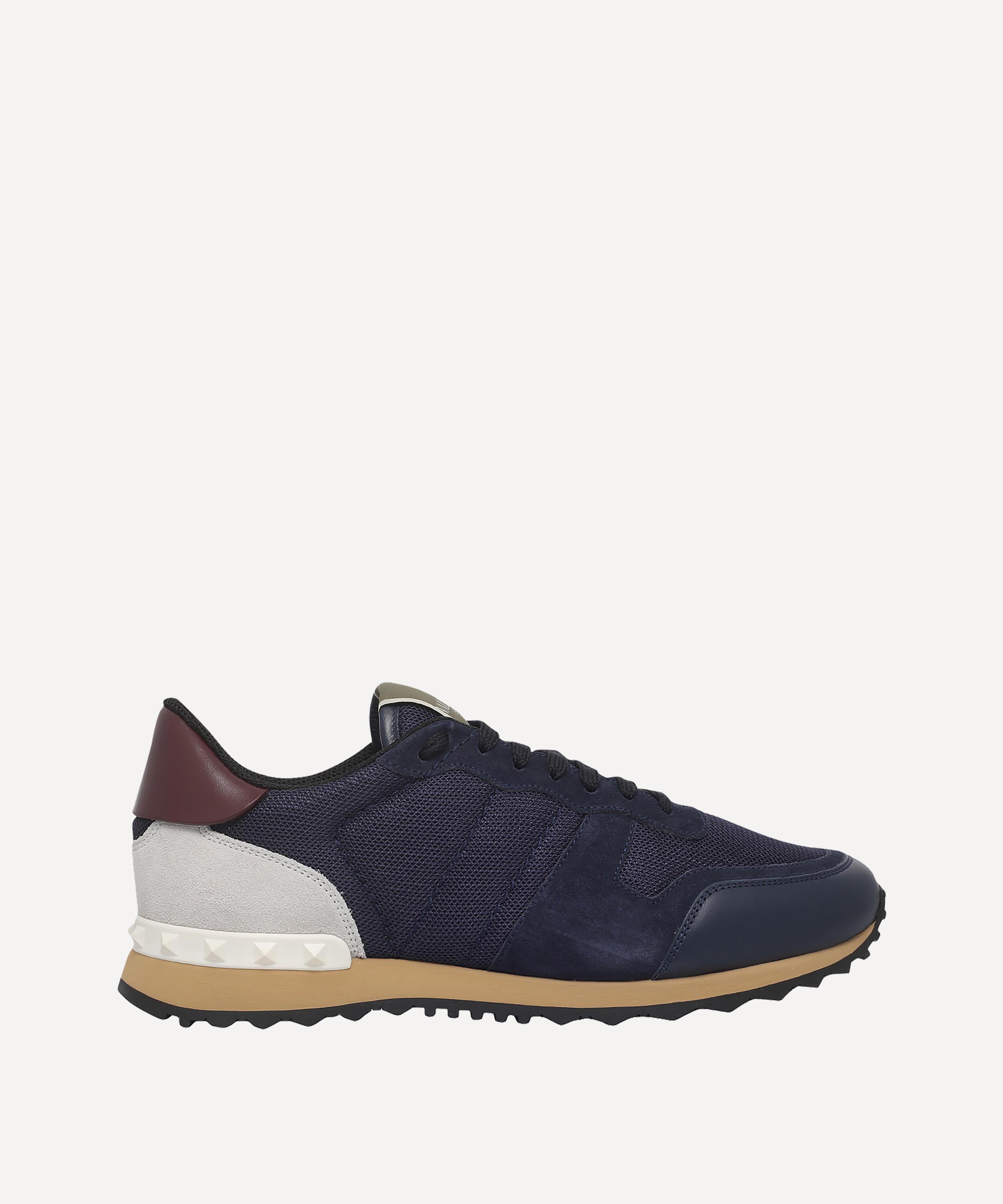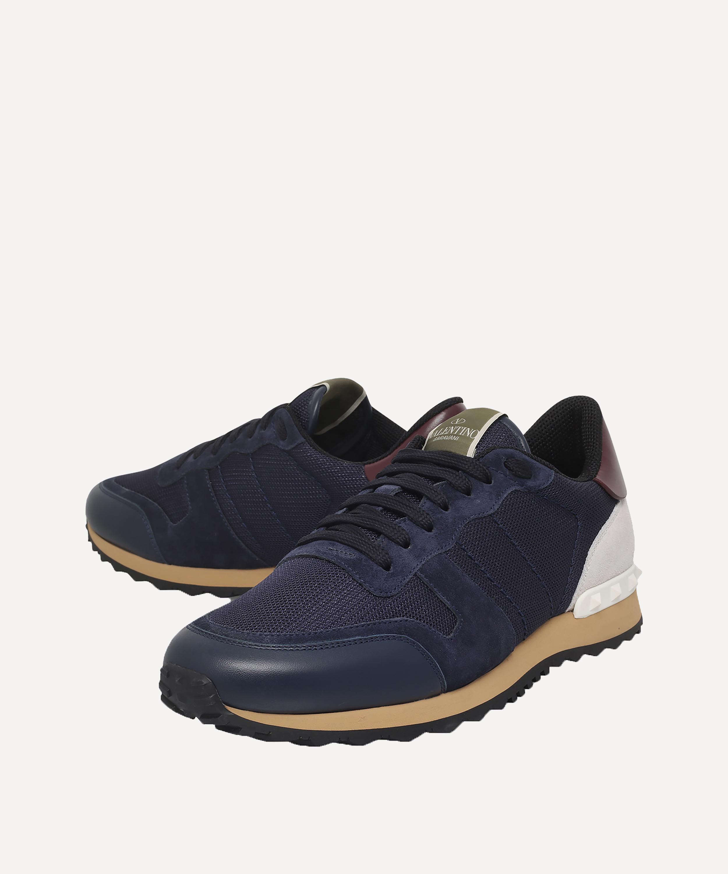 Crafted in Italy, these sneakers are shaped with a rounded toe and feature a rubber grip sole, mesh lining and lace-up fastening. Fusing urban culture and high fashion, the mesh base is accented with navy, burgundy and grey suede and leather panels, updating the classic silhouette. Finished with white rubberised rockstud embellishments along the heel, team with casual denim or chinos to capture their urban aesthetic.