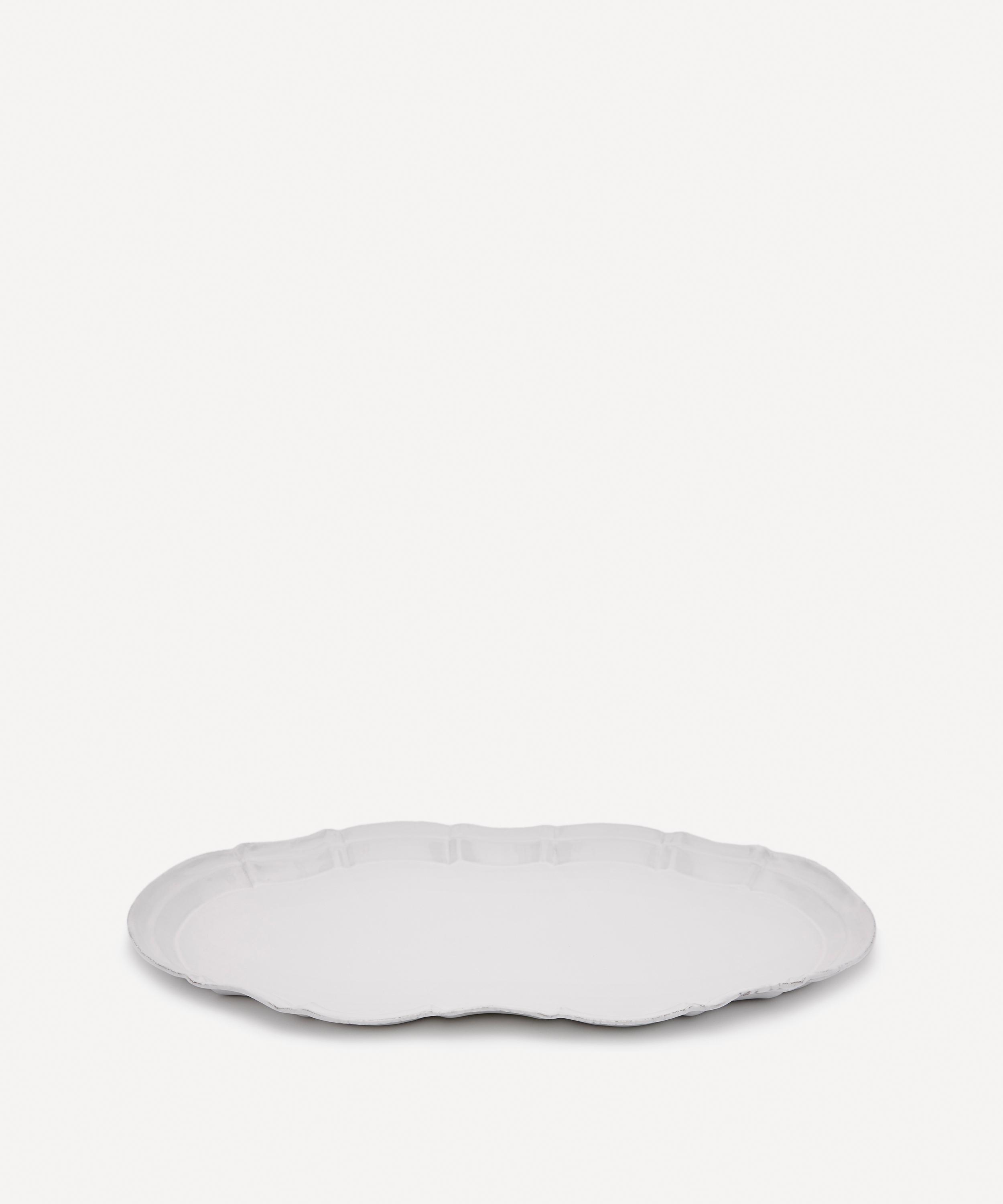 Votary of pre-industrial fabrication, Astier de Villatte is celebrated for being the one and only studio in Paris to hold and harbour the traditions of artisanal ceramic production. Restoring the ancestral systems of moulding and stamping, the long platter is made using handcrafting techniques from the Middle Ages which involve moulding a handmade sheet of clay, double firing the ‘biscuit’ piece and glazing the product in white enamel – a lengthy process that requires a drying time of up to one month. The opulent piece is engraved with the brand’s signature crest - depicting an interlacing A & V - alongside the initials of one of the 40 master artisans who created the glazed platter. Each handmade piece tells a beautiful story, it romances and imparts a sense of nostalgia into its owner. Arrange with other serveware in the collection to breathe an air of authenticity into your table setting.