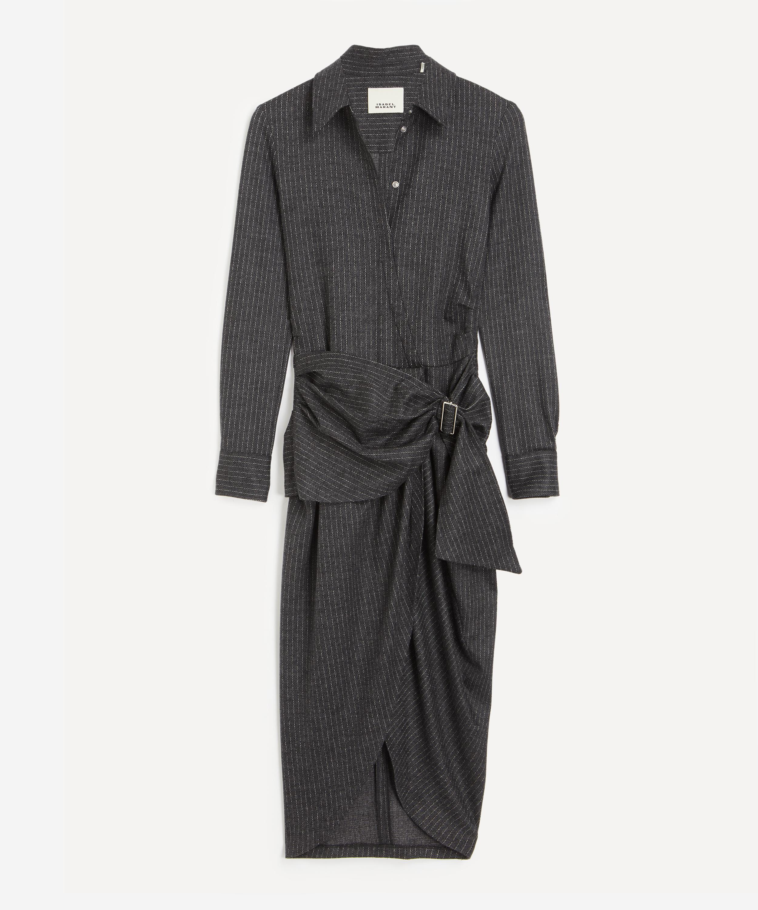 The Rosalie Draped Pinstripe Midi Dress by Isabel Marant adds a touch of effortless Parisian bohemian chic to your new-season wardrobe.