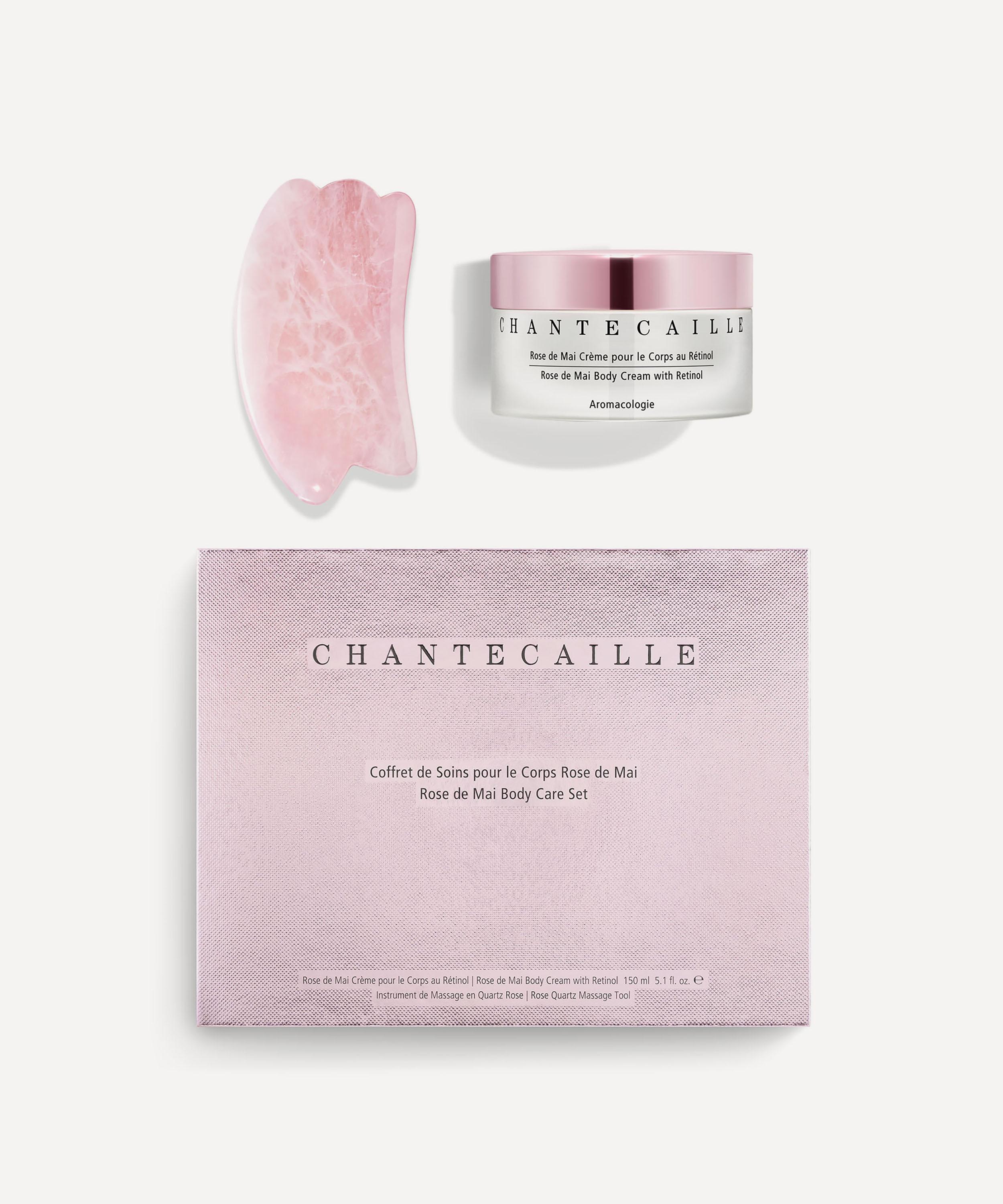 - Rose de Mai Body Care Set includes: Rose De Mai Body Cream with Retinol 150ml and a Rose Quartz Gua Sha Massage Tool