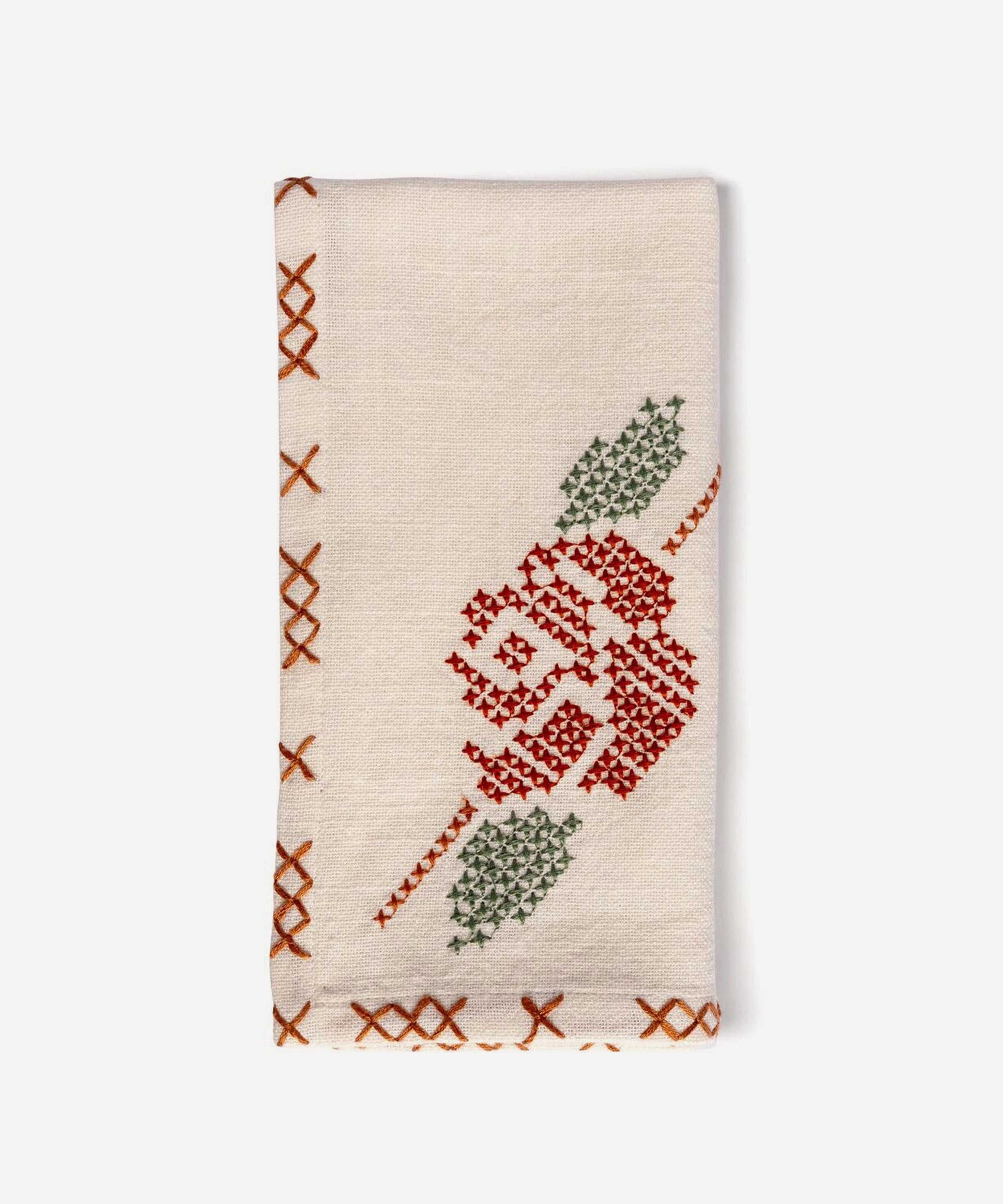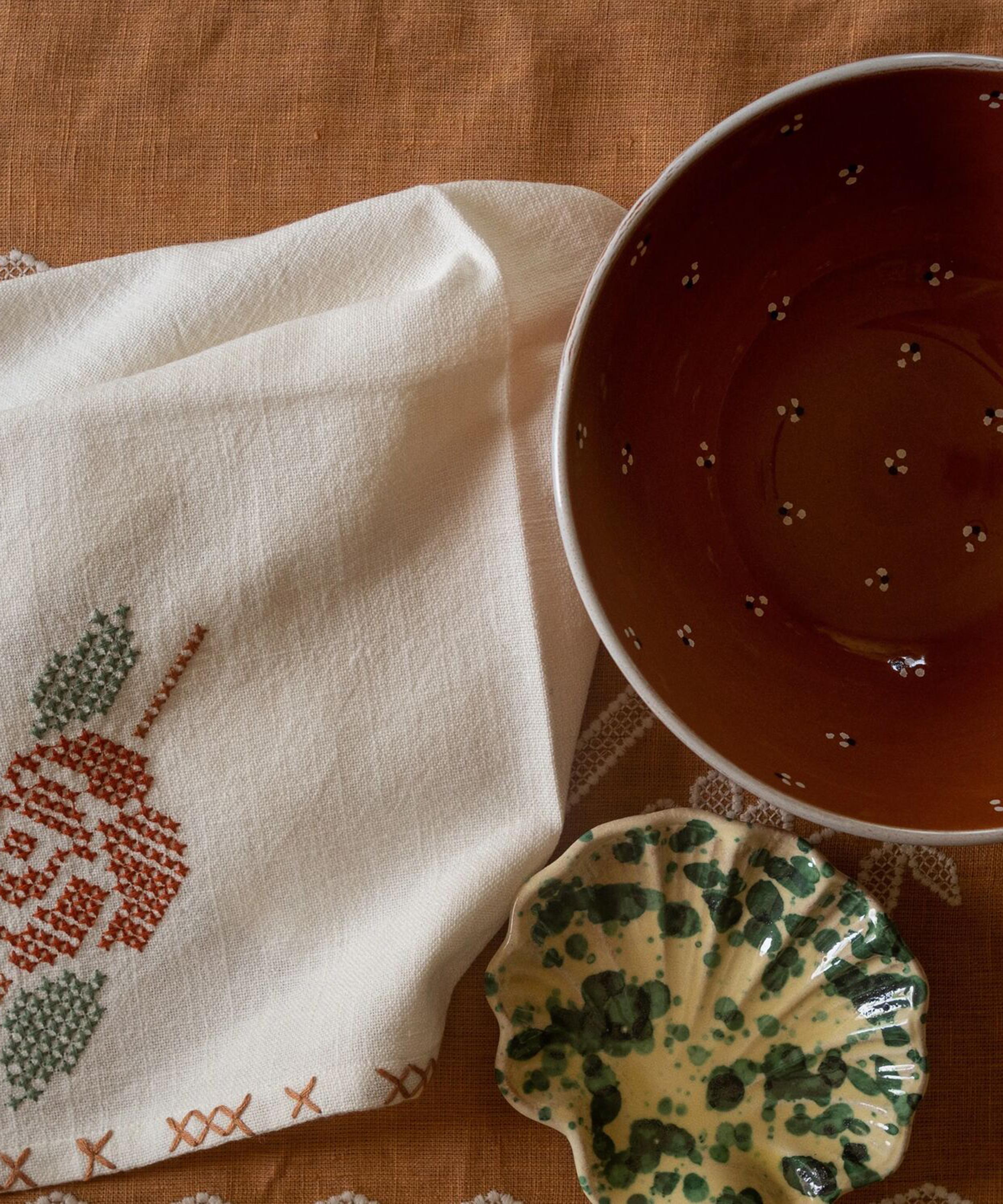 Bringing colour and craftsmanship to your dinner arrangements, Sharland England’s Rose napkins are crafted from slub cotton and defined by a standout cross-stitched rose embroidery – a design inspired by a vintage embroidery owned by founder Louise Roe’s great-grandmother. They’re finished with hand-stitched borders and lend floral finesse to your table.