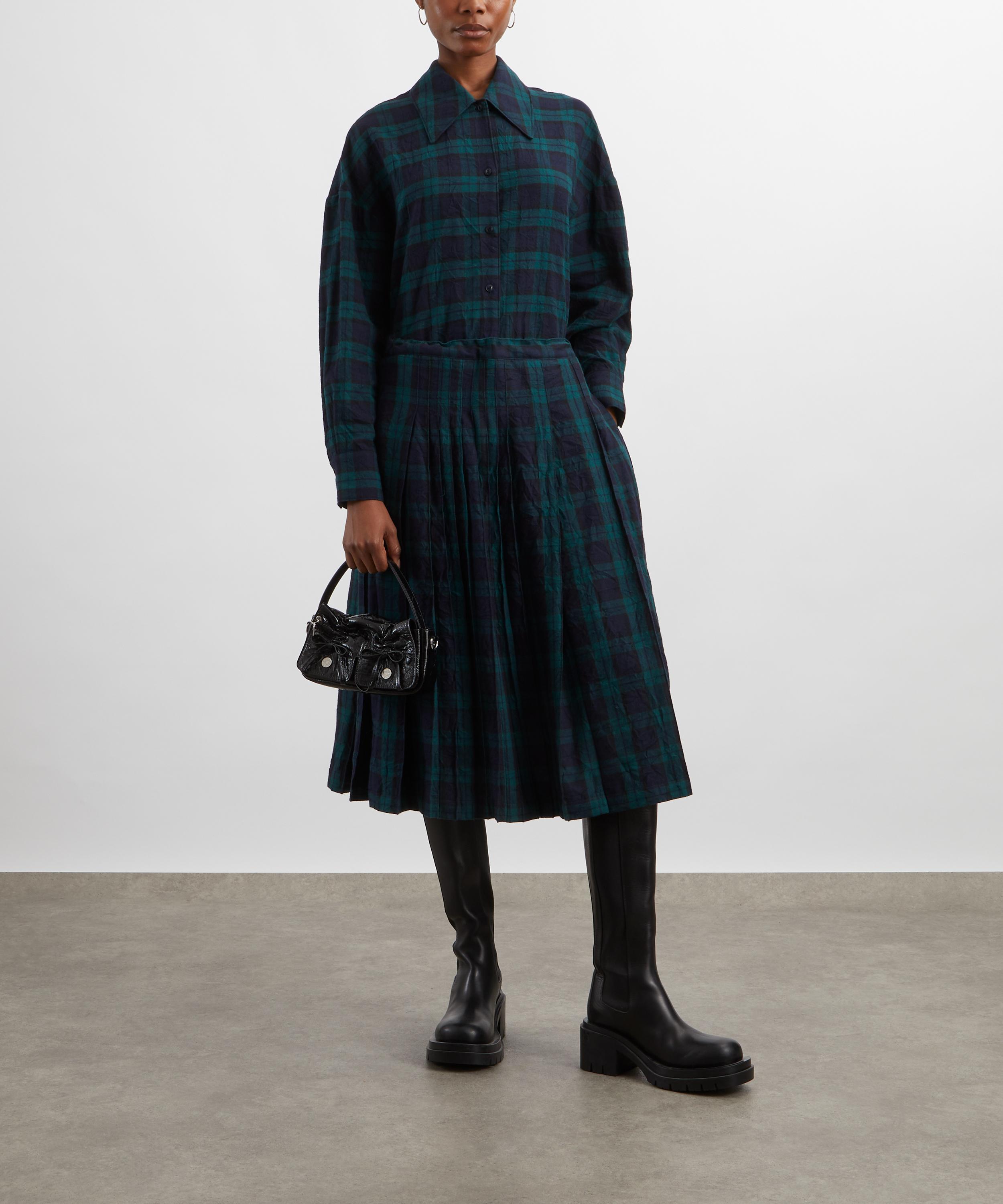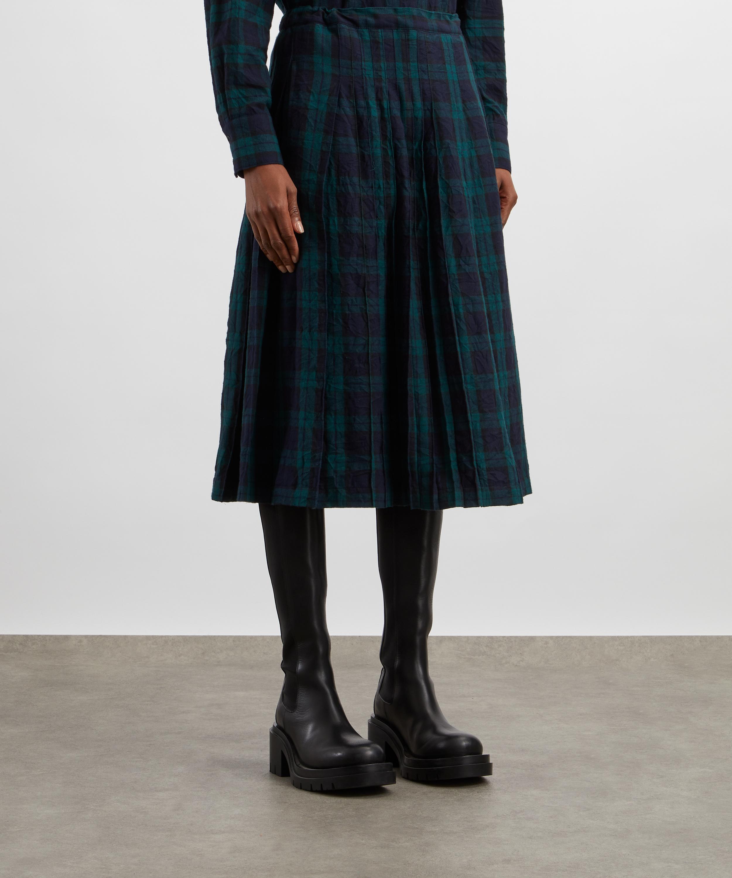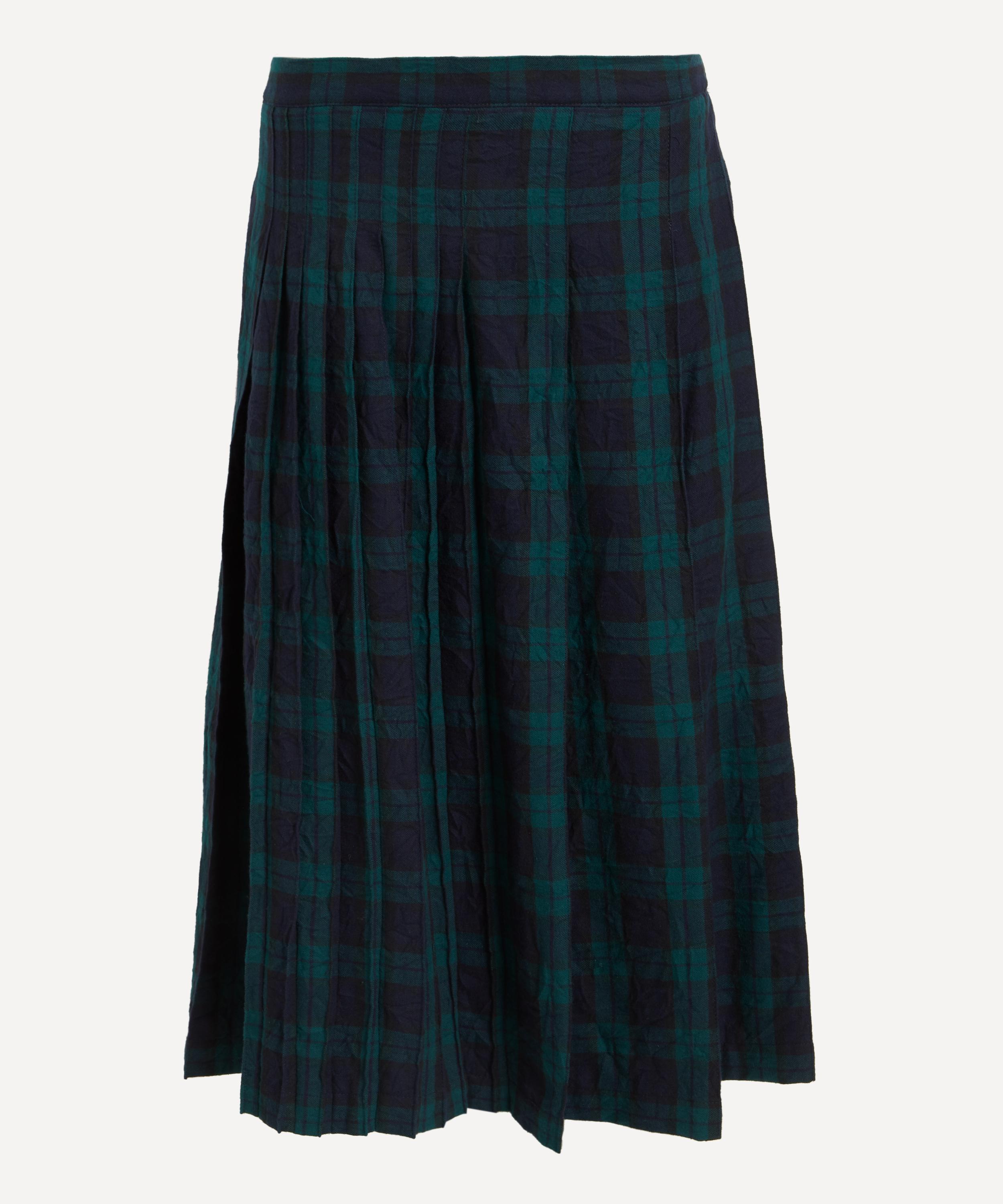 Made from Japanese mill-washed cotton with a lightly creased finish, this pleated midi skirt features a timeless navy and green plaid pattern, offering a refined yet effortless look. Flowing to an easy, A-line silhouette, internal waist adjusters ensure an adjustable fit for ultimate comfort.